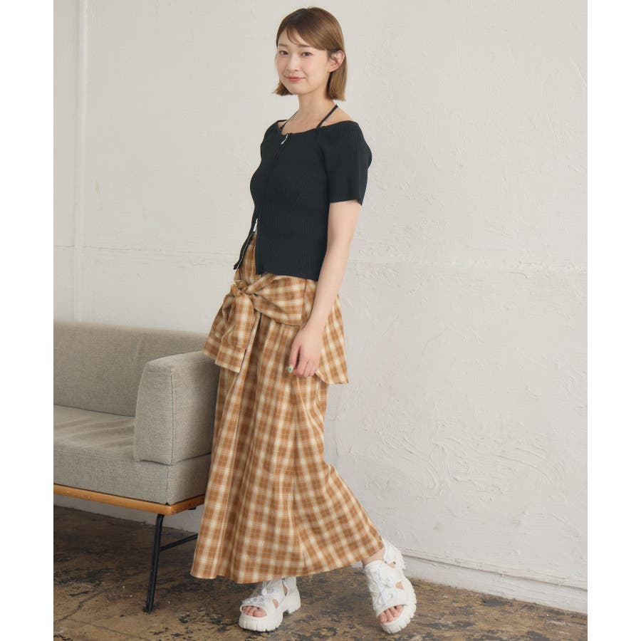 | 素材 | 【ブラック/チェック】ポリエステル72%レーヨン23%ポリウレタン3%【ブラウン/チェック】ポリエステル80%ポリウレタン10% |
