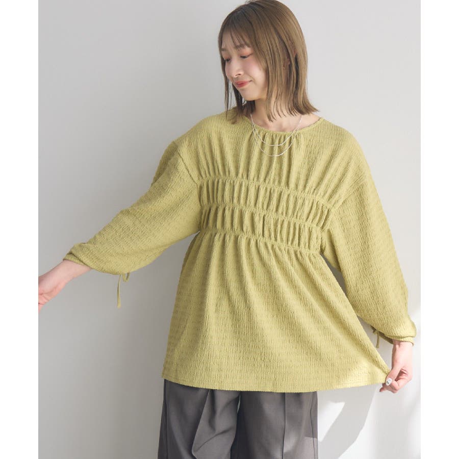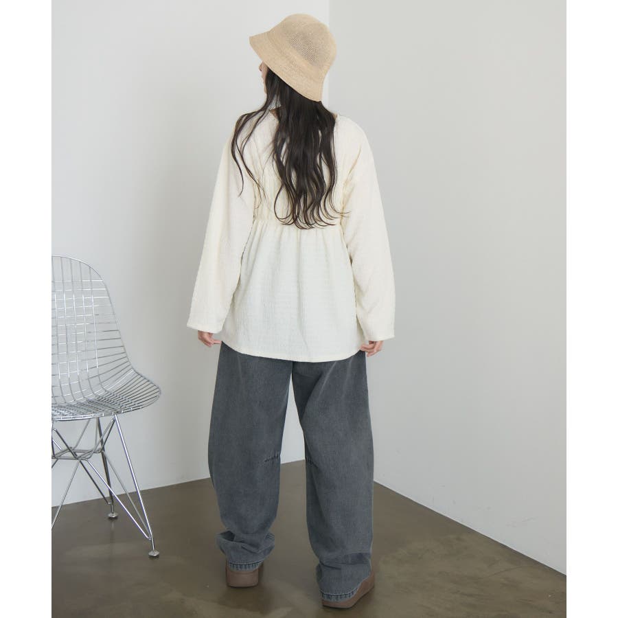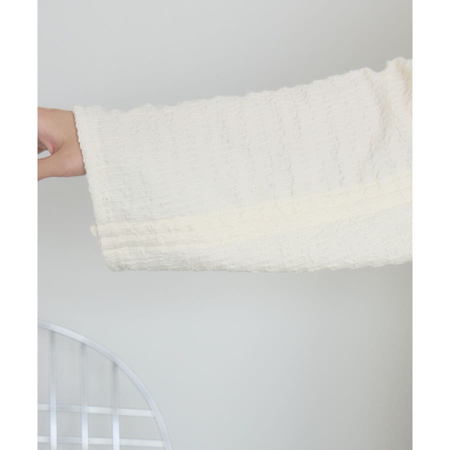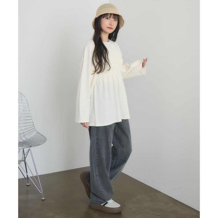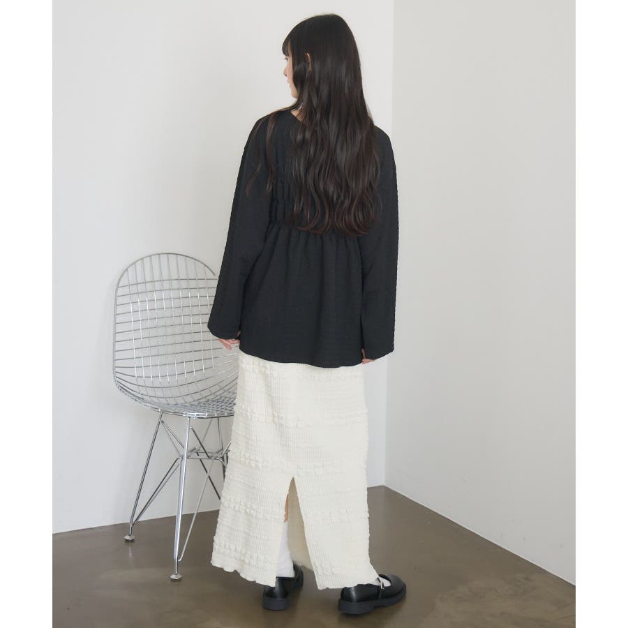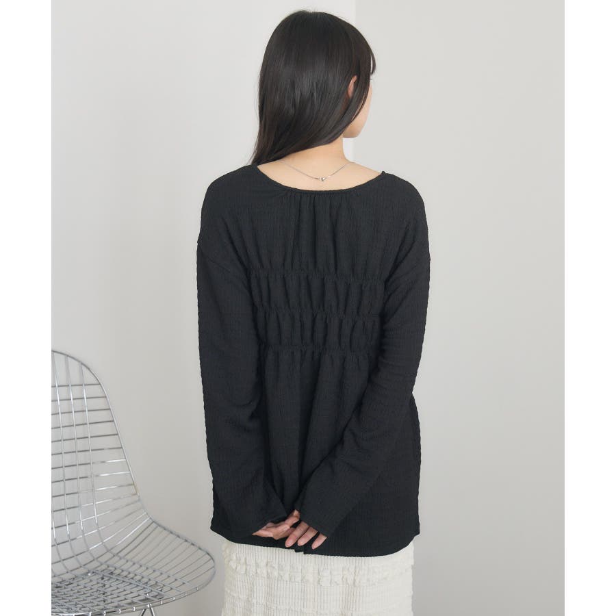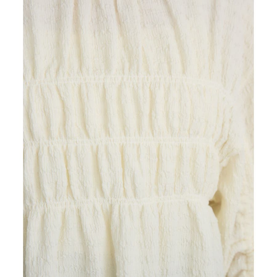 <ポコポコした素材とギャザーデザインが可愛いカットソーアイテム>▼デザインポコポコと表面感のある素材感が癖になるティアード丈のカットソー。バスト部分はギャザーデザインが入っているのは、デザインにこだわったポイント!袖口にはリボンデザインが施されていて、女性らしさも忘れない1枚。春先にぴったりの厚さで、気温調節もしやすそう!▼コーディネートボトムはパンツをレイヤードして、チュニックとして着用♪タイトなロングスカートに合わせてトレンド感あるフェミニンコーデに仕上げるのもおすすめです。------------------------------生地感:普通伸縮性:ある透け感:なし(ホワイトのみ多少あり)裏地:なし------------------------------▼ブランド紹介RETRO GIRL (レトロガール)自分らしい“ベーシックアイテム”と新しい自分の”トレンドアイテム”が見つかる場所今らしいファッションを楽しむ女性のためのブランド#ポコポコ #ブラウス #ぽこぽこ素材 #カットソー #ブラウスコーデ #チュニック#チュニックカットソー▼注意事項※撮影環境やモニター環境によって実際の商品とお色味が 多少異なってみえる場合がございます。品番:RM518111T001 / 品名 :ポコポコシャーリングCT