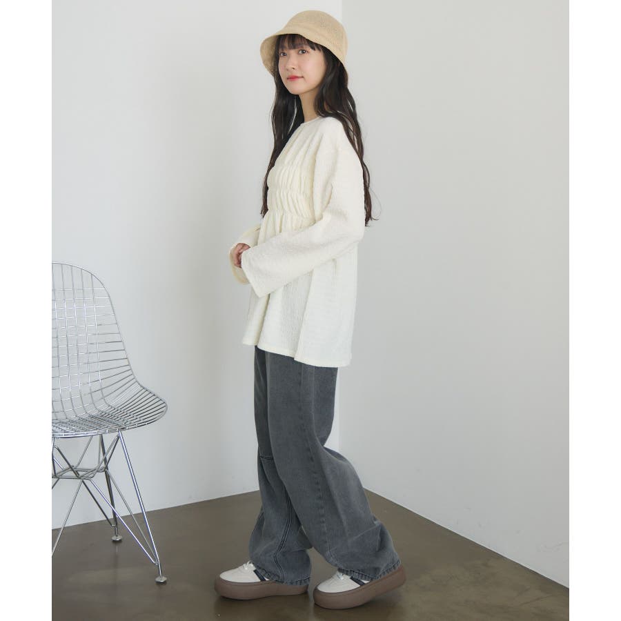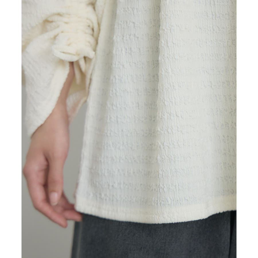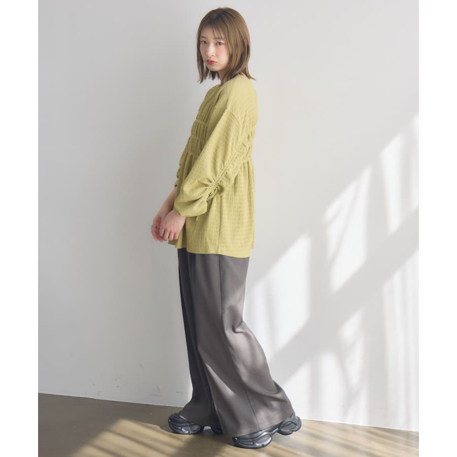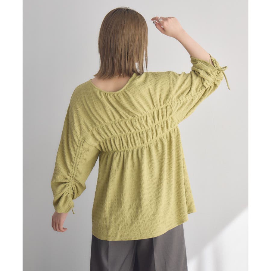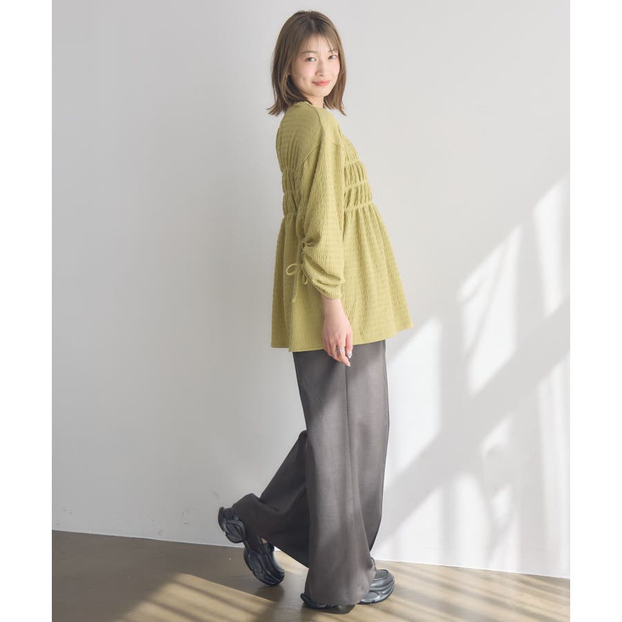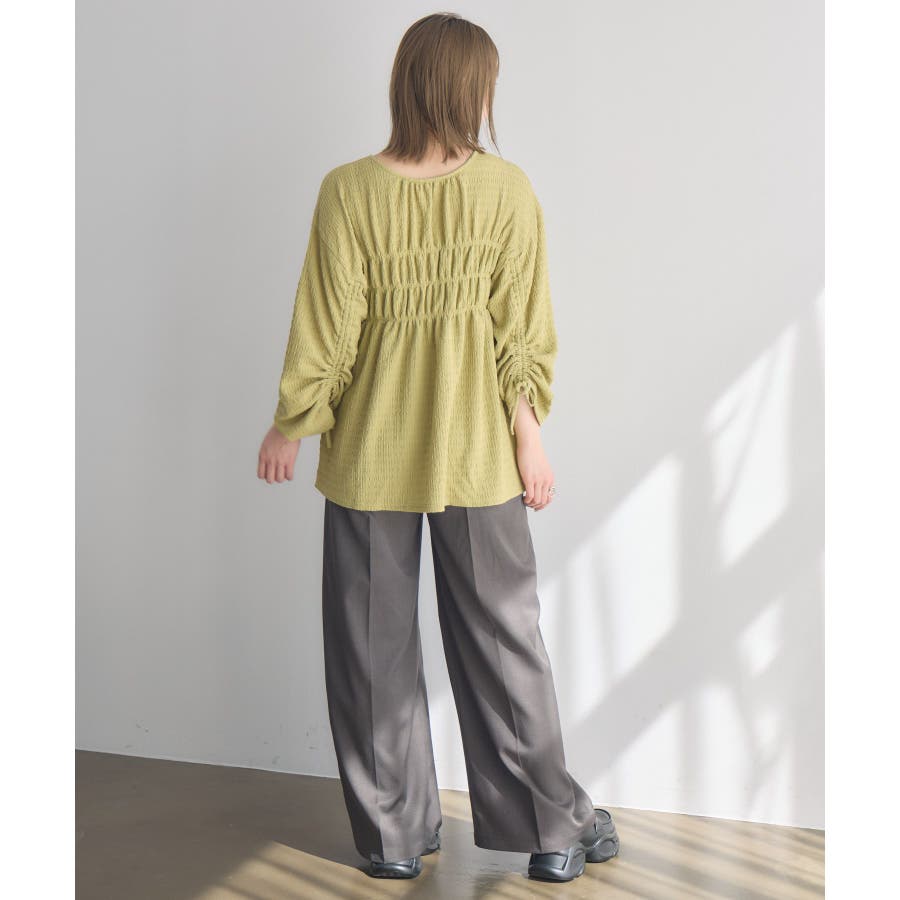<ポコポコした素材とギャザーデザインが可愛いカットソーアイテム>▼デザインポコポコと表面感のある素材感が癖になるティアード丈のカットソー。バスト部分はギャザーデザインが入っているのは、デザインにこだわったポイント!袖口にはリボンデザインが施されていて、女性らしさも忘れない1枚。春先にぴったりの厚さで、気温調節もしやすそう!▼コーディネートボトムはパンツをレイヤードして、チュニックとして着用♪タイトなロングスカートに合わせてトレンド感あるフェミニンコーデに仕上げるのもおすすめです。------------------------------生地感:普通伸縮性:ある透け感:なし(ホワイトのみ多少あり)裏地:なし------------------------------▼ブランド紹介RETRO GIRL (レトロガール)自分らしい“ベーシックアイテム”と新しい自分の”トレンドアイテム”が見つかる場所今らしいファッションを楽しむ女性のためのブランド#ポコポコ #ブラウス #ぽこぽこ素材 #カットソー #ブラウスコーデ #チュニック#チュニックカットソー▼注意事項※撮影環境やモニター環境によって実際の商品とお色味が 多少異なってみえる場合がございます。品番:RM518111T001 / 品名 :ポコポコシャーリングCT