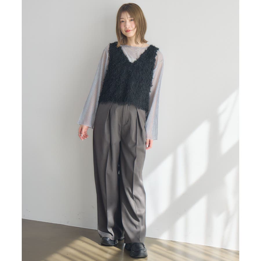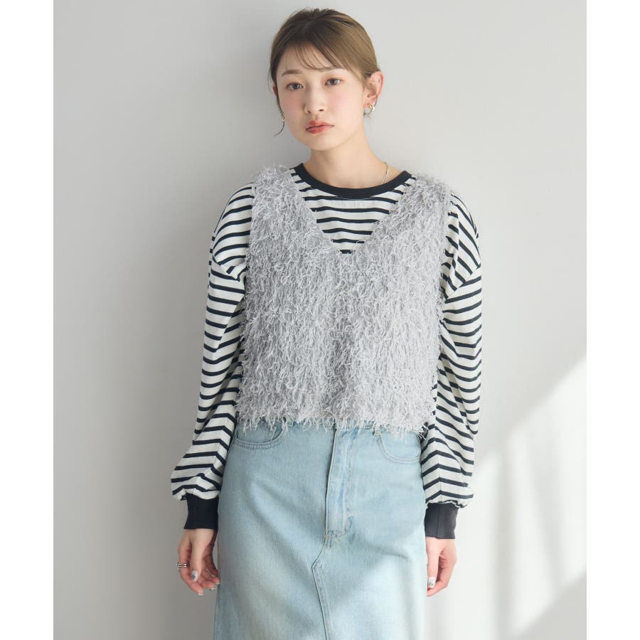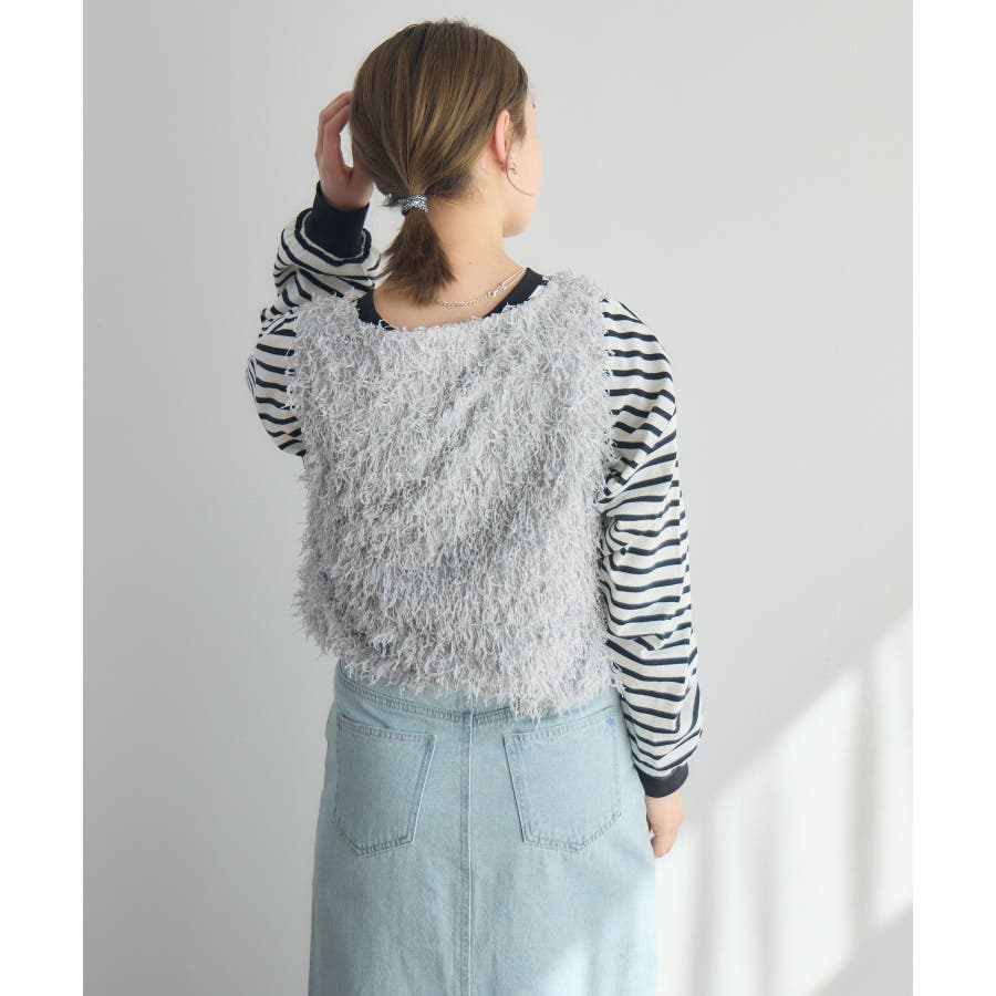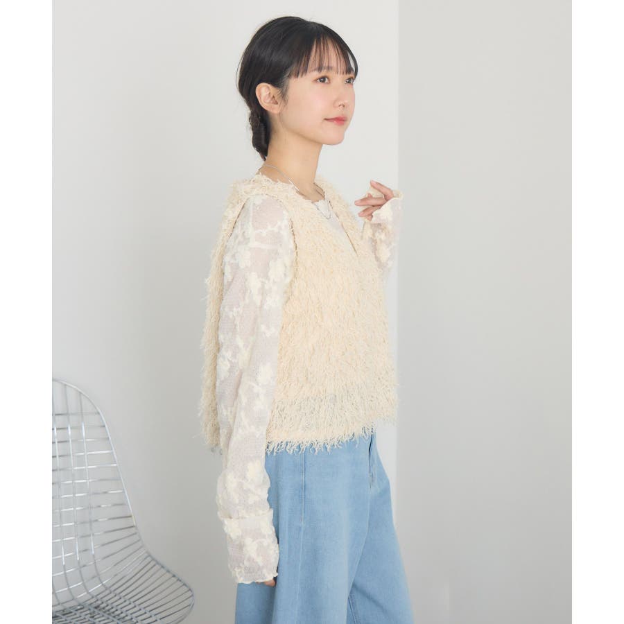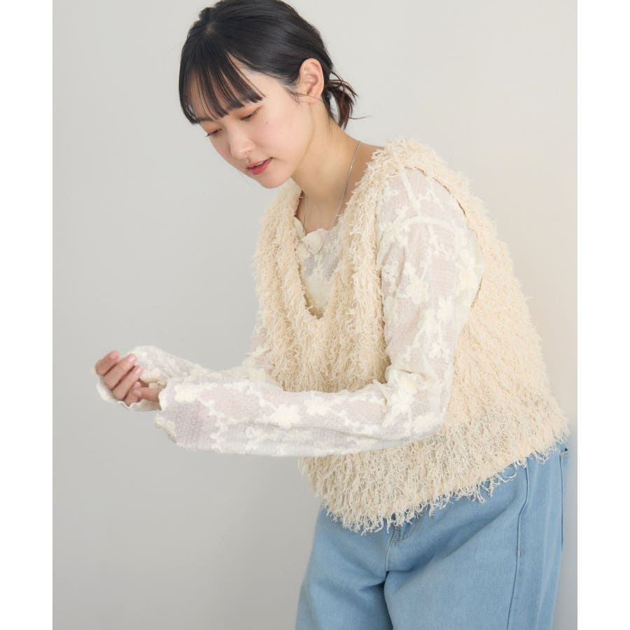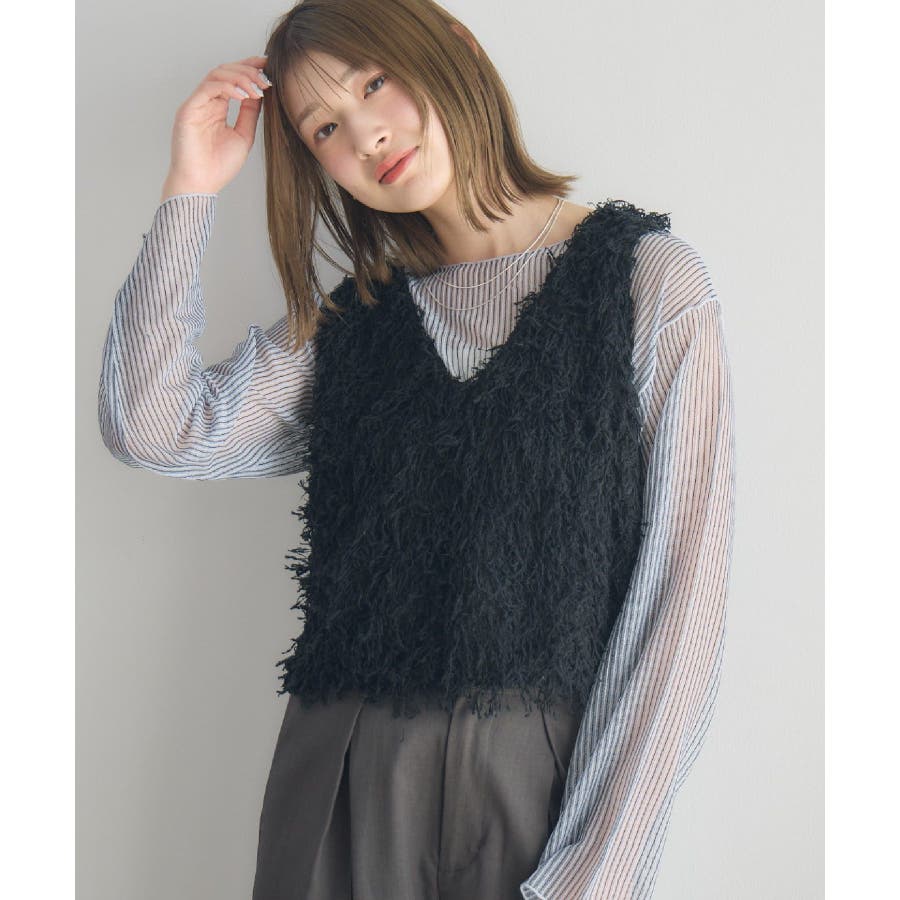 〈毛足が長く存在感あるニットベストアイテム〉▼デザイン毛足の長いベストは、レイヤードするだけで簡単にトレンドコーデに。今のシーズンは、シアーインナーと合わせて肌寒い時期なら、タートルリブニットに合わせて、インナー次第でオールシーズン着用いただけます。Vネックで首回りもすっきりした印象に仕上がります◎▼コーディネートインナー次第でカジュアルにも綺麗目にも着て頂けます。柄物のTシャツを合わせても可愛いかも♪------------------------------生地感:普通伸縮性:ある透け感:なし裏地:なし------------------------------▼ブランド紹介RETRO GIRL (レトロガール)自分らしい“ベーシックアイテム”と新しい自分の”トレンドアイテム”が見つかる場所今らしいファッションを楽しむ女性のためのブランド#フェザーアイテム #ニットベスト #トレンドコーデ #デートコーデ #ベスト #ニット #モケモケ ▼注意事項※撮影環境やモニター環境によって実際の商品とお色味が 多少異なってみえる場合がございます。品番:RM537511T002 / 品名:フェザーヤーンベスト