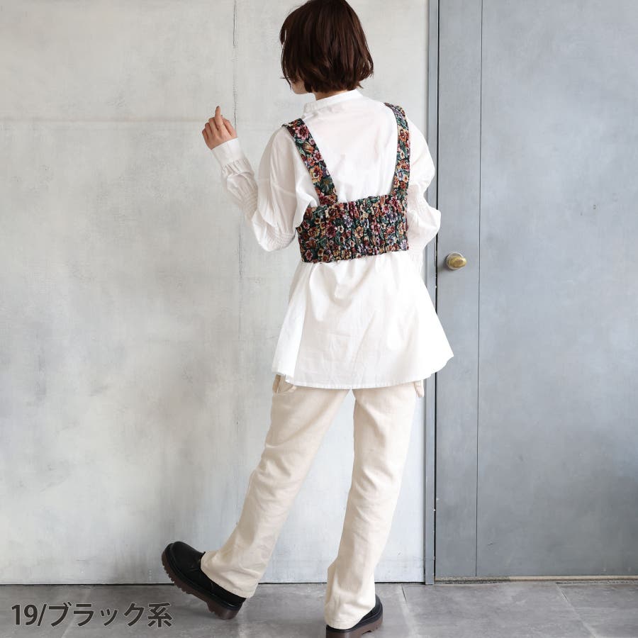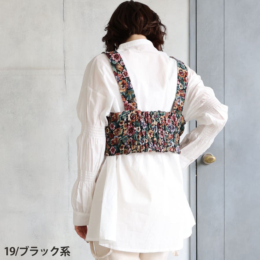 花柄デザインのビスチェはもちろろんお手もちのトップスと重ねるのも◎