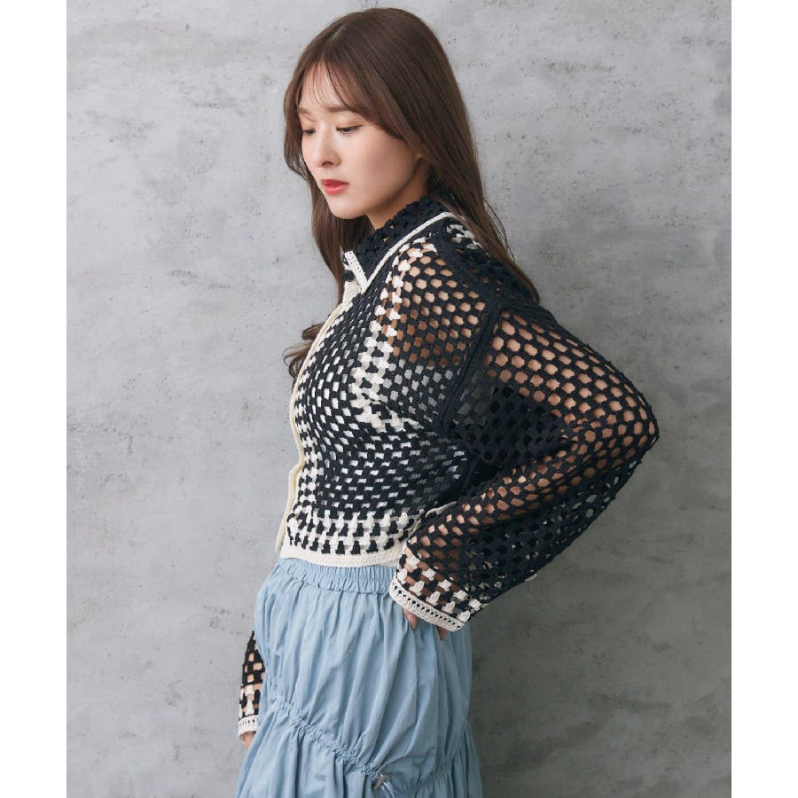 <配色スカシ編みが可愛いカーディガンアイテム>▼デザインざっくりとしたスカシ編みデザインのカーディガン。透け感があり、通気性も抜群なので、夏はキャミに羽織るだけで肌見せは控えられるけど、涼しいコーデに。カラー展開によって配色も違うので、それぞれイメージが違うアイテムになっています。▼コーディネート春先はシアーインナーや、Tシャツに羽織ってコーデにデザイン性をプラス!真夏はキャミソールに羽織って涼しいスタイリングに◎------------------------------生地感:薄手伸縮性:なし透け感:あり裏地:なし------------------------------▼ブランド紹介RETRO GIRL (レトロガール)自分らしい“ベーシックアイテム”と新しい自分の”トレンドアイテム”が見つかる場所今らしいファッションを楽しむ女性のためのブランド#リボンニット #ニットカーディガン #ニットコーデ #スカシ編み #カラーニット #バイカラーカラーコーデ #トレンドコーデ▼注意事項※撮影環境やモニター環境によって実際の商品とお色味が 多少異なってみえる場合がございます。品番:RP404812T002 / 品名:配色スカシ編みカーデ