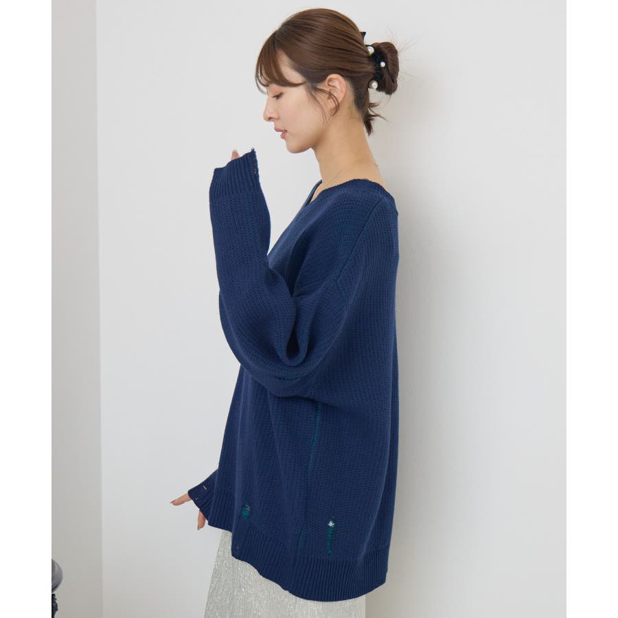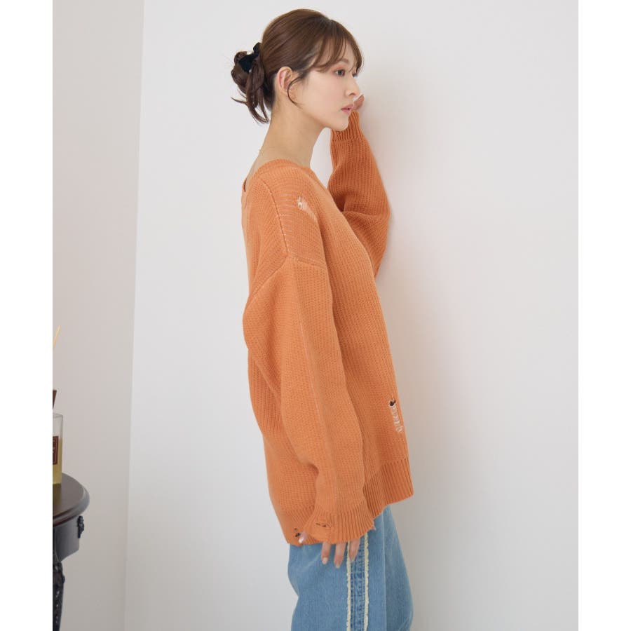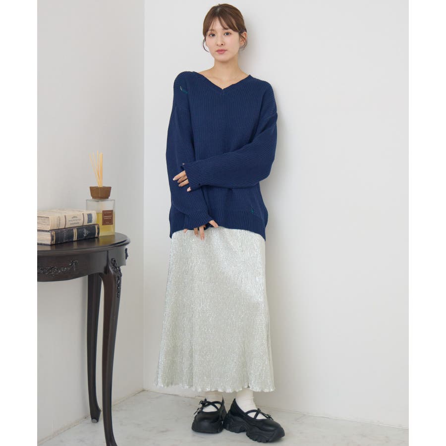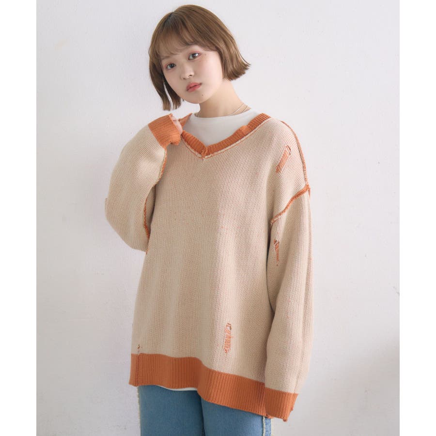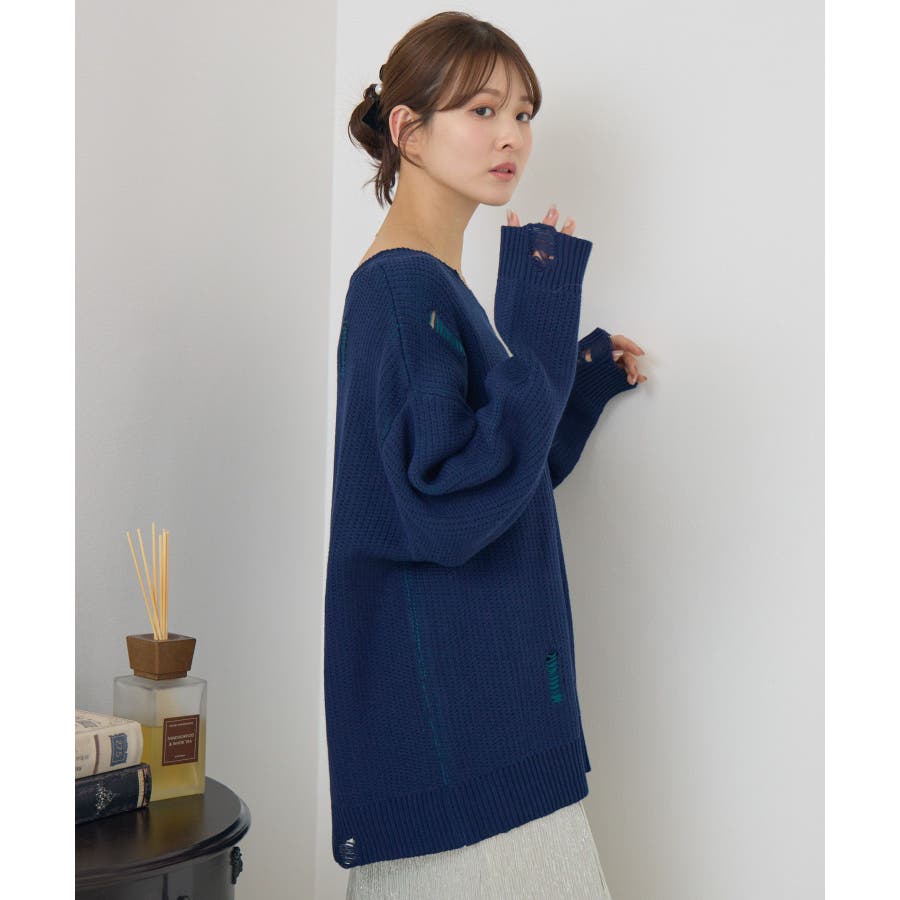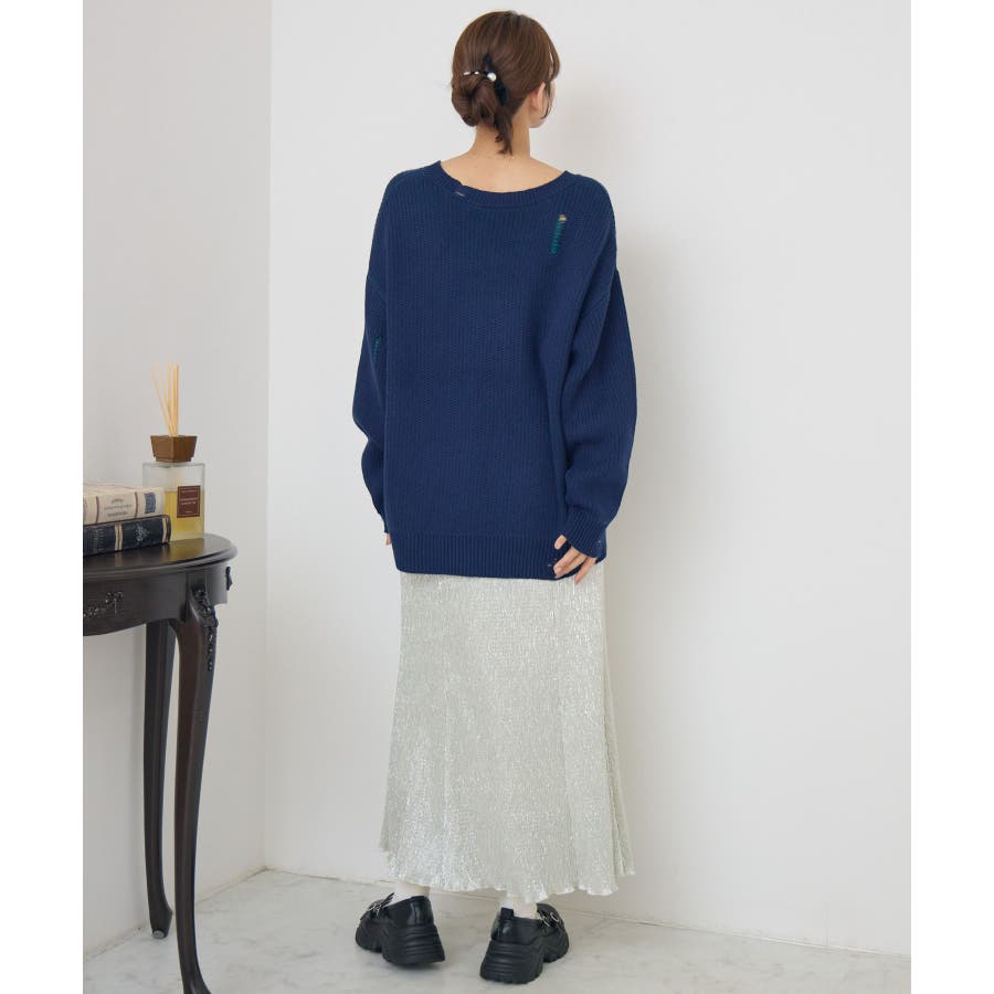 〈驚きの4wayで着まわし力抜群なカジュアルニット〉▼デザインランダムに施されたダメージデザインがカジュアルなニット。長めの着丈でチュニック風に着こなすことも可能。前後でVネックとUネックのデザインをお楽しみいただけるだけではなく、表裏のリバーシブルデザインになっているので着回し力が抜群です。▼コーディネートカジュアルにデニム合わせや、ロングスカートと合わせれば、大人っぽいコーデに仕上げることも◎ショートパンツ合わせでチュニックワンピース風に着るのもおすすめです。------------------------------生地感:普通伸縮性:ある透け感:なし裏地:なし------------------------------▼ブランド紹介RETRO GIRL (レトロガール)自分らしい“ベーシックアイテム”と新しい自分の”トレンドアイテム”が見つかる場所今らしいファッションを楽しむ女性のためのブランド#ニット #リバーシブルニット#4wayニット #冬コーデ #チュニックニット #春コーデ▼注意事項※撮影環境やモニター環境によって実際の商品とお色味が 多少異なってみえる場合がございます。品番:RP541512T006 / 品名:ダメージチュニックNT