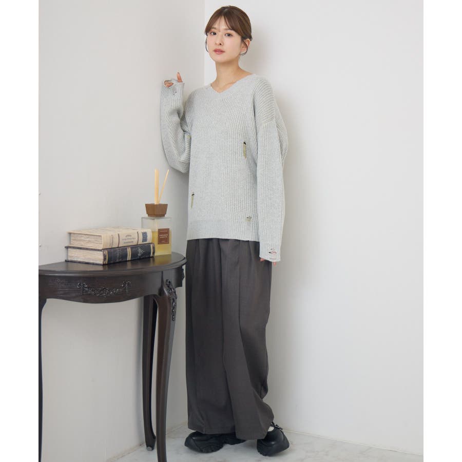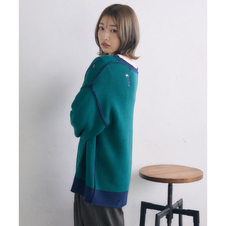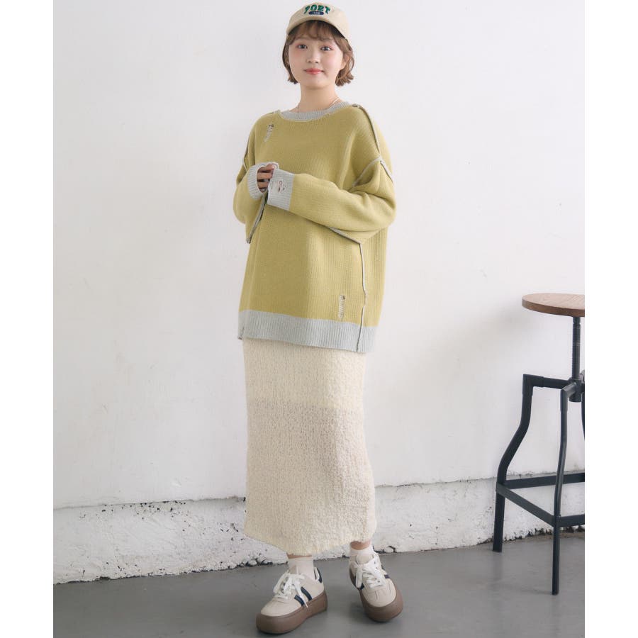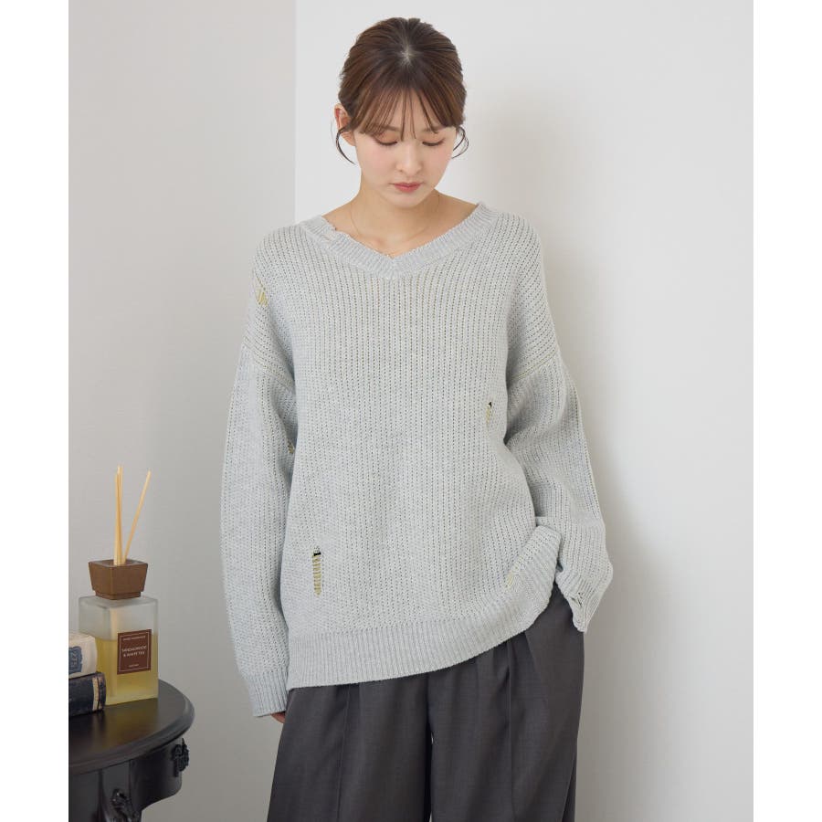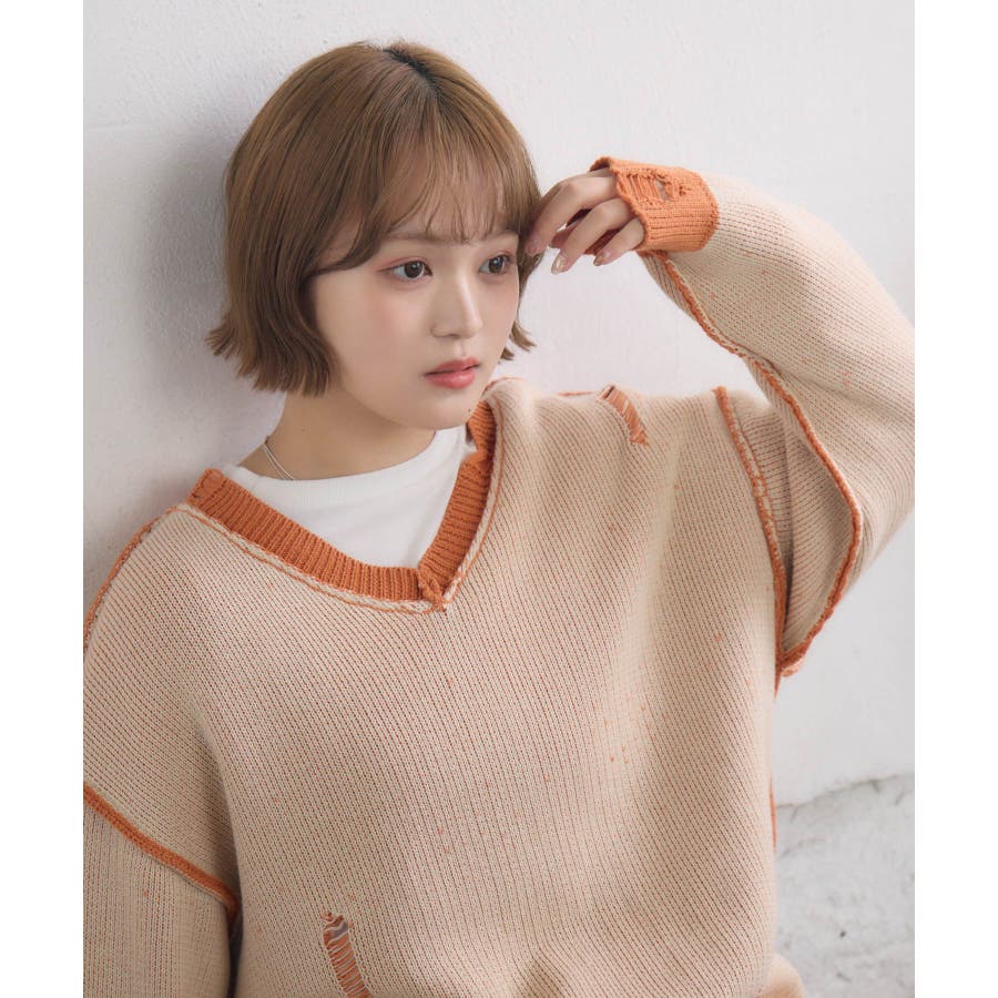 〈驚きの4wayで着まわし力抜群なカジュアルニット〉▼デザインランダムに施されたダメージデザインがカジュアルなニット。長めの着丈でチュニック風に着こなすことも可能。前後でVネックとUネックのデザインをお楽しみいただけるだけではなく、表裏のリバーシブルデザインになっているので着回し力が抜群です。▼コーディネートカジュアルにデニム合わせや、ロングスカートと合わせれば、大人っぽいコーデに仕上げることも◎ショートパンツ合わせでチュニックワンピース風に着るのもおすすめです。------------------------------生地感:普通伸縮性:ある透け感:なし裏地:なし------------------------------▼ブランド紹介RETRO GIRL (レトロガール)自分らしい“ベーシックアイテム”と新しい自分の”トレンドアイテム”が見つかる場所今らしいファッションを楽しむ女性のためのブランド#ニット #リバーシブルニット#4wayニット #冬コーデ #チュニックニット #春コーデ▼注意事項※撮影環境やモニター環境によって実際の商品とお色味が 多少異なってみえる場合がございます。品番:RP541512T006 / 品名:ダメージチュニックNT