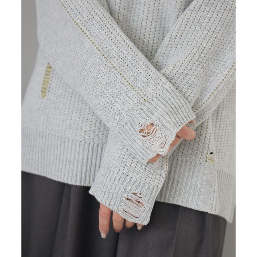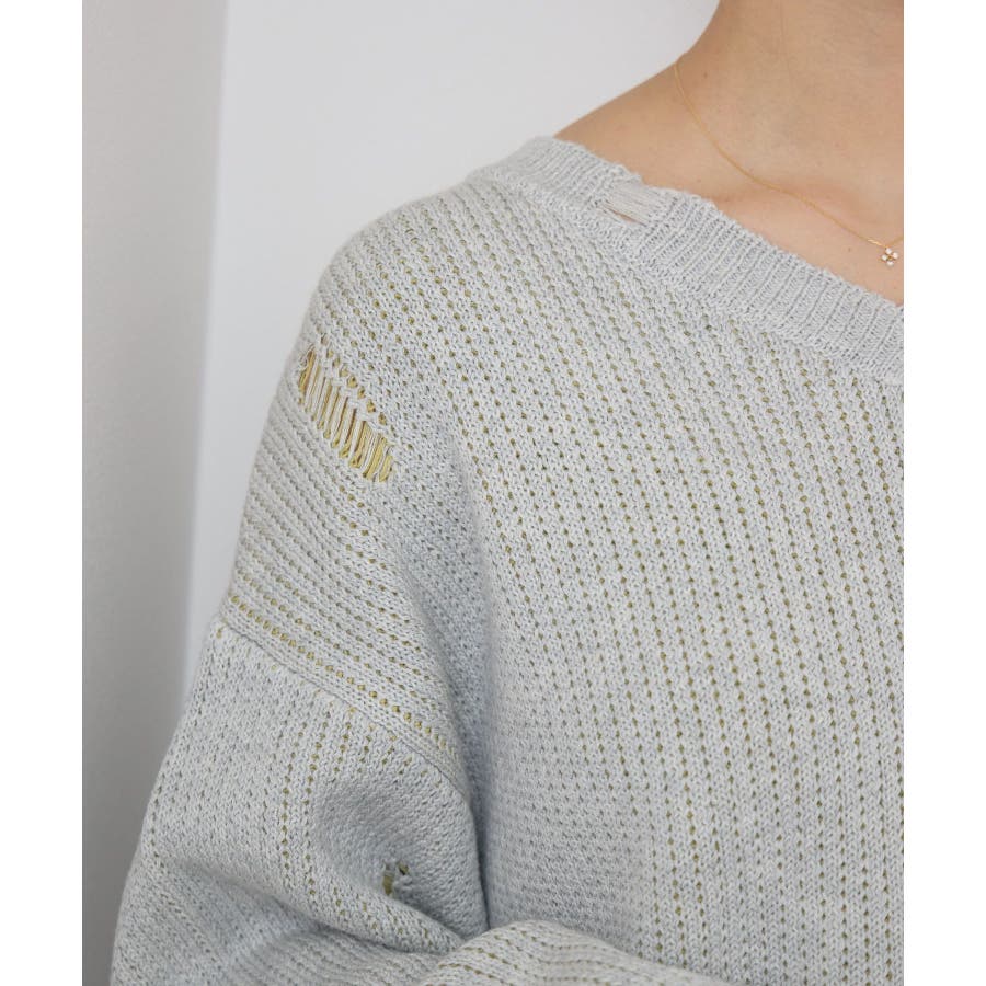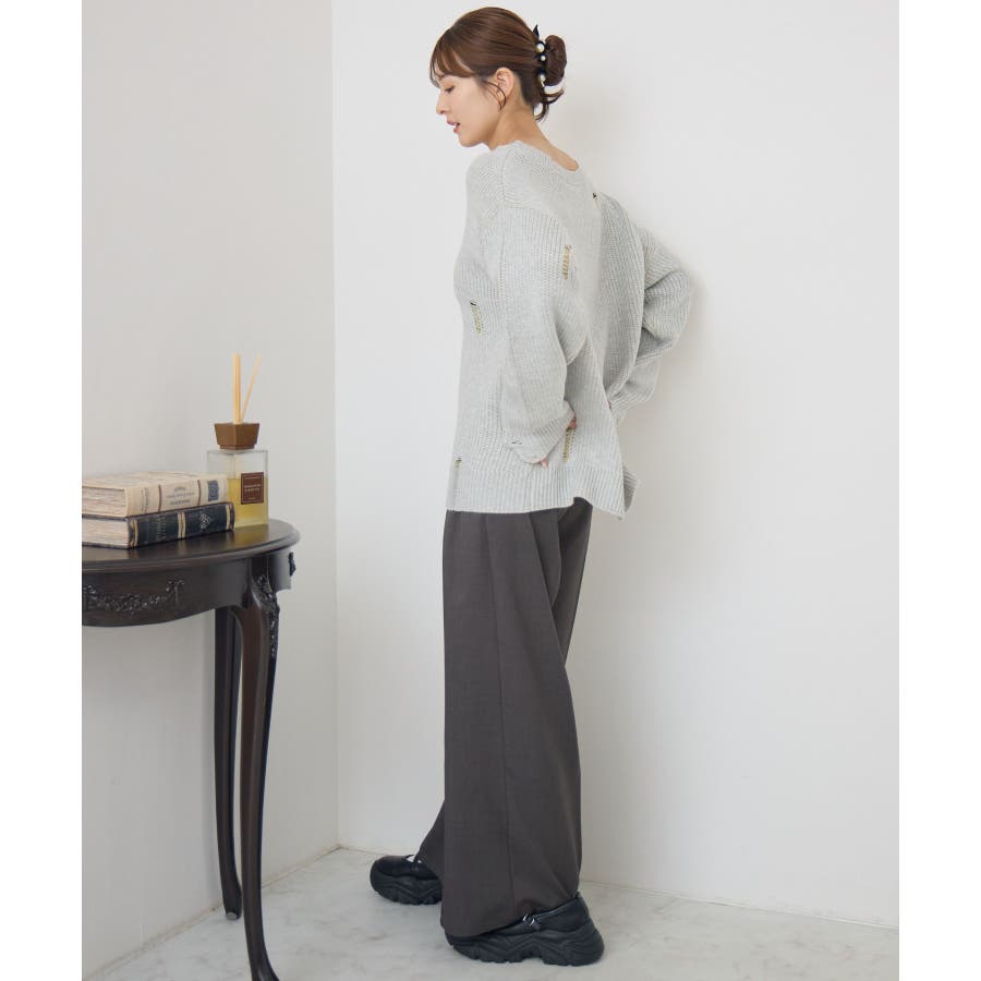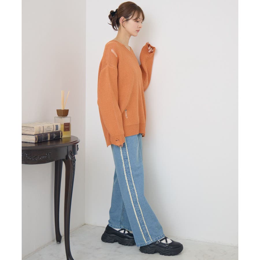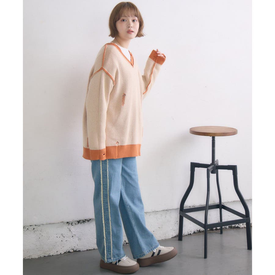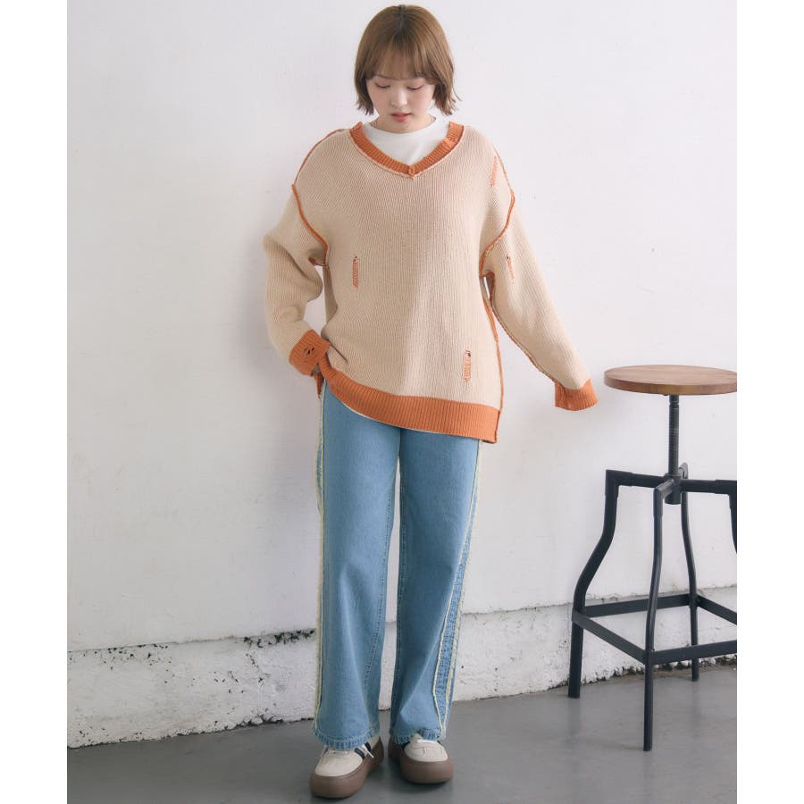 〈驚きの4wayで着まわし力抜群なカジュアルニット〉▼デザインランダムに施されたダメージデザインがカジュアルなニット。長めの着丈でチュニック風に着こなすことも可能。前後でVネックとUネックのデザインをお楽しみいただけるだけではなく、表裏のリバーシブルデザインになっているので着回し力が抜群です。▼コーディネートカジュアルにデニム合わせや、ロングスカートと合わせれば、大人っぽいコーデに仕上げることも◎ショートパンツ合わせでチュニックワンピース風に着るのもおすすめです。------------------------------生地感:普通伸縮性:ある透け感:なし裏地:なし------------------------------▼ブランド紹介RETRO GIRL (レトロガール)自分らしい“ベーシックアイテム”と新しい自分の”トレンドアイテム”が見つかる場所今らしいファッションを楽しむ女性のためのブランド#ニット #リバーシブルニット#4wayニット #冬コーデ #チュニックニット #春コーデ▼注意事項※撮影環境やモニター環境によって実際の商品とお色味が 多少異なってみえる場合がございます。品番:RP541512T006 / 品名:ダメージチュニックNT