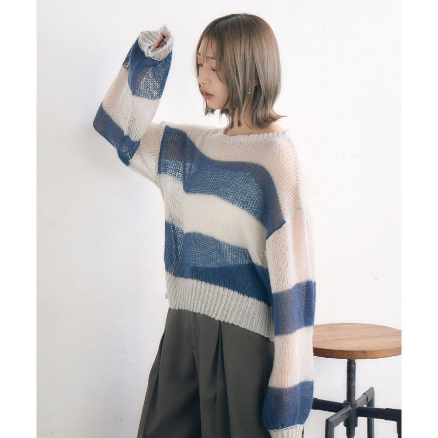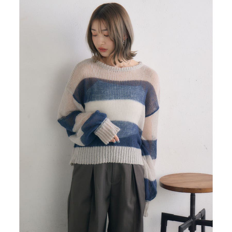 <スカシ編みで差し色におすすめ!ボーダーアイテム>▼デザイン透け感のあるスカシ編みのニットアイテム。彩度の高いカラーとホワイトのボーダーデザインで春におすすめの1枚。長袖ですが、スカシ編みで風通しがいいので、涼しく着て頂けます。袖幅もゆったりしていて、着心地も良いのが嬉しい!▼コーディネートボトムは、デニムパンツやストレートパンツ、ミニ丈ボトムなどなんでも合わせやすい!柄が入っているので、無地のボトムがおすすめです!------------------------------生地感:薄手伸縮性:ある透け感:ある裏地:なし-----------------------------▼ブランド紹介RETRO GIRL (レトロガール)自分らしい“ベーシックアイテム”と新しい自分の”トレンドアイテム”が見つかる場所今らしいファッションを楽しむ女性のためのブランド#サマーニット #スカシ編みニット #ボーダー #スカシ編み #春アイテム #ボーダーニット▼注意事項※撮影環境やモニター環境によって実際の商品とお色味が多少異なってみえる場合がございます。品番:RP556412B004 / 品名:モヘアボーダーNT