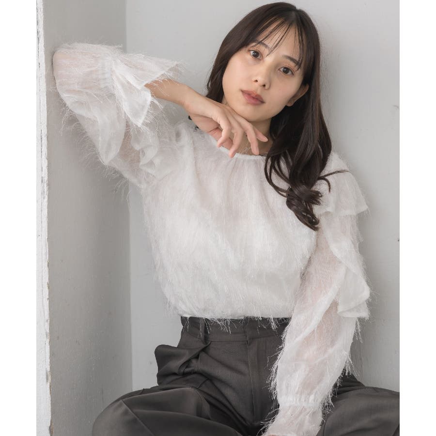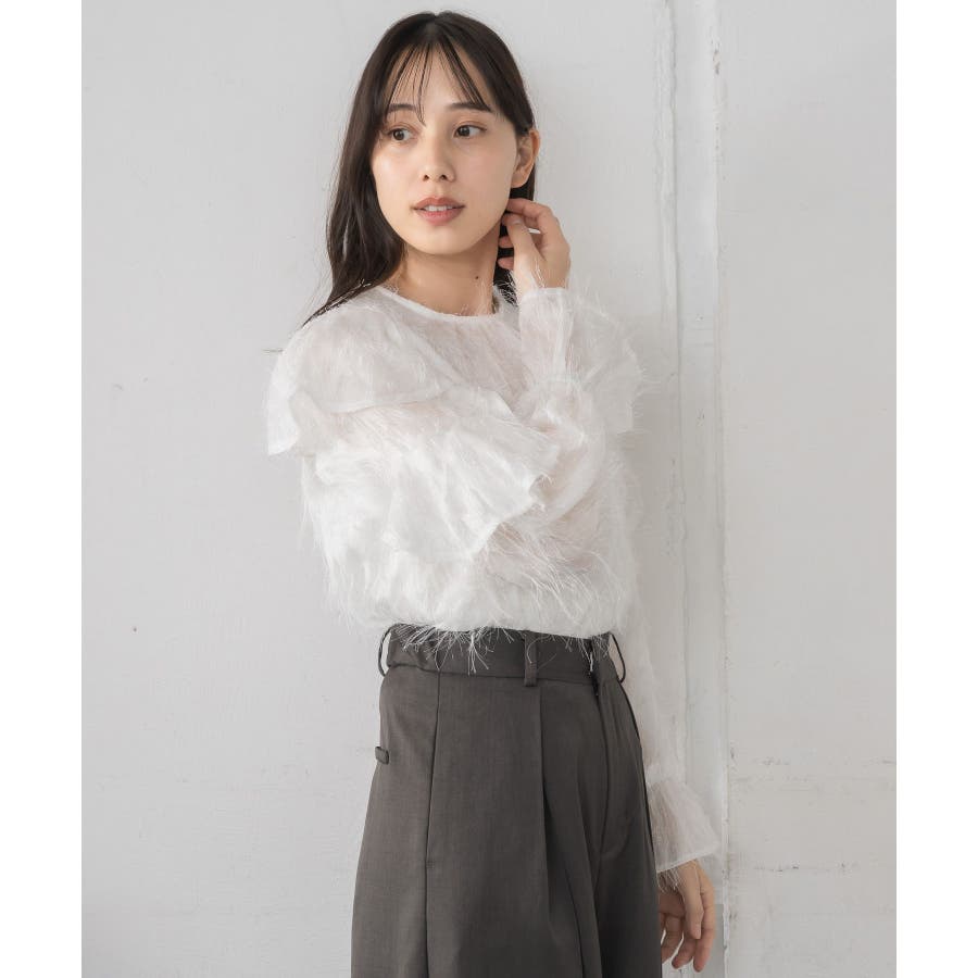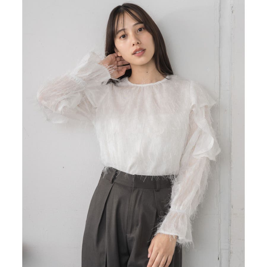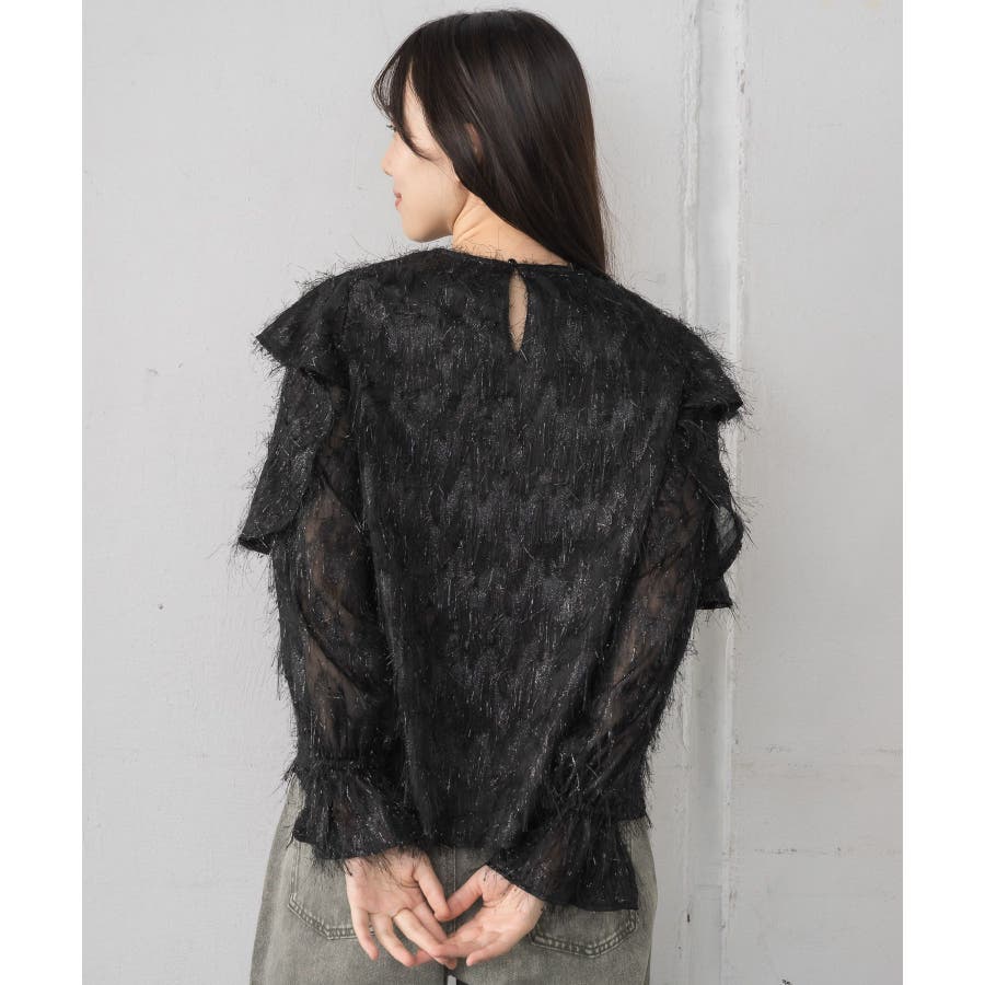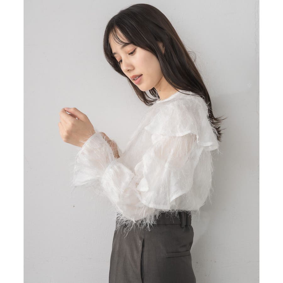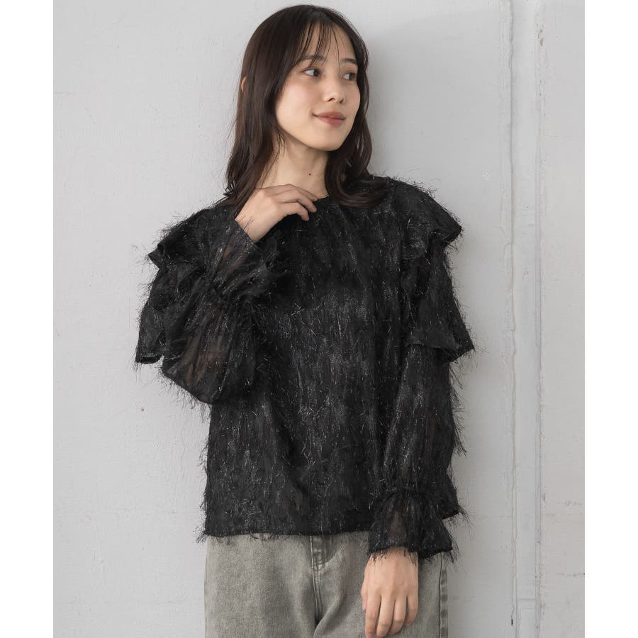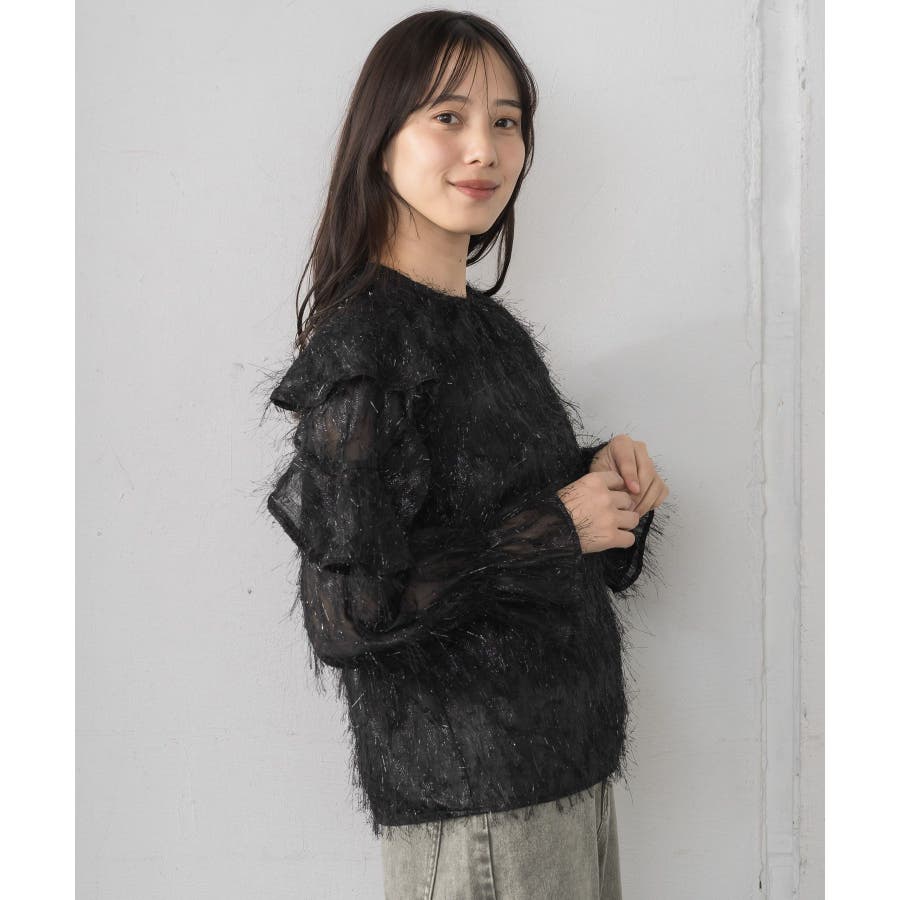 <存在感たっぷりのゴージャスなフリルブラウス>▼デザイン毛足の長いフェザー素材のブラウス。ラメ糸がミックスされているので、存在感のある1枚に、。袖は大き目のフリルデザインが施されていて、インナーに使ってもデザインがしっかり見えます。少し透け感のある素材ですが、ボディ部分にはしっかり裏地がついているので、安心◎バックボタンで着脱可能!▼コーディネートボトムを選ばない使いやすいシンプルデザイン。フロント部分はシンプルなので、ビスチェをレイヤードしても可愛いコーデに。------------------------------生地感:普通伸縮性:なし透け感:なし(袖部分はあり)裏地:ある------------------------------▼ブランド紹介RETRO GIRL (レトロガール)自分らしい“ベーシックアイテム”と新しい自分の”トレンドアイテム”が見つかる場所今らしいファッションを楽しむ女性のためのブランド#フリル #ブラウス #フリルブラウス #トレンドアイテム #甘めブラウス #ブラウスコーデ▼注意事項※撮影環境やモニター環境によって実際の商品とお色味が 多少異なってみえる場合がございます。品番:RP556423T001 / 品名:フェザー肩フリルBL