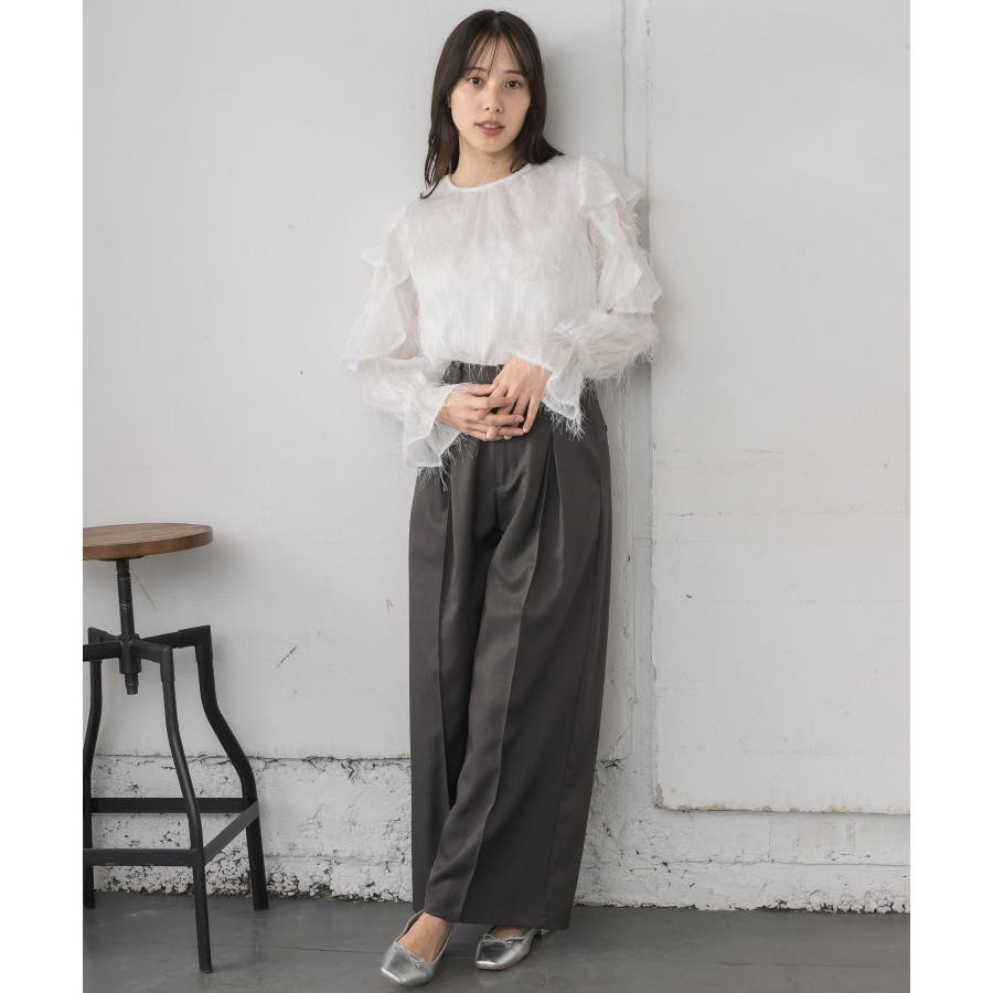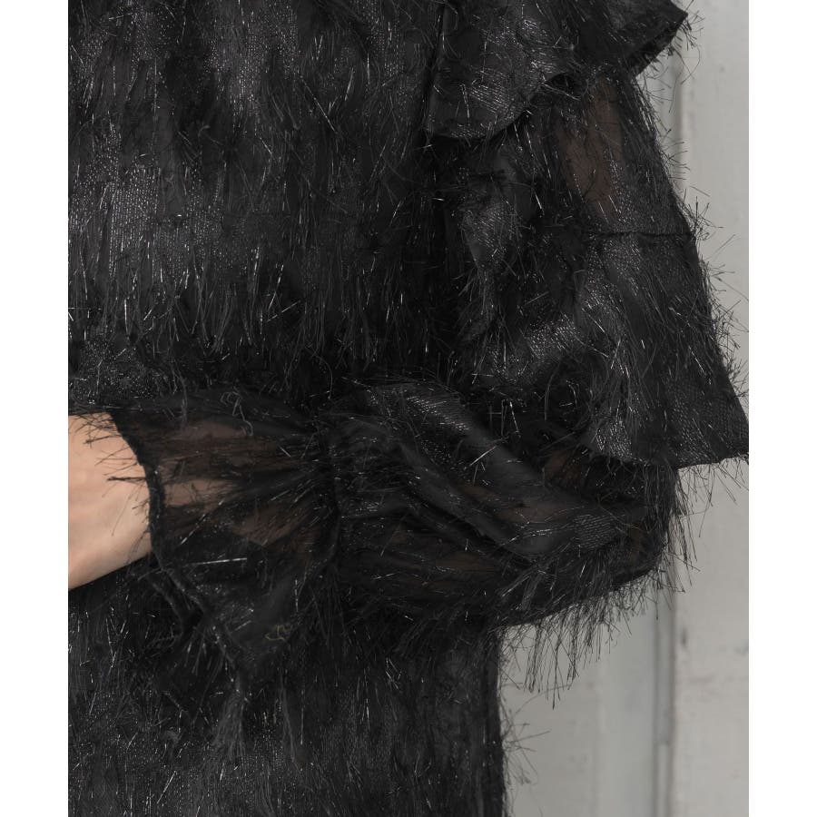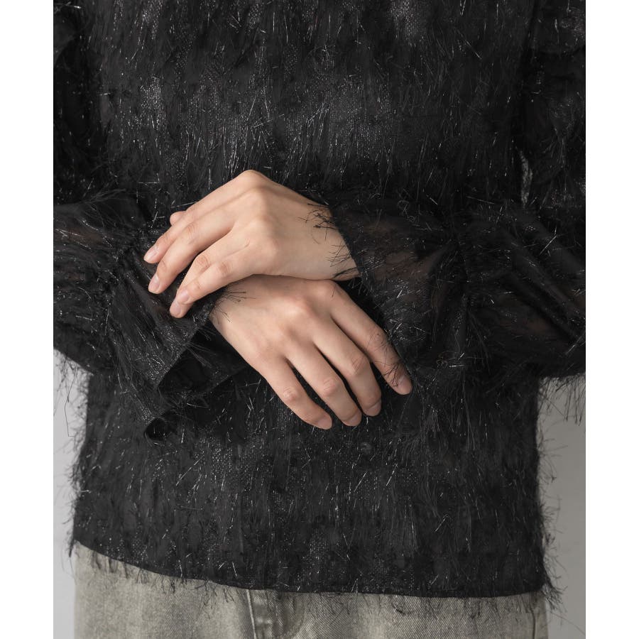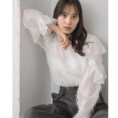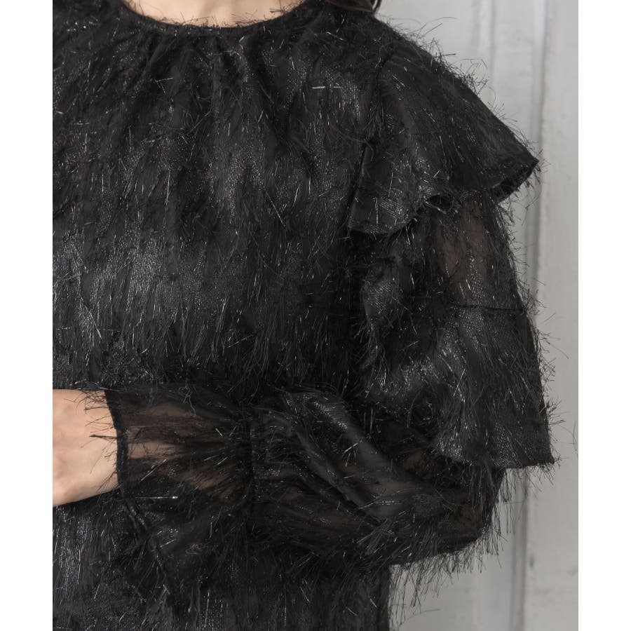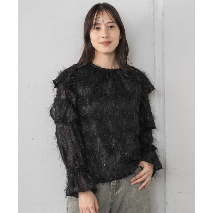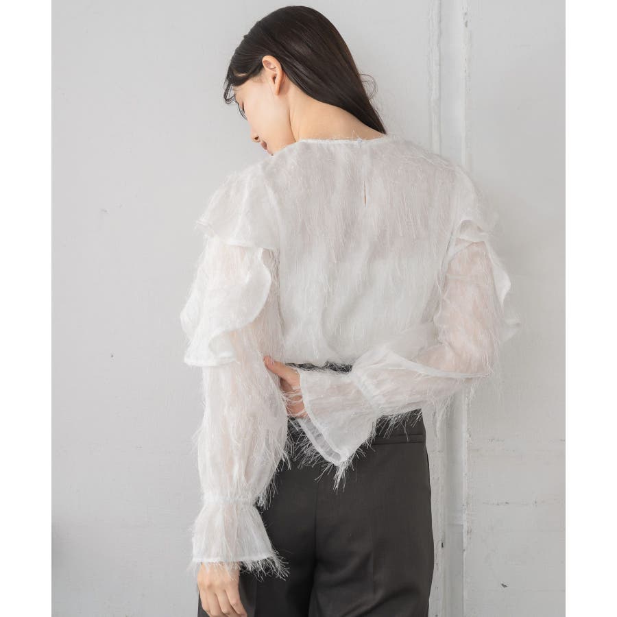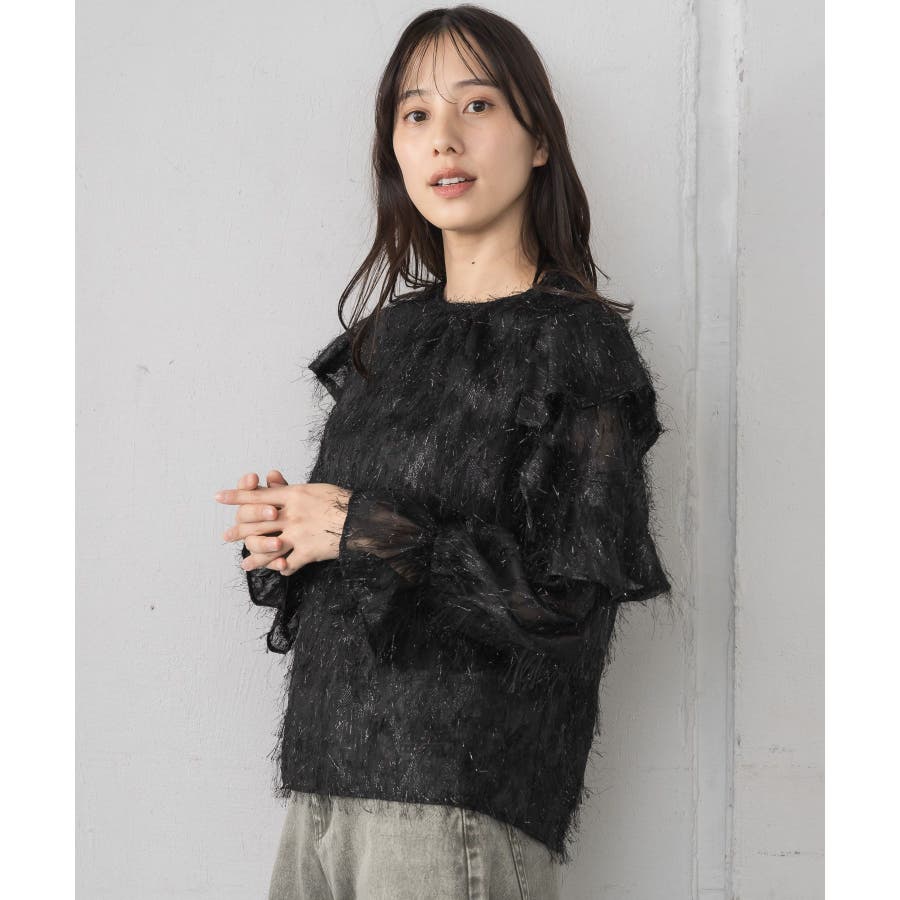 <存在感たっぷりのゴージャスなフリルブラウス>▼デザイン毛足の長いフェザー素材のブラウス。ラメ糸がミックスされているので、存在感のある1枚に、。袖は大き目のフリルデザインが施されていて、インナーに使ってもデザインがしっかり見えます。少し透け感のある素材ですが、ボディ部分にはしっかり裏地がついているので、安心◎バックボタンで着脱可能!▼コーディネートボトムを選ばない使いやすいシンプルデザイン。フロント部分はシンプルなので、ビスチェをレイヤードしても可愛いコーデに。------------------------------生地感:普通伸縮性:なし透け感:なし(袖部分はあり)裏地:ある------------------------------▼ブランド紹介RETRO GIRL (レトロガール)自分らしい“ベーシックアイテム”と新しい自分の”トレンドアイテム”が見つかる場所今らしいファッションを楽しむ女性のためのブランド#フリル #ブラウス #フリルブラウス #トレンドアイテム #甘めブラウス #ブラウスコーデ▼注意事項※撮影環境やモニター環境によって実際の商品とお色味が 多少異なってみえる場合がございます。品番:RP556423T001 / 品名:フェザー肩フリルBL