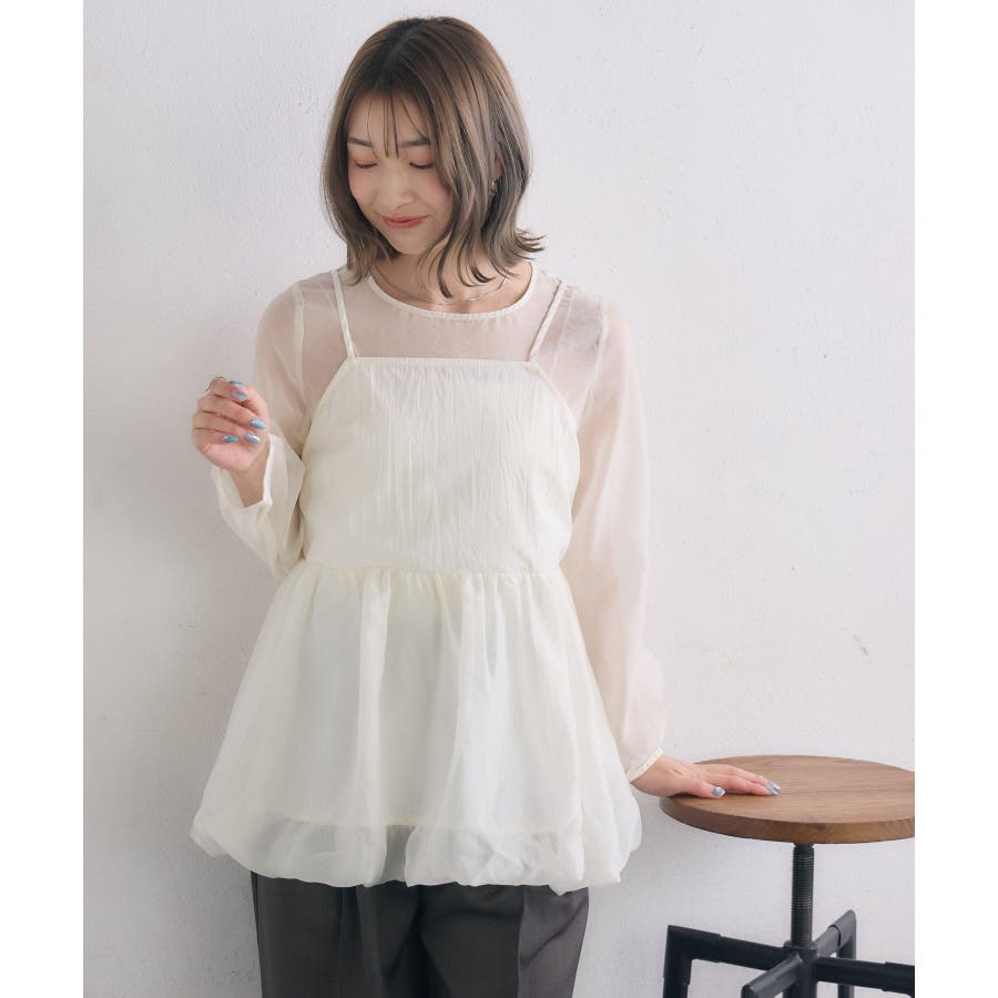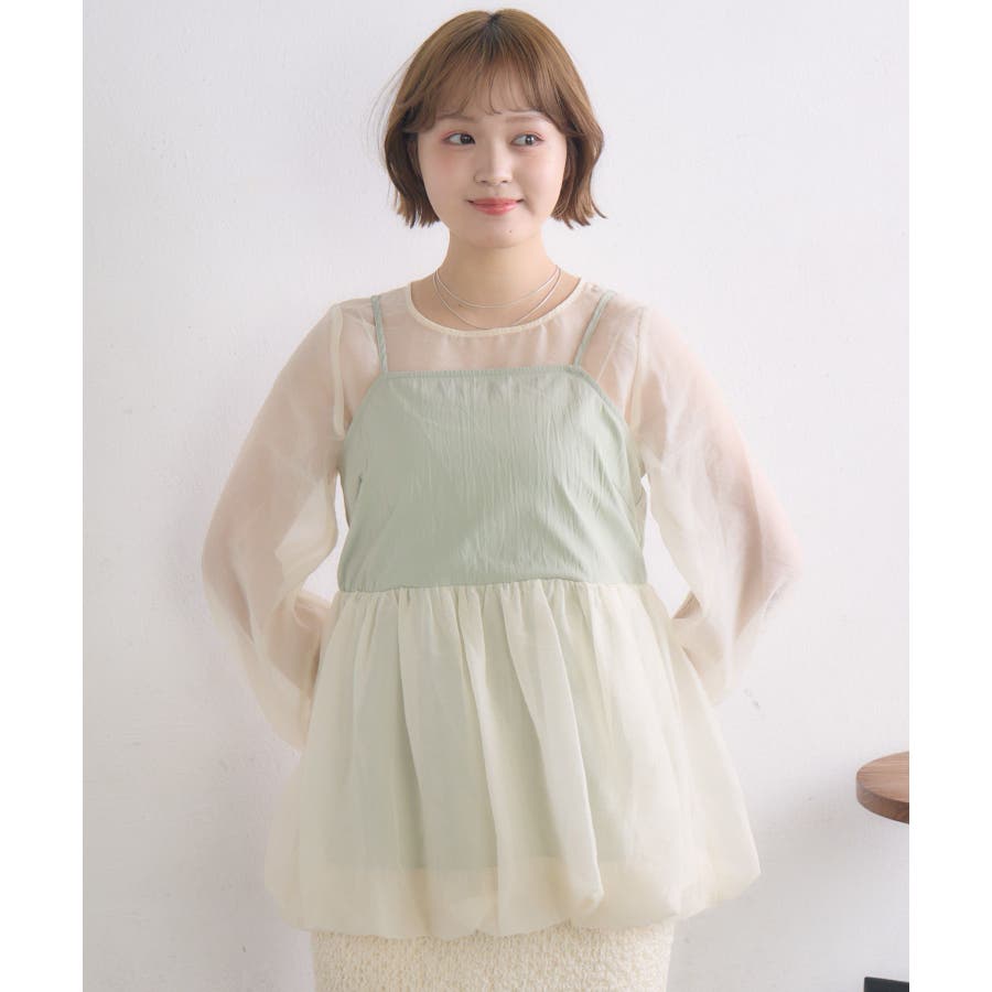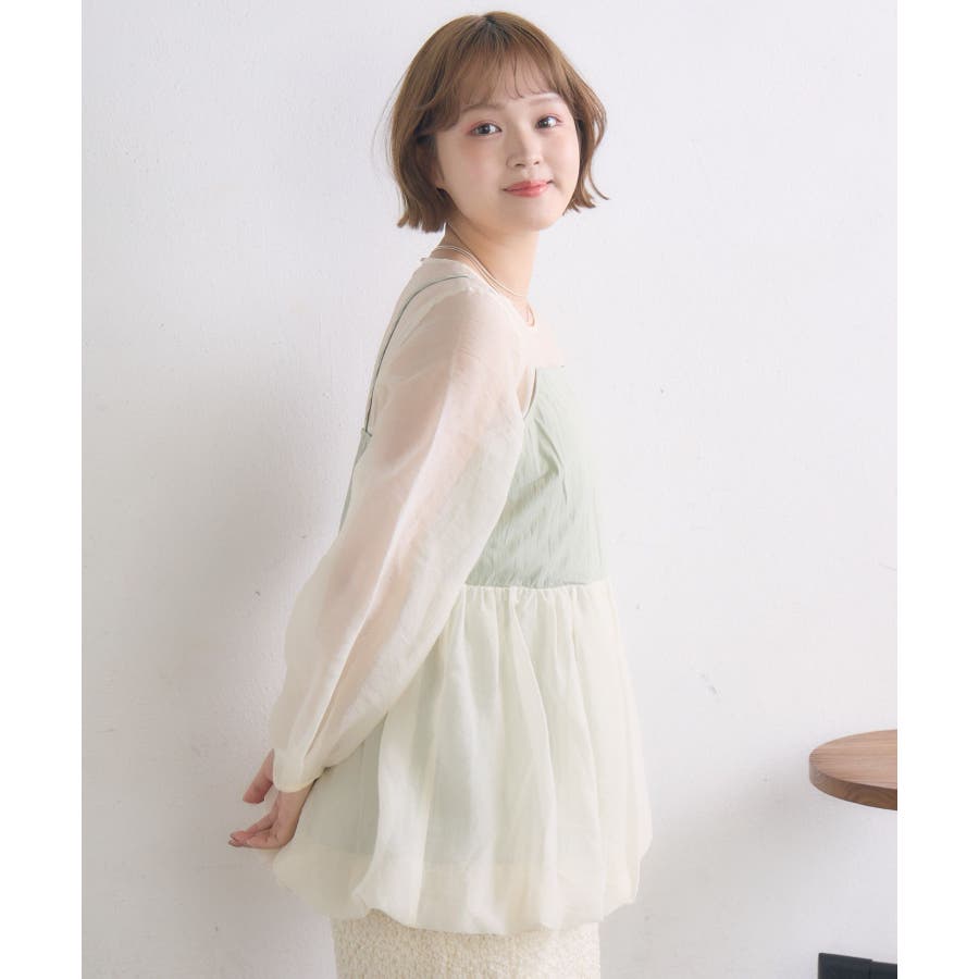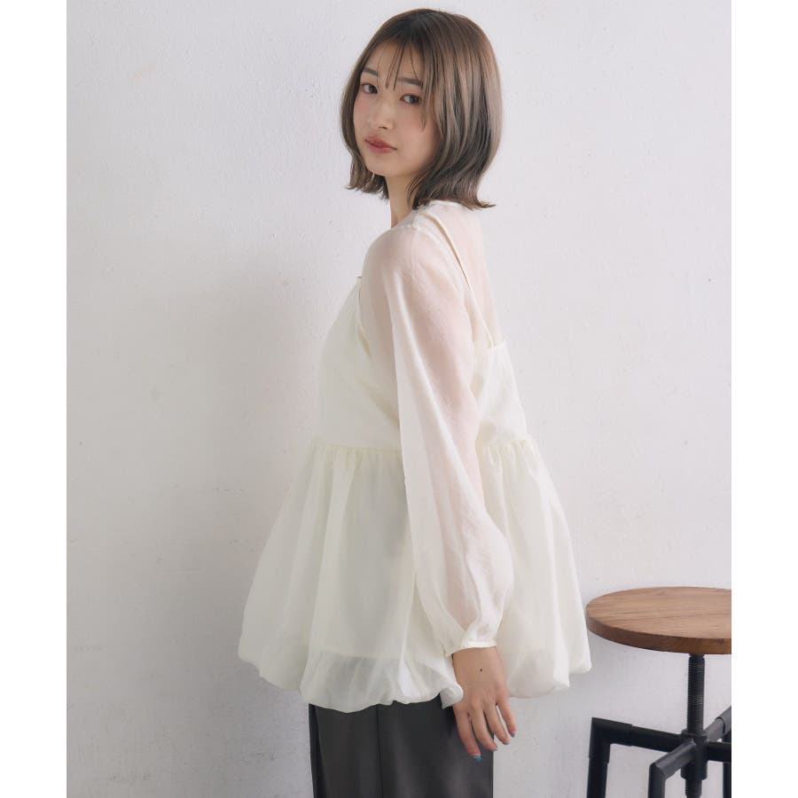 <1枚で重ね着見えするブラウスアイテム>▼デザイン今年トレンドのバルーンシルエットのビスチェが目を惹くブラウスアイテム。インナーはシアー素材で、視覚から涼しく爽やかに。ビスチェとインナーはくっついているので、コーデに迷うことなく1枚で完成。後ろの釦で着脱可能なのも嬉しいポイント♪▼コーディネート1枚でレイヤード見えするので、おしゃれ初心者さんにもチャレンジしやすい!ボトムに取り入れるアイテムでカジュアルも甘めも調整して頂けます。------------------------------生地感:普通(袖部分は薄手)伸縮性:なし透け感:袖部分あり裏地:なし------------------------------▼ブランド紹介RETRO GIRL (レトロガール)自分らしい“ベーシックアイテム”と新しい自分の”トレンドアイテム”が見つかる場所今らしいファッションを楽しむ女性のためのブランド#ビスチェ #シアー #シアー素材 #トレンドアイテム #バルーン #春コーデ #レイヤードコーデ▼注意事項※撮影環境やモニター環境によって実際の商品とお色味が 多少異なってみえる場合がございます。品番:RP557123T002 / 品名:キャミドッキングバルーンBL