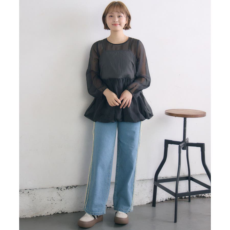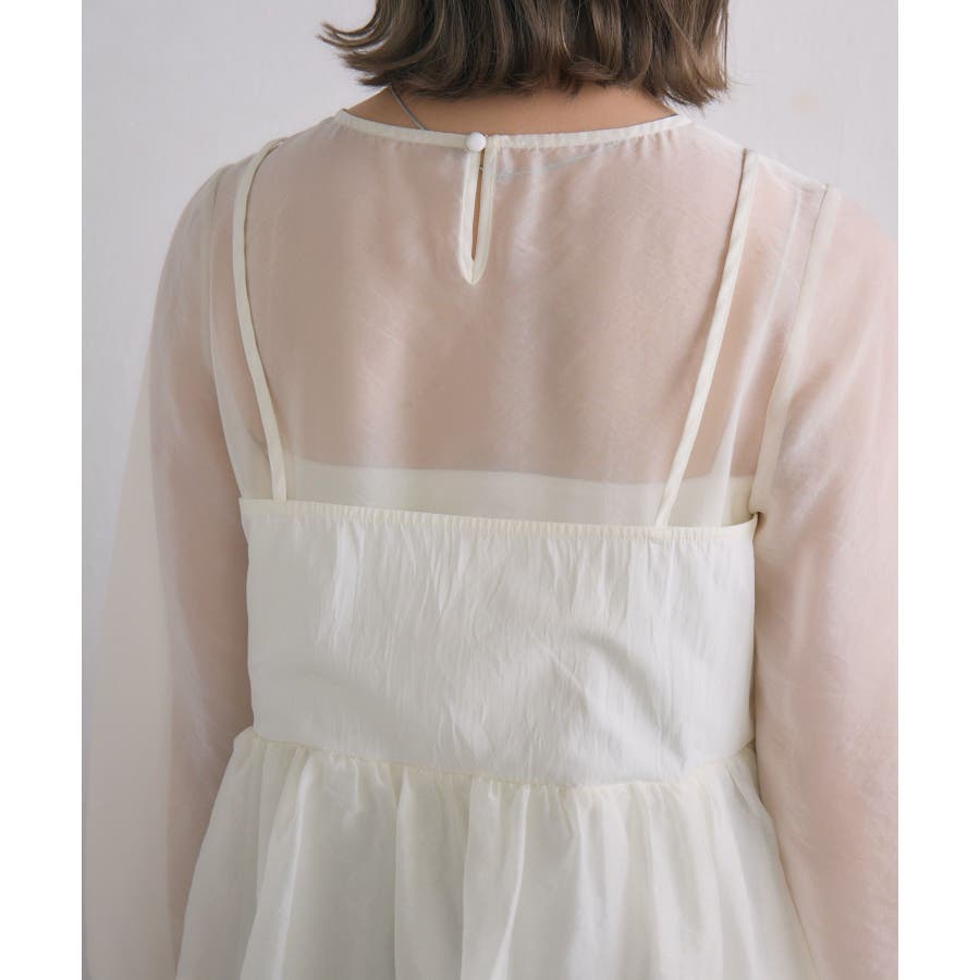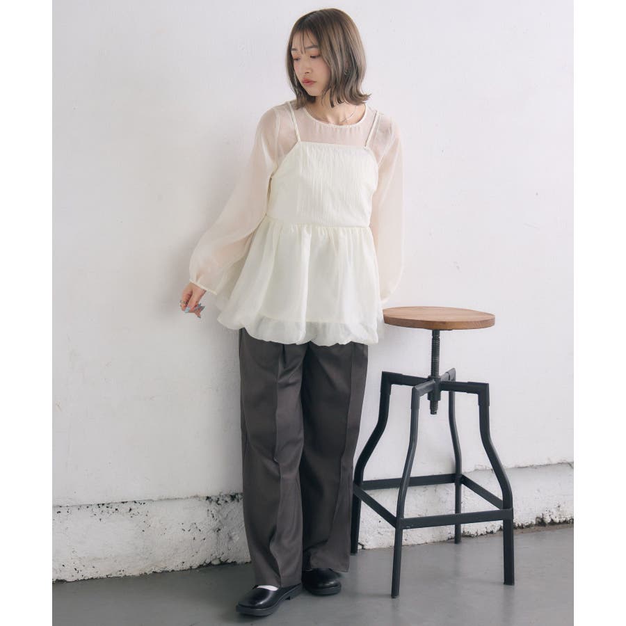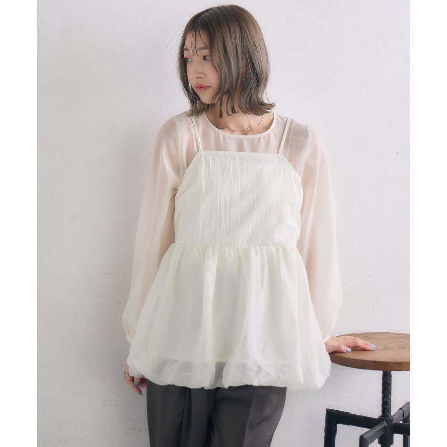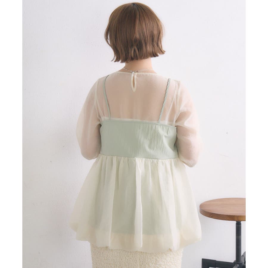 <1枚で重ね着見えするブラウスアイテム>▼デザイン今年トレンドのバルーンシルエットのビスチェが目を惹くブラウスアイテム。インナーはシアー素材で、視覚から涼しく爽やかに。ビスチェとインナーはくっついているので、コーデに迷うことなく1枚で完成。後ろの釦で着脱可能なのも嬉しいポイント♪▼コーディネート1枚でレイヤード見えするので、おしゃれ初心者さんにもチャレンジしやすい!ボトムに取り入れるアイテムでカジュアルも甘めも調整して頂けます。------------------------------生地感:普通(袖部分は薄手)伸縮性:なし透け感:袖部分あり裏地:なし------------------------------▼ブランド紹介RETRO GIRL (レトロガール)自分らしい“ベーシックアイテム”と新しい自分の”トレンドアイテム”が見つかる場所今らしいファッションを楽しむ女性のためのブランド#ビスチェ #シアー #シアー素材 #トレンドアイテム #バルーン #春コーデ #レイヤードコーデ▼注意事項※撮影環境やモニター環境によって実際の商品とお色味が 多少異なってみえる場合がございます。品番:RP557123T002 / 品名:キャミドッキングバルーンBL