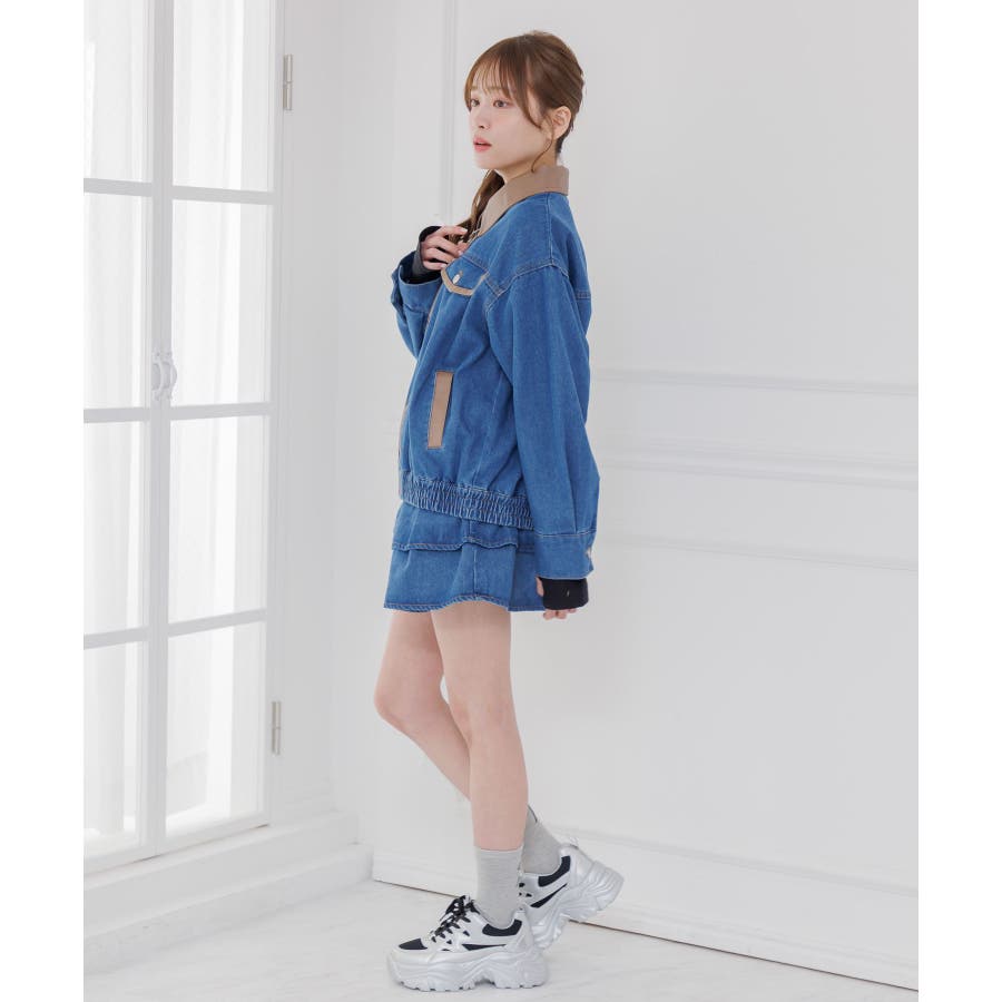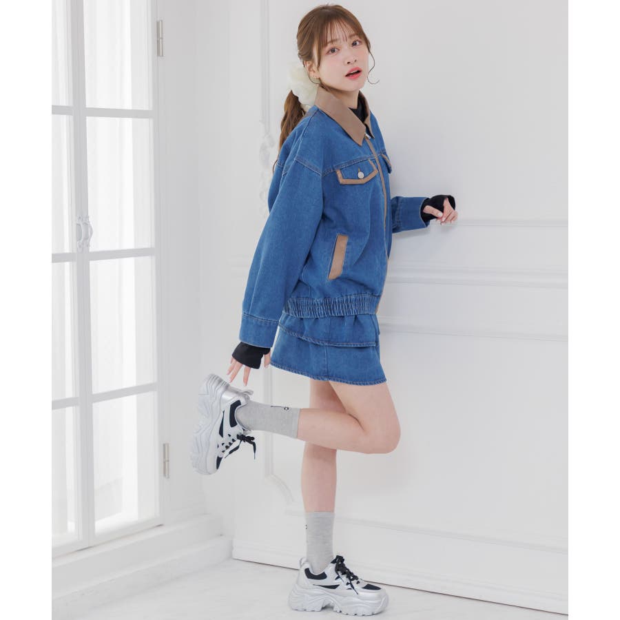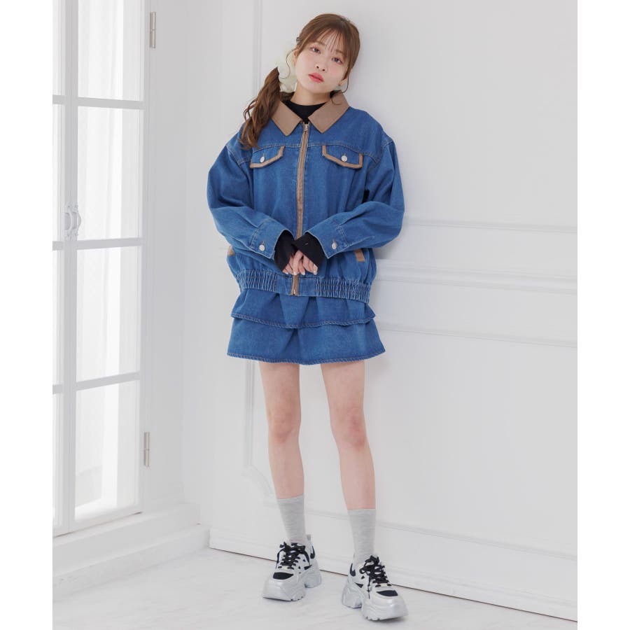 <毎年大人気のセットアップアイテムから新作が登場>▼デザインエムズで毎回大人気いただくセットアップのアイテム。今回は、春らしく、デニムのジャケットとティアードスカートがセットになりました!ジャケットは、フロント部分のZIPで着脱可能なので、羽織スタイルも◎襟部分やポケット部分にフェイクレザーの素材が採用されているので、価値感あるデザインに!スカートは、2段のフリルでボリューム感のあるアイテムウエストワン360度ゴムなので伸縮性もあり履き心地抜群です♪▼コーディネートセットでコーデが、完成するアイテム!もちろん別々でも着用していただきます◎特にジャケットは春の羽織としてデイリー使いも可能です!▼セット内容・デニムジャケット・デニムスカート-----------------------------生地感:普通伸縮性:なし透け感:なし裏地:ある------------------------------▼ブランド紹介ems excite (エムズエキサイト)“more fun more cute”今をもっと楽しくもっと可愛くいたい女の子に向けたgirly cuteなブランド#フレアスカート #デニム #ブルゾン #セットアップ #セットアイテム #セットアップコーデ #ティアードスカート▼注意事項※撮影環境やモニター環境によって実際の商品とお色味が 多少異なってみえる場合がございます。品番:RP634821C002 / 品名:パイピングGジャン&SKセット