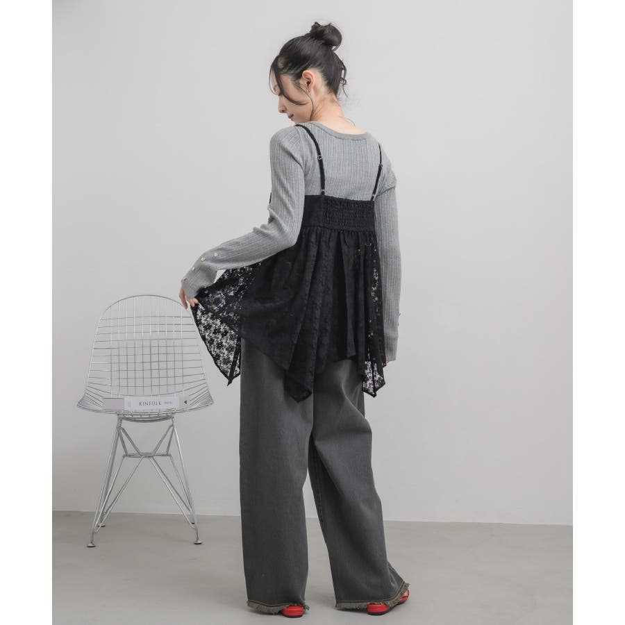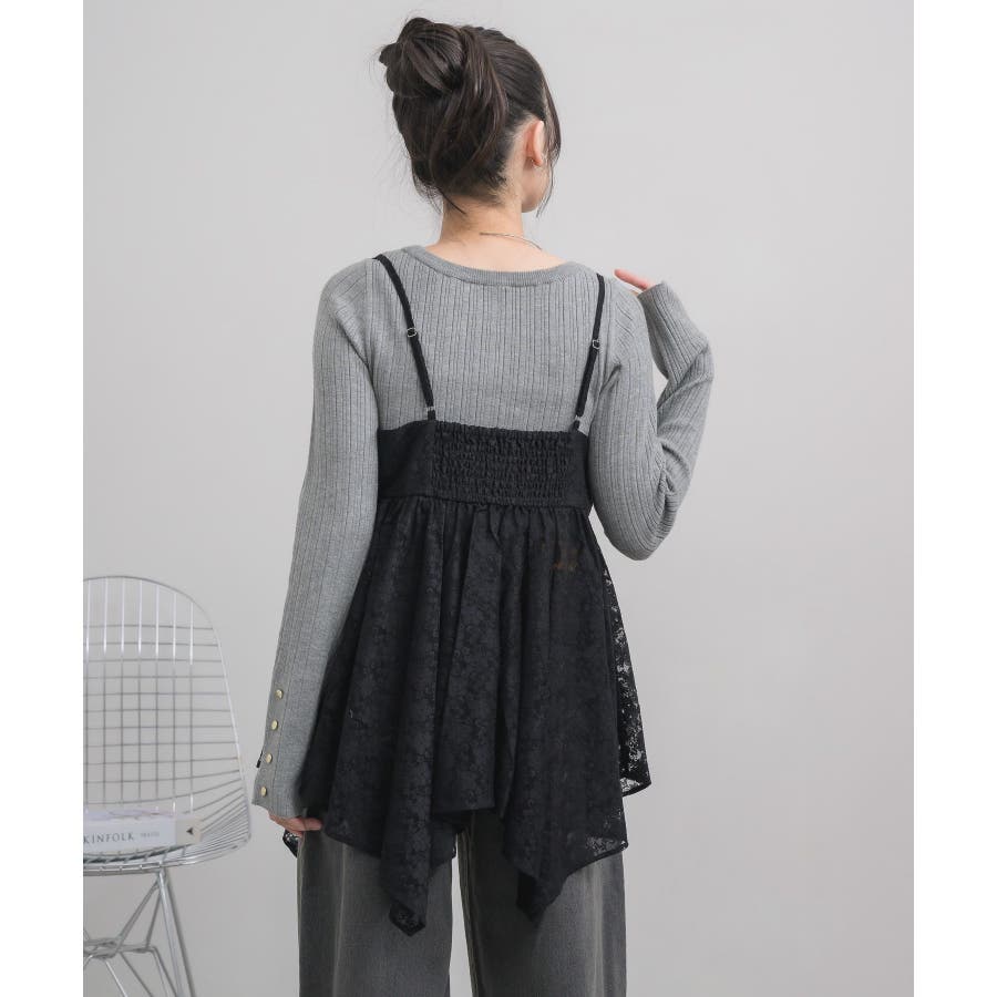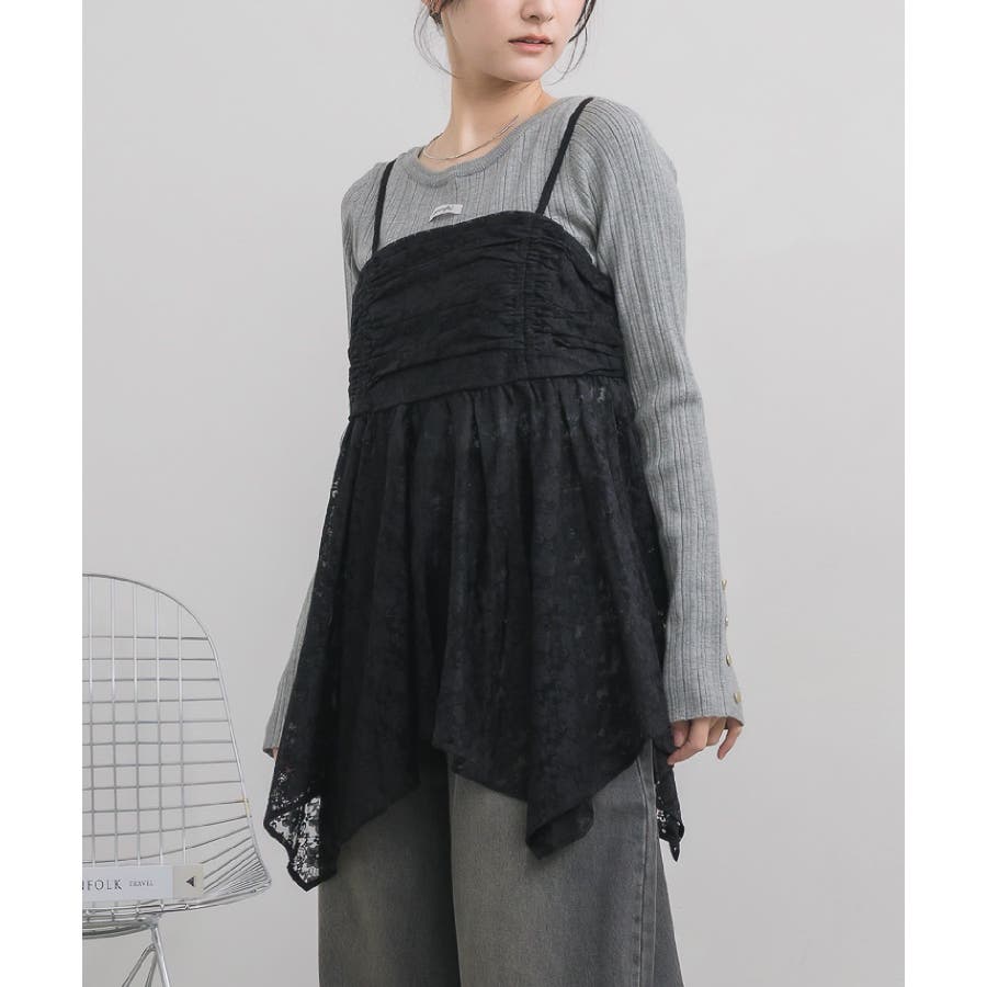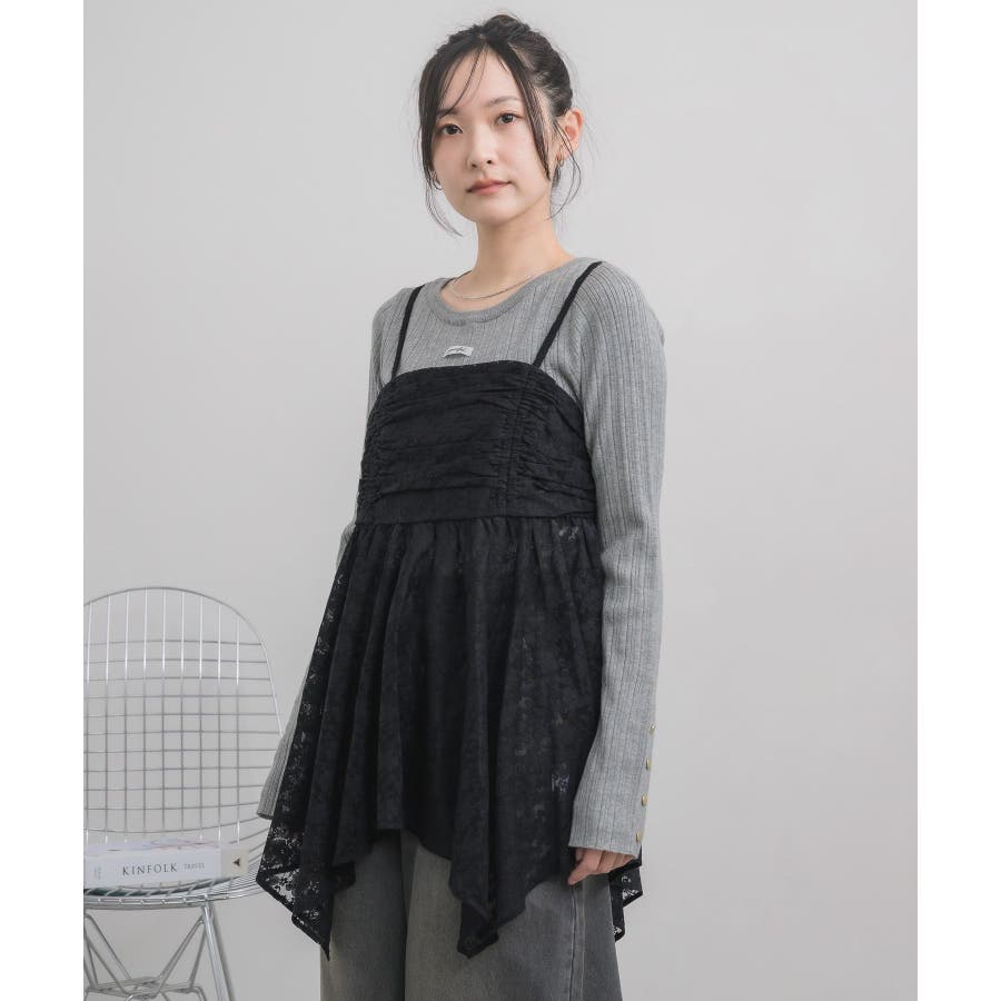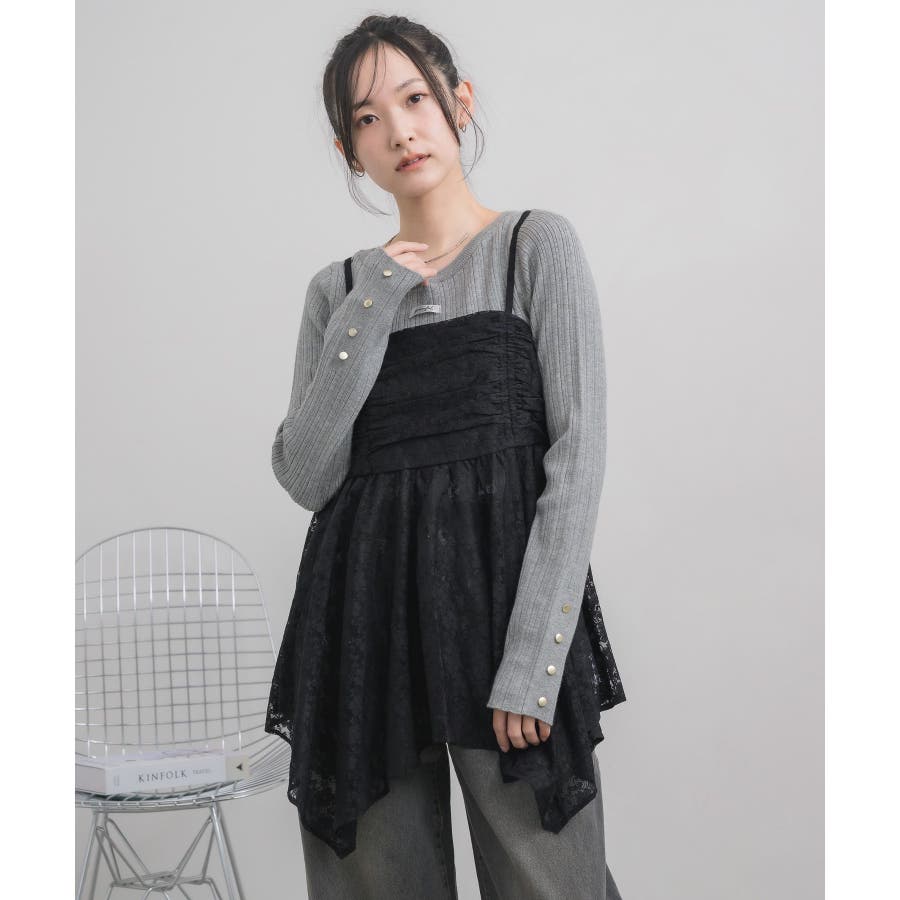 <イレヘムデザインが目を惹く!トレンドのレイヤードキャミソール>▼デザイントレンド感あるレイヤードコーデに垢抜けるレースキャミソール。裏地がなく、透け感もあるので、インナーのデザインもしっかり魅せてくれます。裾はランダムな着丈のイレヘムデザインになっているのが新しい肩紐にはアジャスターもついているので、着丈の調節も可能です◎▼コーディネート上からトレーナーなどレイヤードして、裾だけ見せるのも今年らしい◎デニムパンツやスウェットパンツでカジュアルに合わせてトレンドコーデを楽しんでください♪------------------------------生地感:薄手伸縮性:ある透け感:ある裏地:なし------------------------------▼ブランド紹介RETRO GIRL (レトロガール)自分らしい“ベーシックアイテム”と新しい自分の”トレンドアイテム”が見つかる場所今らしいファッションを楽しむ女性のためのブランド#ビスチェ #ワンピース #レイヤードビスチェ #トレンドアイテム #トレンドビスチェ #レースキャミ▼注意事項※撮影環境やモニター環境によって実際の商品とお色味が 多少異なってみえる場合がございます。品番:RP637523N001 / 品名:レースイレヘムキャミ