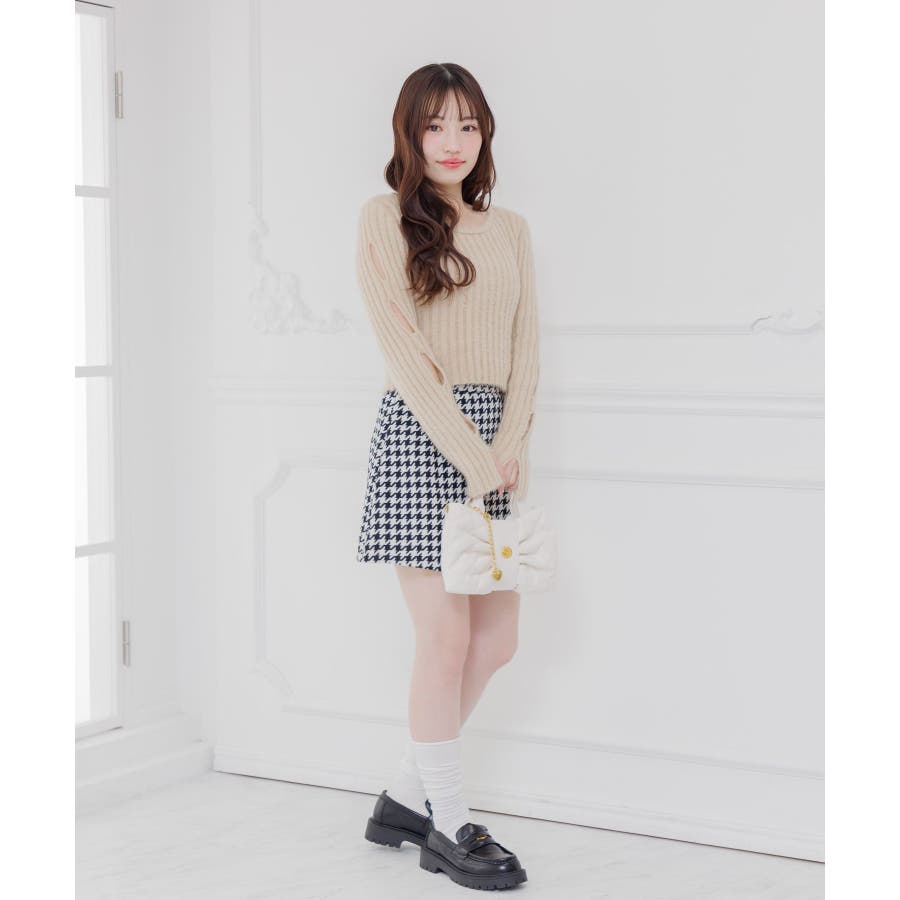 <アソート展開で選ぶのが楽しい♪美シルエットミニスカート>▼デザインアソート展開でセレクトするのが楽しいミニスカート後ろのzipで着脱可能な作りになっています◎ゴムが入っておらず、ぴったりとしたサイズ感で美シルエットが実現!しっかりとした素材感で高見え間違いなしの1枚です◎▼コーディネート千鳥からのアイテムは、シンプルなトップスと合わせても、存在感のあるデザインブラックは定番でどんなトップスとも合わせていただけます!------------------------------生地感:やや厚手伸縮性:なし透け感:なし裏地:ある------------------------------▼ブランド紹介ems excite (エムズエキサイト)“more fun more cute”今をもっと楽しくもっと可愛くいたい女の子に向けたgirly cuteなブランド#ツイードスカート #台形スカート #千鳥柄 #ブラック #ミニスカート #韓国コーデ▼注意事項※撮影環境やモニター環境によって実際の商品とお色味が 多少異なってみえる場合がございます。品番:RP637531G009 / 品名:アソート台形ミニSK