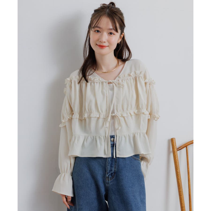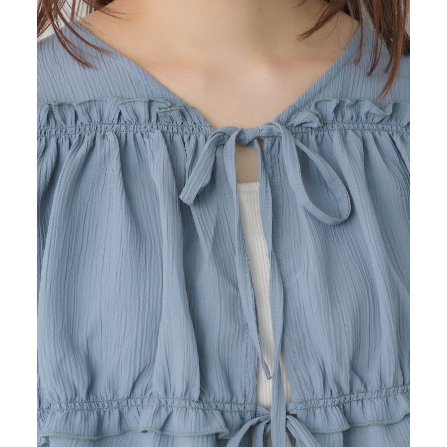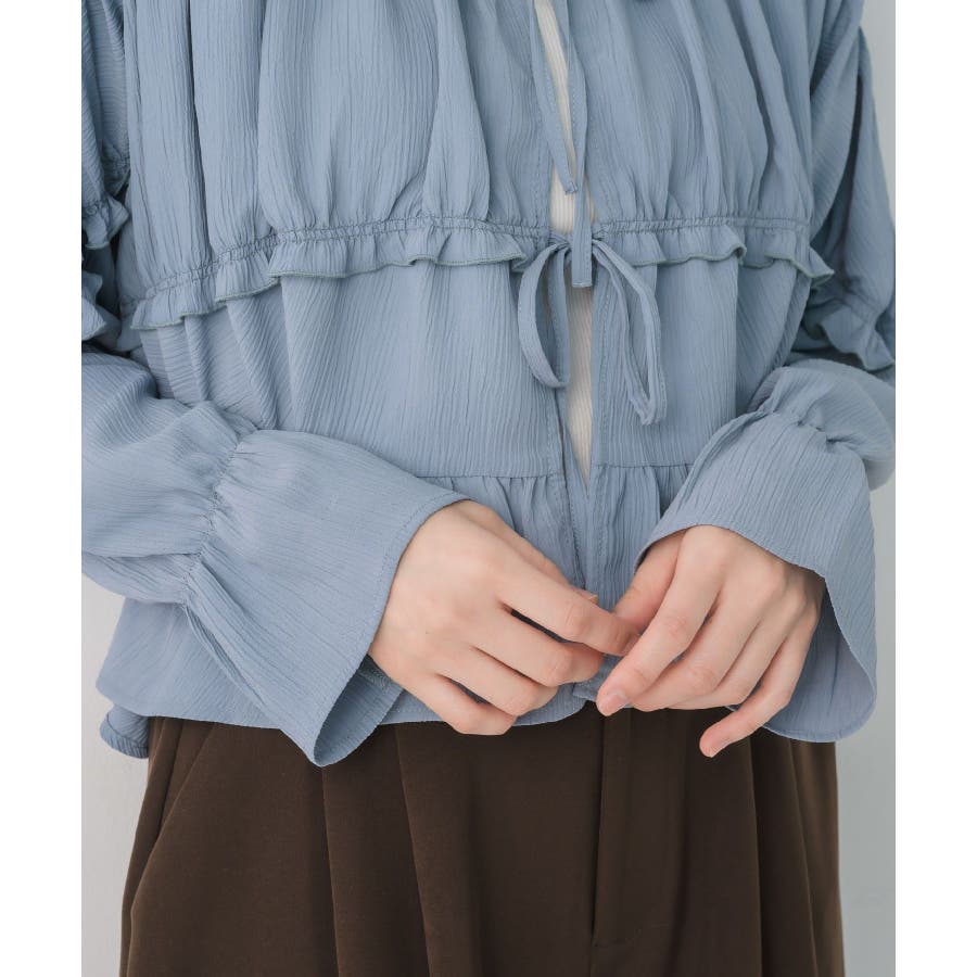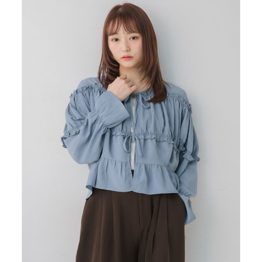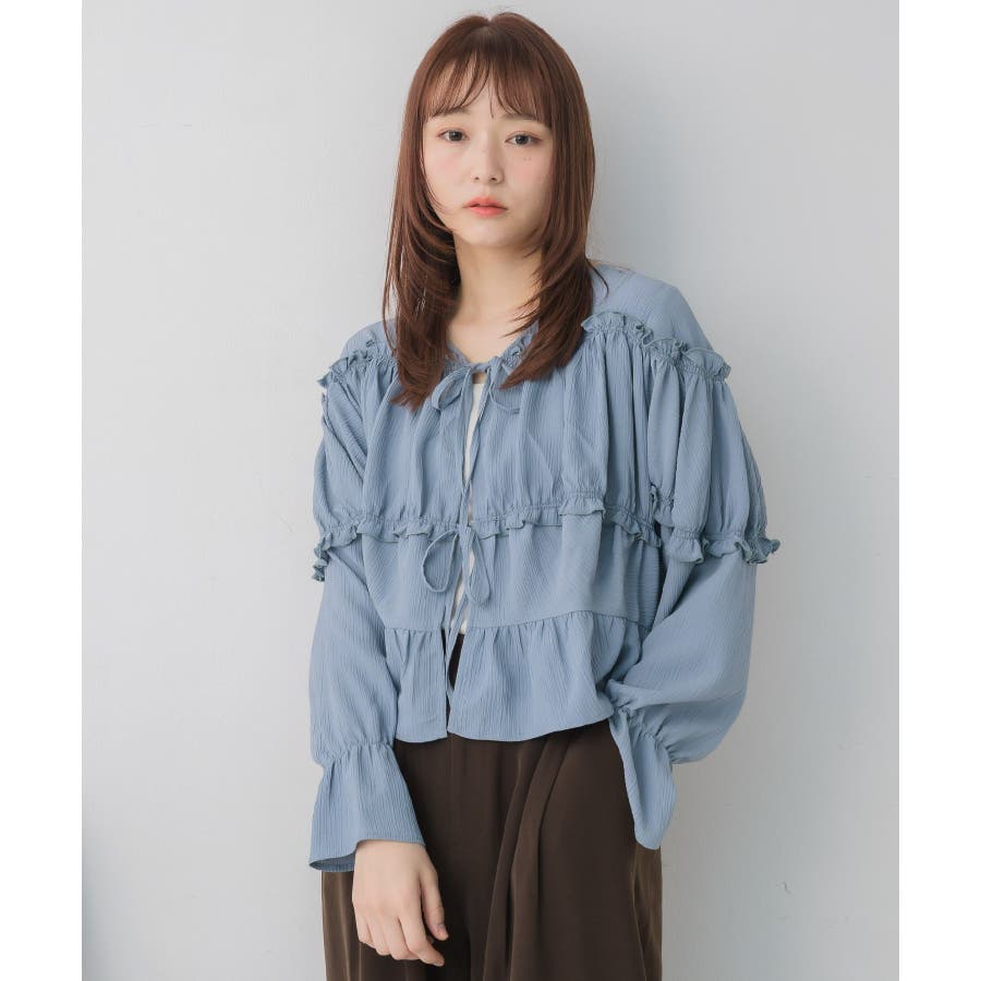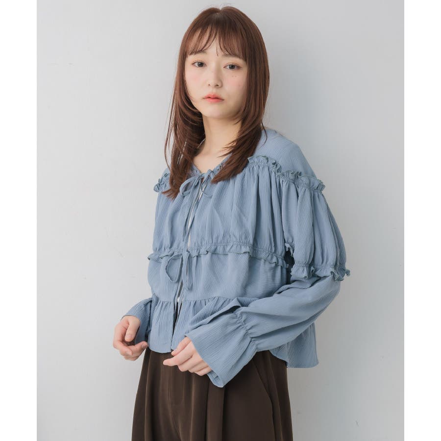 <ティアードシルエットとフリルが可愛い春見えブラウス>▼デザインフロント部分に2段のリボンデザインが可愛らしいブラウスアイテム。昨年も大人気を頂いたデザインが春らしいカラーで再登場♪肩部分や腕部分のも控えめなフリルがデザインされていて、女性らしい雰囲気漂う1枚。ティアードのような何段かに切り替えられているデザインでシルエットも美しい◎▼コーディネートキャミワンピースの上に羽織ったり、マーメイドスカートの上に着ると、リボンブラウスにぴったりのガーリーコーデに!ボトムをカジュアルなパンツやデニムにしても、ブラウスが可愛らしさをプラスしてくれます。-----------------------------生地感:やや薄手伸縮性:なし透け感:なし裏地:なし------------------------------▼ブランド紹介RETRO GIRL (レトロガール)自分らしい“ベーシックアイテム”と新しい自分の”トレンドアイテム”が見つかる場所今らしいファッションを楽しむ女性のためのブランド#ブラウス #ブラウスコーデ#ブラウスアイテム #フリル #春コーデ #フロントリボン #ブルー ▼注意事項※撮影環境やモニター環境によって実際の商品とお色味が 多少異なってみえる場合がございます。品番:RP638023T001 / 品名:フリル切替リボンBL