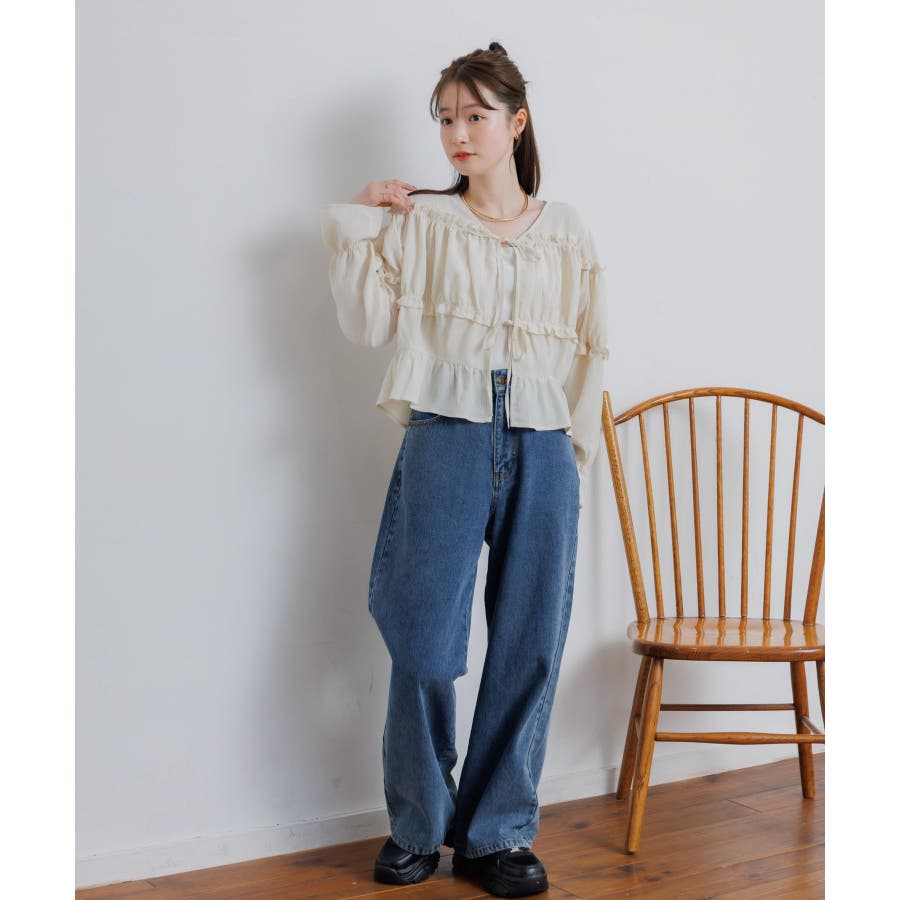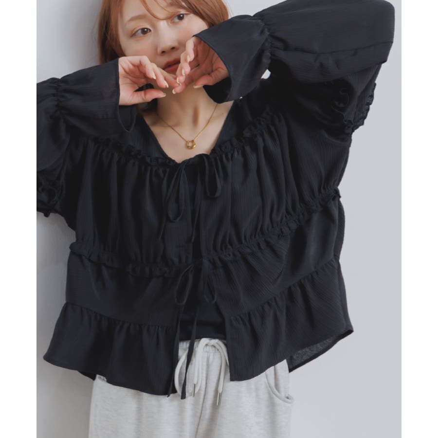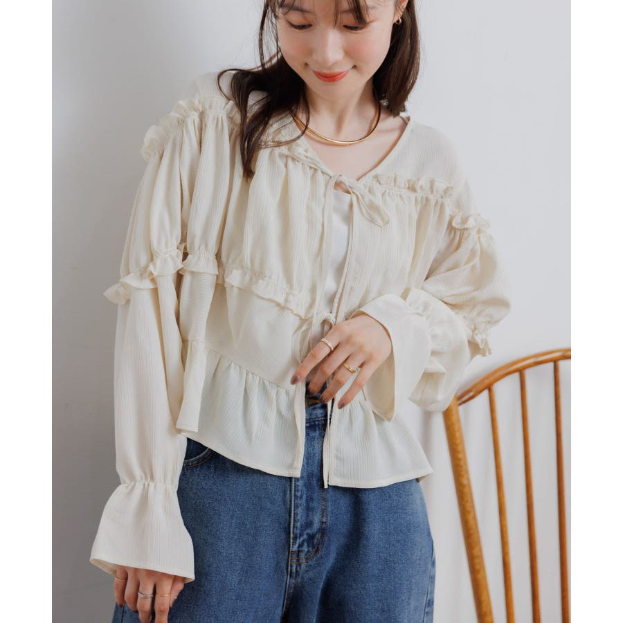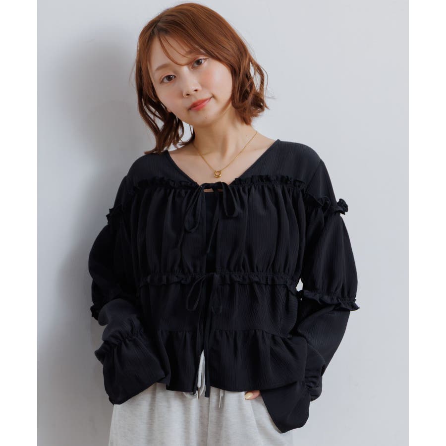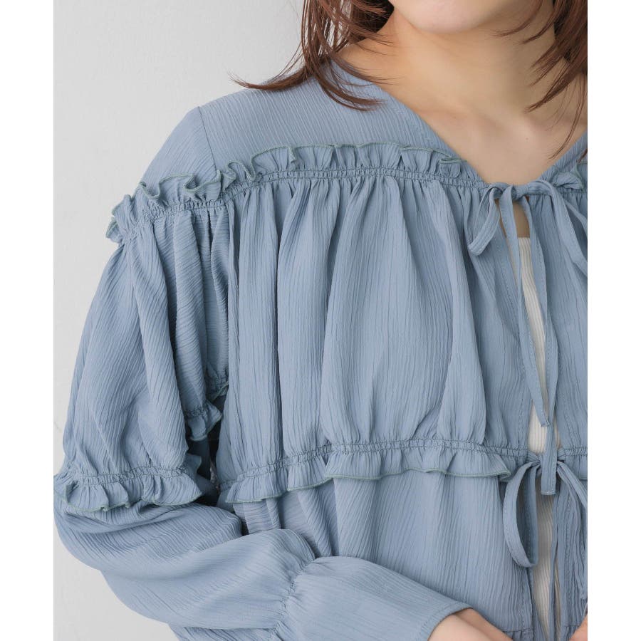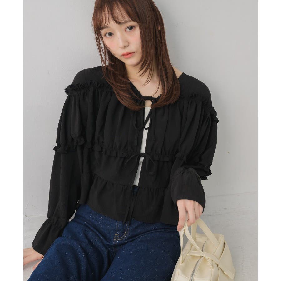 <ティアードシルエットとフリルが可愛い春見えブラウス>▼デザインフロント部分に2段のリボンデザインが可愛らしいブラウスアイテム。昨年も大人気を頂いたデザインが春らしいカラーで再登場♪肩部分や腕部分のも控えめなフリルがデザインされていて、女性らしい雰囲気漂う1枚。ティアードのような何段かに切り替えられているデザインでシルエットも美しい◎▼コーディネートキャミワンピースの上に羽織ったり、マーメイドスカートの上に着ると、リボンブラウスにぴったりのガーリーコーデに!ボトムをカジュアルなパンツやデニムにしても、ブラウスが可愛らしさをプラスしてくれます。-----------------------------生地感:やや薄手伸縮性:なし透け感:なし裏地:なし------------------------------▼ブランド紹介RETRO GIRL (レトロガール)自分らしい“ベーシックアイテム”と新しい自分の”トレンドアイテム”が見つかる場所今らしいファッションを楽しむ女性のためのブランド#ブラウス #ブラウスコーデ#ブラウスアイテム #フリル #春コーデ #フロントリボン #ブルー ▼注意事項※撮影環境やモニター環境によって実際の商品とお色味が 多少異なってみえる場合がございます。品番:RP638023T001 / 品名:フリル切替リボンBL