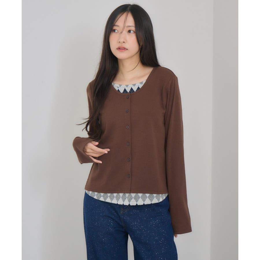 <1枚でレイヤードコーデが叶う春素材カーディガン>▼デザイン柄のカットソーとカーディガンがレイヤードされたデザインのカーデアイテム。フェイクレイヤードなので取外しはできず、バラバラになる心配もなく安心◎軽い着心地でこれから暖かくなる春の気温にピッタリ♪インナーの柄もアクセントになり、おしゃれ感がUPする1枚です。▼コーディネートシンプルにデニムで合わせてもレイヤード見えスタイルで奥行きのあるコーデに。スウェットパンツやカーゴパンツでカジュアルなボトムと相性バッチリ◎-----------------------------生地感:普通伸縮性:あり透け感:なし裏地:なし------------------------------▼ブランド紹介RETRO GIRL (レトロガール)自分らしい“ベーシックアイテム”と新しい自分の”トレンドアイテム”が見つかる場所今らしいファッションを楽しむ女性のためのブランド#クルーネック #レイヤード #カーディガン #フェイクレイヤード #柄アイテム ▼注意事項※撮影環境やモニター環境によって実際の商品とお色味が多少異なってみえる場合がございます。品番:RP641511T001 / 品名:Fレイヤードクルーネックカーデ