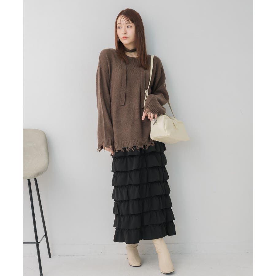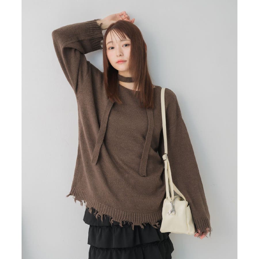 <ダメージ感がカジュアルなチュニックニット>▼デザイン今年らしいタイがセットになったチュニックニット♪裾や袖口のダメージがかっこいいアクセントに。タイ付なので首回りもしっかり華やかに◎着丈が長めのチュニック丈なので、ヒップラインまでしっかりカバー◎▼コーディネートチュニックで着丈が長いので、ショートパンツ合わせで、ニットワンピのように着ていただくのもおすすめ!デニムやスウェットパンツでカジュアルに合わせる場合は、ニット帽やキャップなどの小物と相性抜群です♪------------------------------生地感:普通伸縮性:あり透け感:なし裏地:なし-----------------------------#ニット #ニットコーデ #タイセット #ダメージデザイン #チュニック #チュニックニット▼注意事項※撮影環境やモニター環境によって実際の商品とお色味が 多少異なってみえる場合がございます。品番:RP641512T002 / 品名:タイ付きチュニックNT