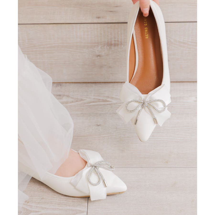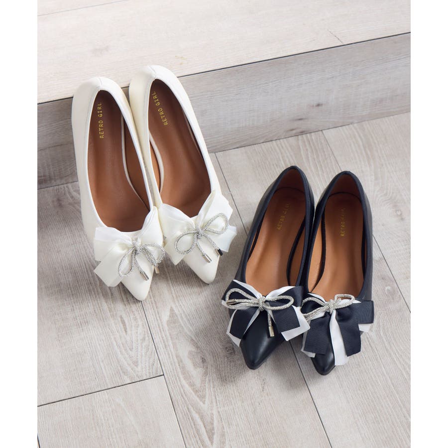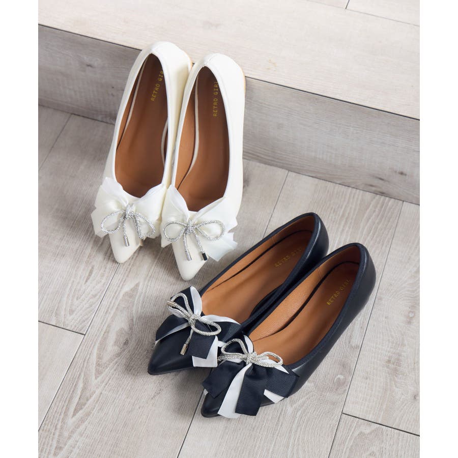 <ゴージャスなデザインで足元から華やかに♪>▼デザイン春のシューズで定番のパンプスアイテム。キラキラ輝くリボンがフロント部分に施され、存在感たっぷり。フェミニンコーデやオケージョンワンピースと相性バッチリ!▼コーディネートワンピースやロングスカートと合わせの良いアイテム!デニムパンツに合わせることで一気に大人っぽく履いて頂けます。▼ブランド紹介RETRO GIRL (レトロガール)自分らしい“ベーシックアイテム”と新しい自分の”トレンドアイテム”が見つかる場所今らしいファッションを楽しむ女性のためのブランド#フレンチガーリー #バレエシューズ #フラットシューズ #パンプスアイテム #パンプス #リボンパンプス #オケージョンアイテム▼注意事項※撮影環境やモニター環境によって実際の商品とお色味が多少異なってみえる場合がございます。品番:RP653242G001 / 品名:リボンパンプス