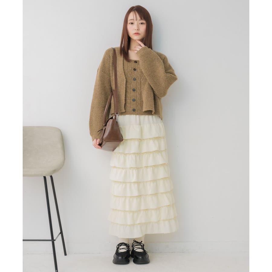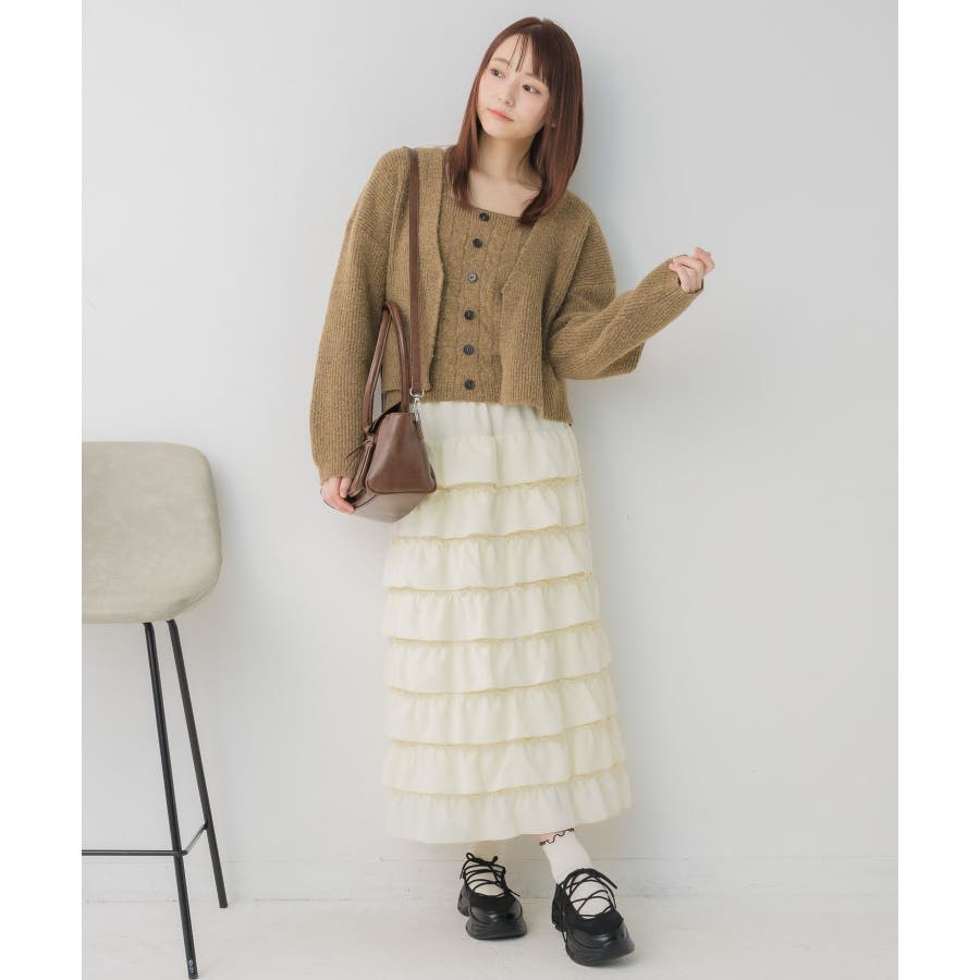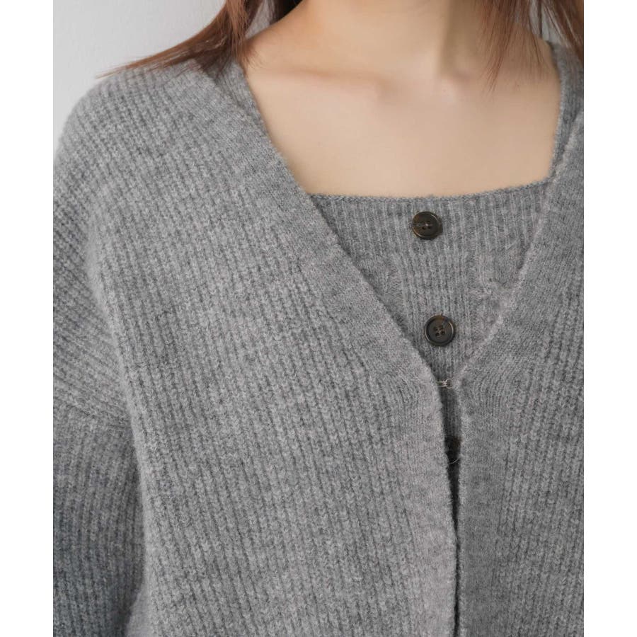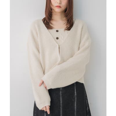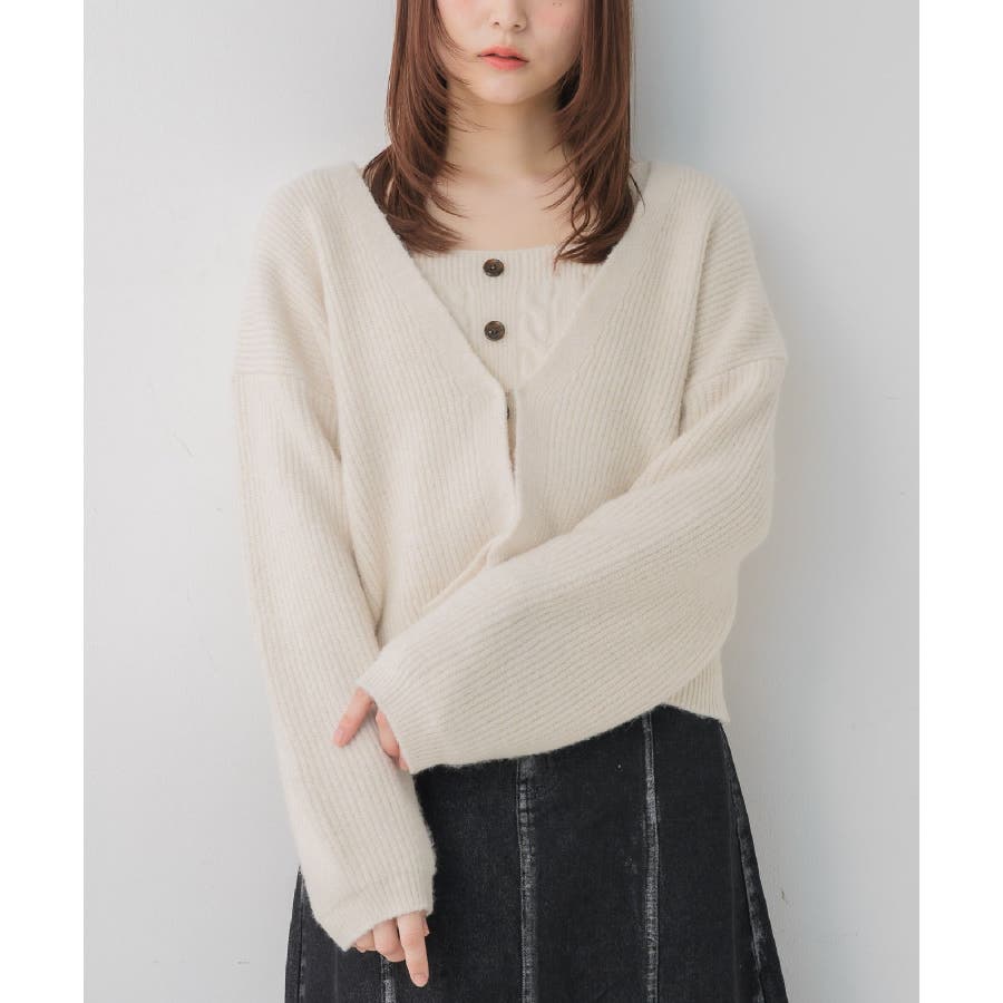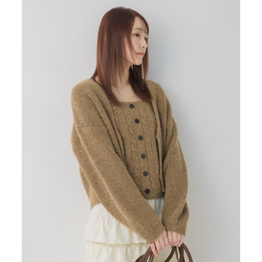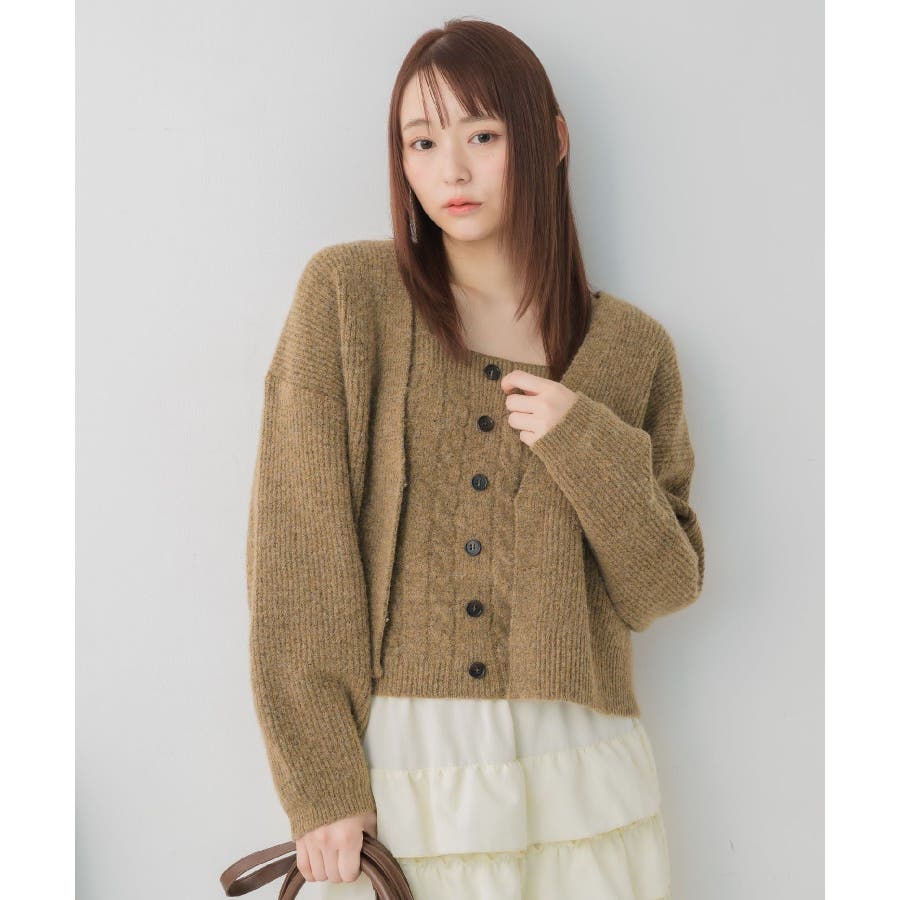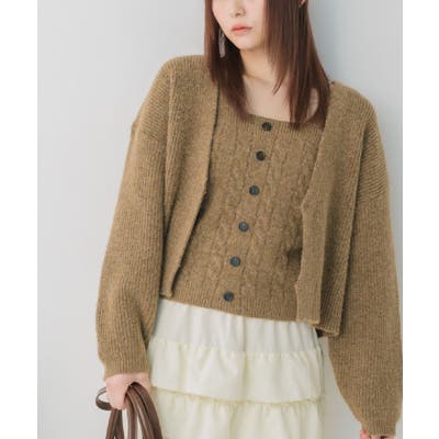 <大人可愛いが叶うケーブルデザインのセットアイテム>▼デザイン大人気のセットアイテムから新作が登場!冬らしいケーブル編みのニットキャミソールと、カーディガンのセットです。キャミソールにはフロント部分に釦デザインが施されていて、開けても可愛いワンポイントに。カーディガンはフックで簡単に開け閉めできるので、羽織スタイルでキャミソールのデザインを見せるのもおすすめ♪▼コーディネートセットでコーデが決まるアイテム!まだ寒い時期にはリブニットの上にカーディガンを羽織れば今から活用できます◎▼セット内容・カーディガン・キャミソール------------------------------生地感:インナー:普通 カーディガン:普通伸縮性:インナー:ある カーディガン:ある透け感:インナー:なし カーディガン:なし裏地:なし------------------------------▼ブランド紹介RETRO GIRL (レトロガール)自分らしい“ベーシックアイテム”と新しい自分の”トレンドアイテム”が見つかる場所今らしいファッションを楽しむ女性のためのブランド#カーディガン #キャミソール #キャミ #セットアイテム #インナー #ケーブル編み #ケーブルニット▼注意事項※撮影環境やモニター環境によって実際の商品とお色味が 多少異なってみえる場合がございます。品番:RP656412T005 / 品名:ケーブルNTアンサンブル