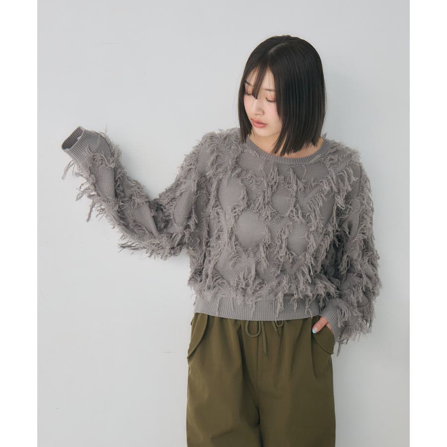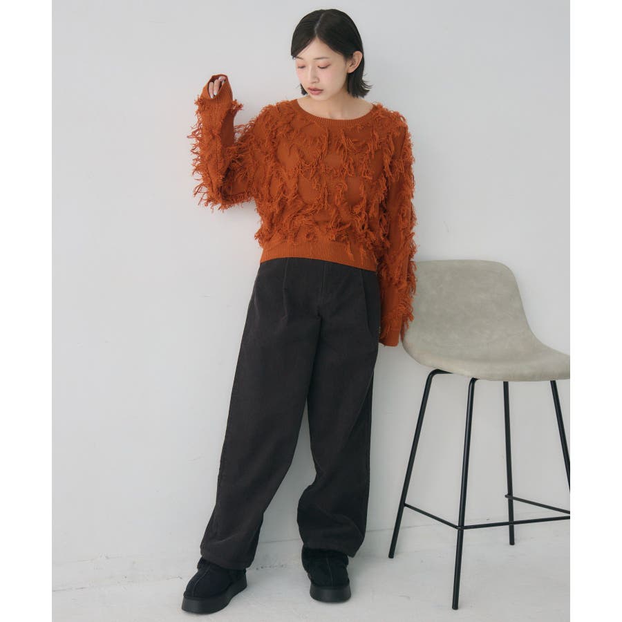 <軽い着心地で春と冬が共存するフリンジニット>▼デザインもけもけしたフリンジデザインが目を惹くニット。今年の冬大人気を頂いたフリンジニットから新作が登場です。軽い素材と着心地で、春先までジャストな気温で着用して頂けます。コンパクトな丈感で、ボトムを活かしたスタイリングが叶う1枚です。▼コーディネート1枚で存在感たっぷりのニットアイテム。デザイン性がありながらも、柄などはないため、ボトムに柄アイテムを取り入れてもOKです。カラーバリエーションも豊富で、オレンジは最も個性の出せるおすすめカラー♪------------------------------生地感:普通伸縮性:ある透け感:なし裏地:なし------------------------------▼ブランド紹介RETRO GIRL (レトロガール)自分らしい“ベーシックアイテム”と新しい自分の”トレンドアイテム”が見つかる場所今らしいファッションを楽しむ女性のためのブランド#春コーデ #春アイテム #ニット #フリンジニット #フリンジ #フリンジアイテム #冬コーデ #冬ニット▼注意事項※撮影環境やモニター環境によって実際の商品とお色味が多少異なってみえる場合がございます。品番:RP656412T006 / 品名:柄編みフリンジNT