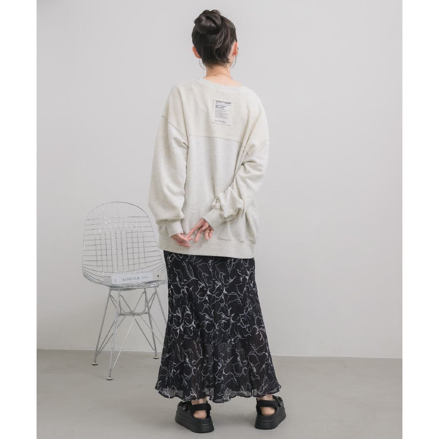 <裏地デザインになってるカジュアルトレーナー>▼デザイン表地と裏地で切替デザインになっているトレーナーアイテム。大き目シルエットで、体型カバーも可能です◎後ろに小さくデザインされたロゴパッチもかっこいいアクセントに。春気温にぴったりなアイテムなので、これから重宝しそう!▼コーディネート裏地使いがカジュアルなデザインなので、デニムやスウェットパンツと合わせるのがおすすめ!フリルスカート合わせで甘めスタイルも◎-----------------------------生地感:普通伸縮性:ある透け感:なし裏地:なし------------------------------▼ブランド紹介RETRO GIRL (レトロガール)自分らしい“ベーシックアイテム”と新しい自分の”トレンドアイテム”が見つかる場所今らしいファッションを楽しむ女性のためのブランド#切替デザイン #トレーナー #カジュアル #裏地デザイン #パッチ▼注意事項※撮影環境やモニター環境によって実際の商品とお色味が多少異なってみえる場合がございます。品番:RP657111C006 / 品名:切替BIGトレーナー