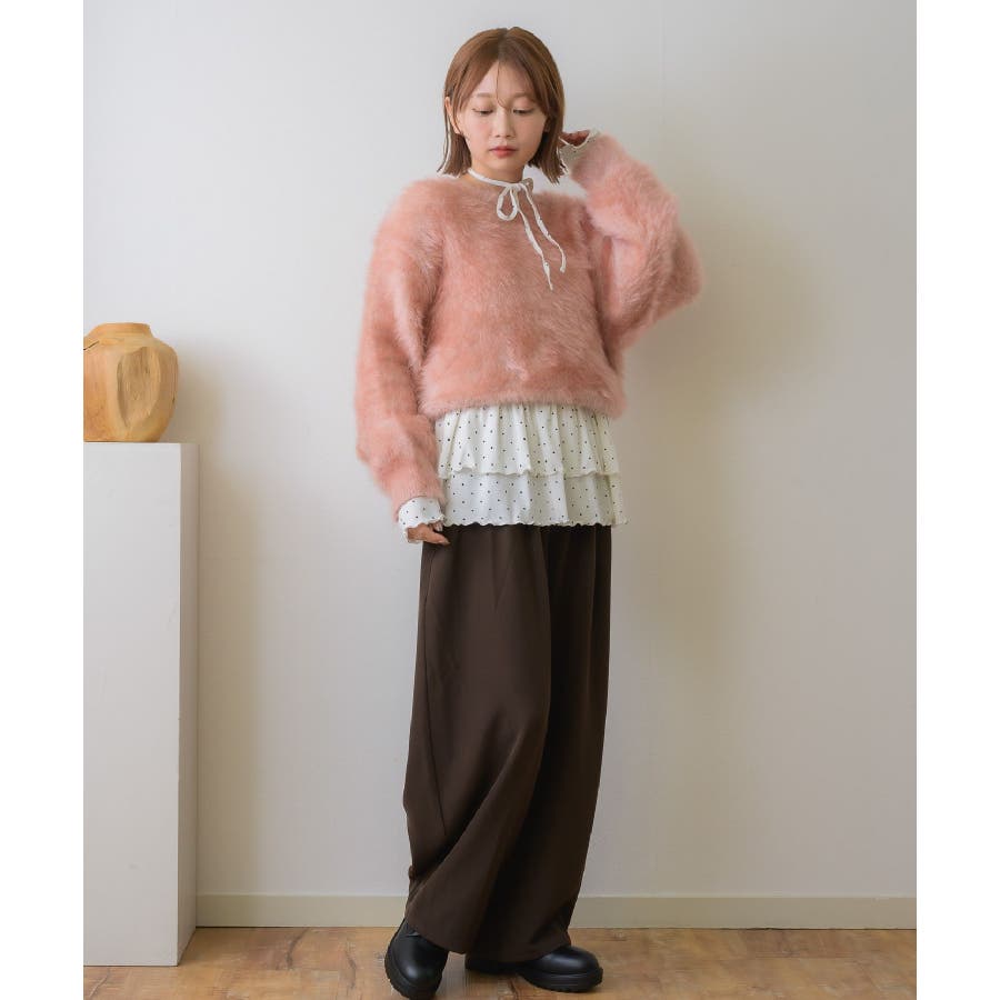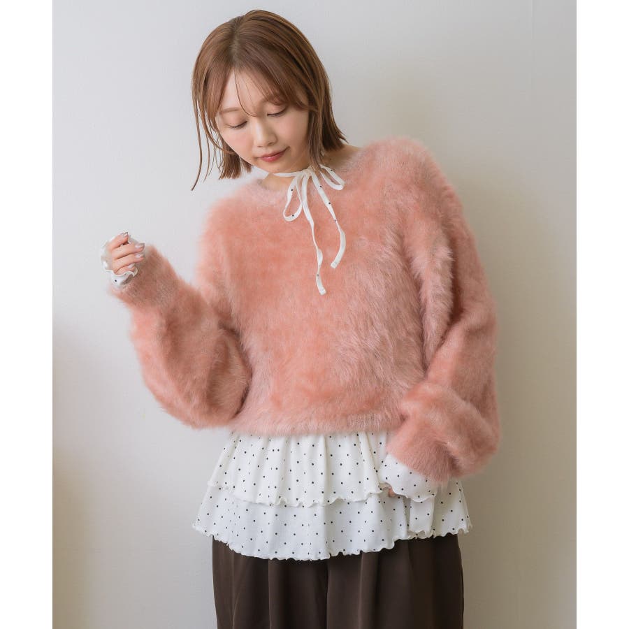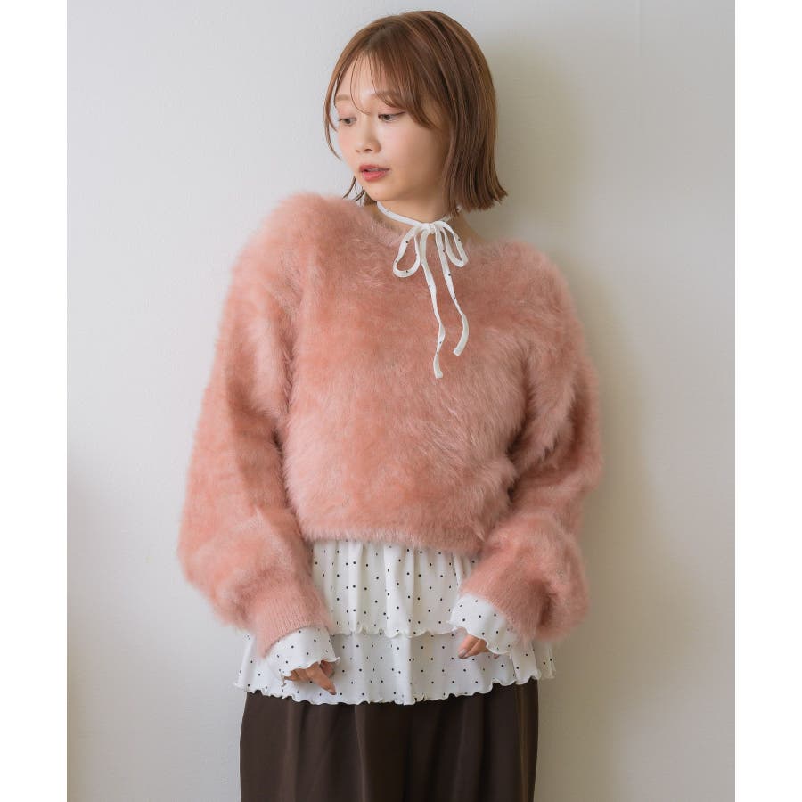<ふわふわ素材が愛らしいWinterニット>▼デザインふわふわの見た目で女性らしさを演出するニットトップスフェザー素材は毛足も長くとても暖かいので、防寒力がの高さも嬉しいポイント♪中にはラメもMIXされているので、存在感ある1枚。着丈もコンパクトで、インスタイルも楽しんで頂けます。▼コーディネートボトムスはスカート/パンツ問わずに合わせられるジャスト丈!裾フリルカットソーを中に着込むと裾からフリルが出て可愛いですよ♪ピンクのカラーは女性らしくデートにぴったりなモテコーデに◎------------------------------生地感:普通伸縮性:ある透け感:なし裏地:なし-----------------------------▼ブランド紹介RETRO GIRL (レトロガール)自分らしい“ベーシックアイテム”と新しい自分の”トレンドアイテム”が見つかる場所今らしいファッションを楽しむ女性のためのブランド#ガーリーニット #シャギーニット #ニットプルオーバー#甘めニット #ラメニット #ニット #シャギーニット▼注意事項※撮影環境やモニター環境によって実際の商品とお色味が 多少異なってみえる場合がございます。品番:RP657112B001 / 品名:ラメフェザーNTPO