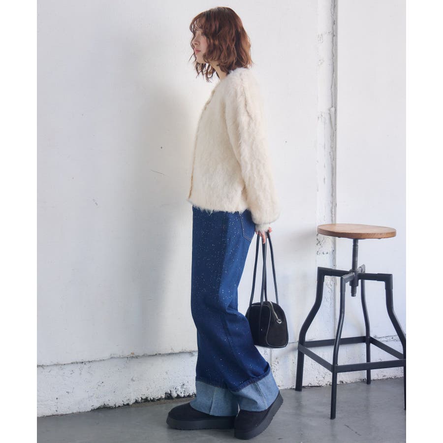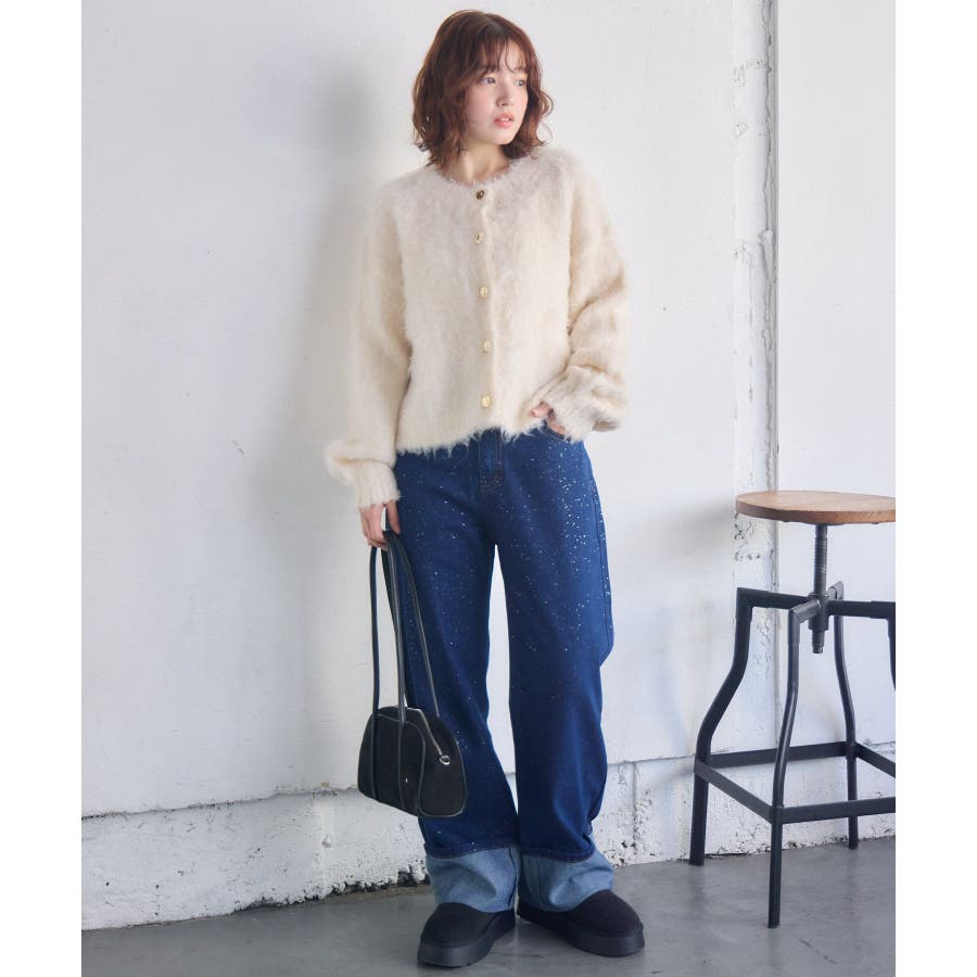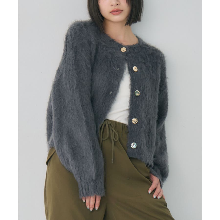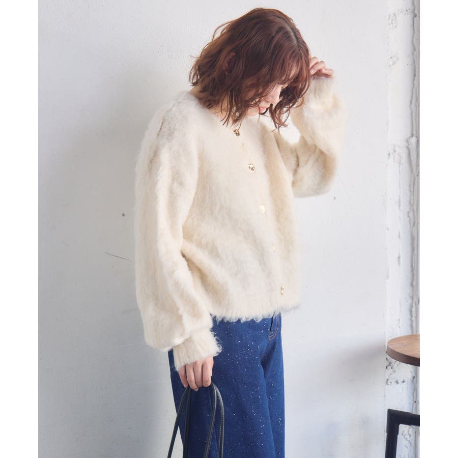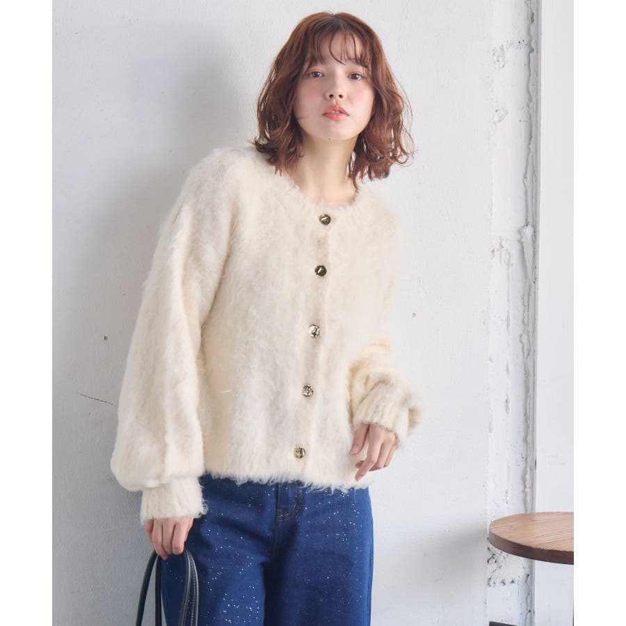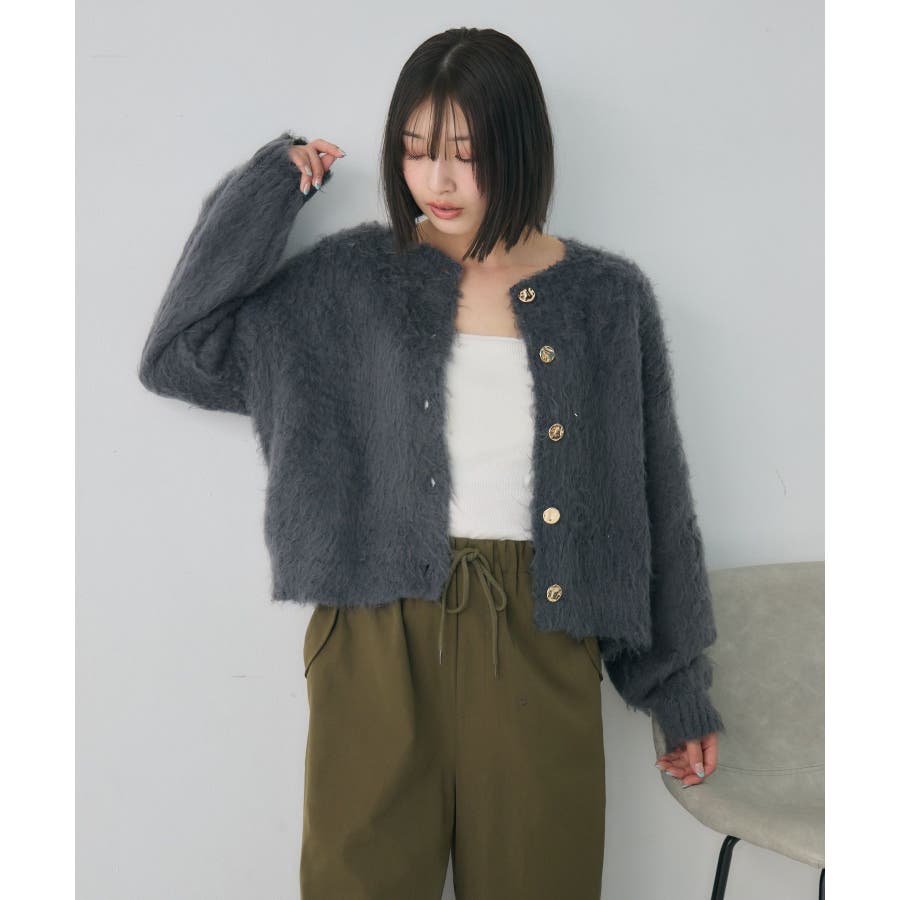 カール起毛ニットカーデ