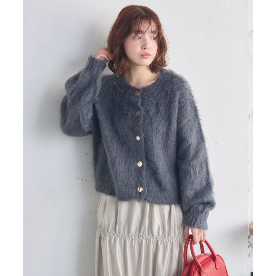 〈デザイン釦で甘く可愛いカーディガン〉▼デザイントレンド感ある起毛素材のニットカーディガン!カールする糸で表面感もあり、モコモコした触り心地。フロントボタンがウェーブデザインで、目を惹くデザインに。昨年より着丈も少し長めになり、体型カバーもしやすくなりました。▼コーディネート大きく開いた首回りを利用して、中に襟デザインのブラウスを重ね着するのもおすすめ!カラーによってイメージがガラリと変わるので、カジュアルコーデも甘めコーデも楽しんで頂けます。------------------------------生地感:やや厚手伸縮性:ある透け感:なし裏地:なし------------------------------▼ブランド紹介RETRO GIRL (レトロガール)自分らしい“ベーシックアイテム”と新しい自分の”トレンドアイテム”が見つかる場所今らしいファッションを楽しむ女性のためのブランド#カール起毛 #起毛 #起毛ニット #ニットカーディガン #ゴールドボタン #冬コーデ #ブルーコーデ▼注意事項※撮影環境やモニター環境によって実際の商品とお色味が 多少異なってみえる場合がございます。品番:RP657112T001 / 品名:カール起毛ニットカーデ