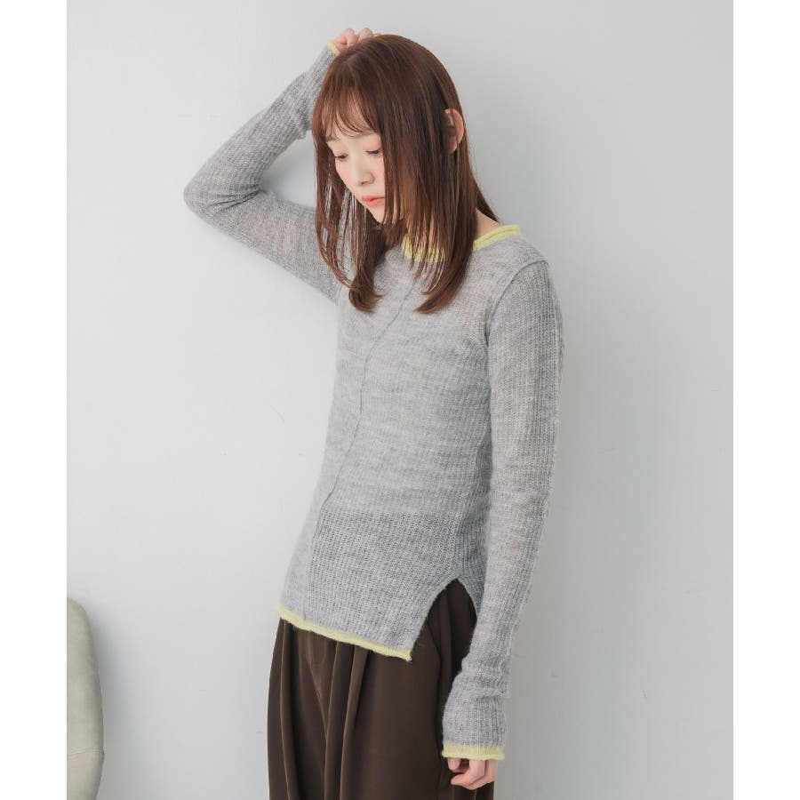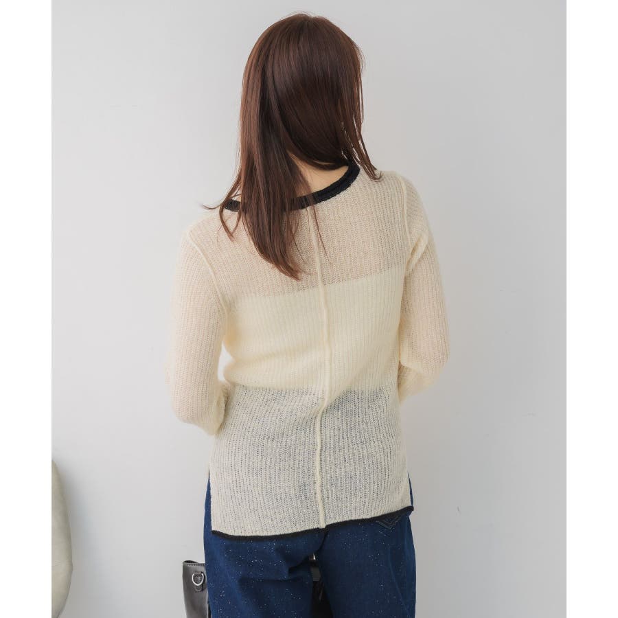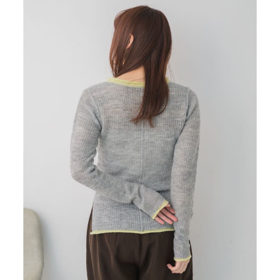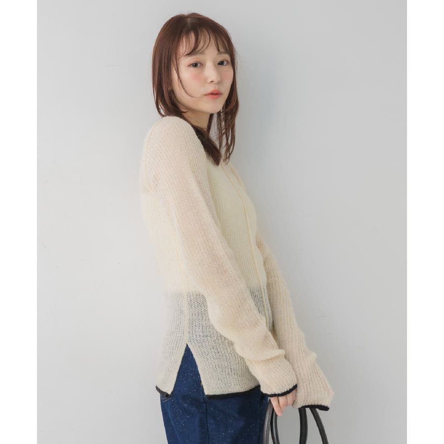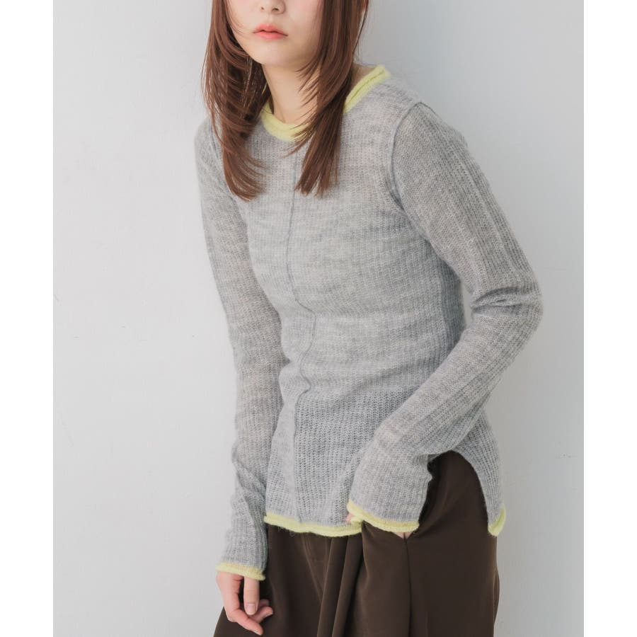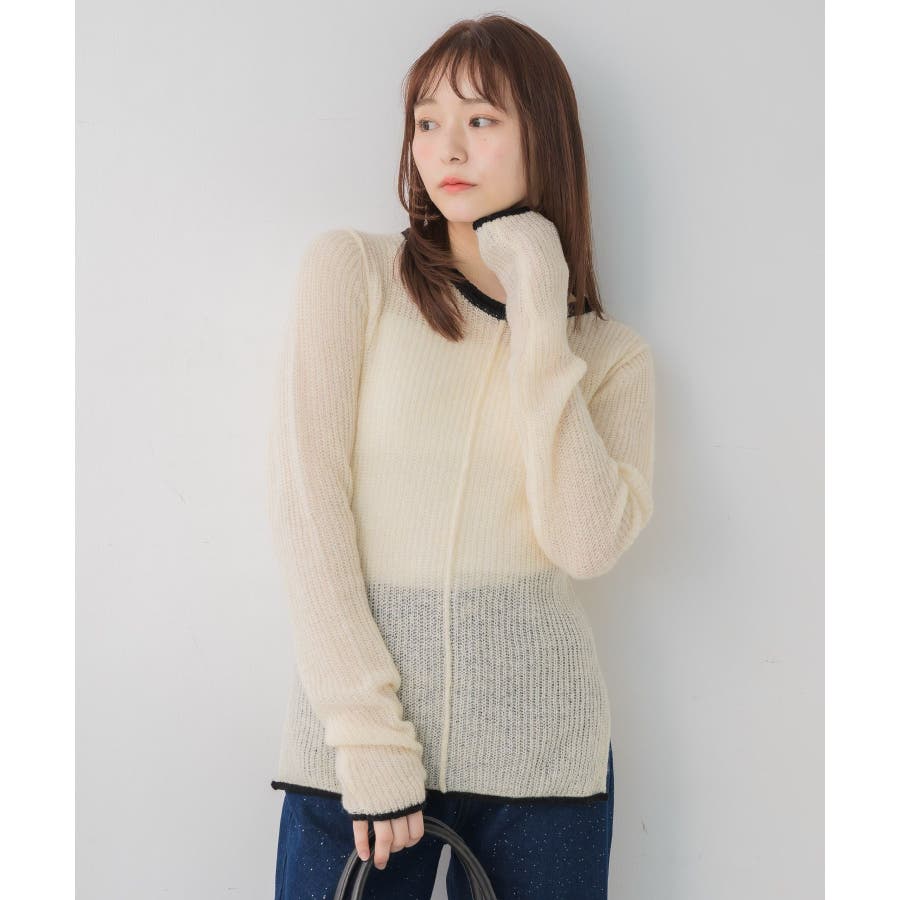 <インナー使いもメイン使いも可能なデザインニット>▼デザイン春気温にピッタリな薄手のシアーニット1枚ではもちろん、インナーとしても大活躍間違いなし◎首回りや袖口、裾にカラー配色が採用されているので、1枚でしっかりオシャレ見え。程よい着丈でインスタイルもアウトスタイルもどちらでも綺麗に着こなせます。▼コーディネートトップスとしてはもちろん、ワンピースやベストなどのインナーとしても活躍する万能インナー!ジャケットにインナーに選べば大人っぽいスタイリッシュなスタイルにも◎------------------------------生地感:薄手伸縮性:あり透け感:あり裏地:なし------------------------------▼ブランド紹介RETRO GIRL (レトロガール)自分らしい“ベーシックアイテム”と新しい自分の”トレンドアイテム”が見つかる場所今らしいファッションを楽しむ女性のためのブランド#シアー #インナー #ニットインナー #レイヤードアイテム #シアーニット▼注意事項※撮影環境やモニター環境によって実際の商品とお色味が 多少異なってみえる場合がございます。品番:RP657112T006 / 品名:アウトリンキングシアーNT
