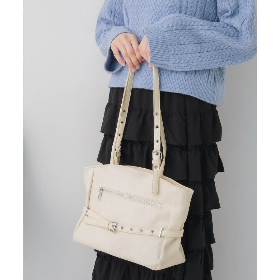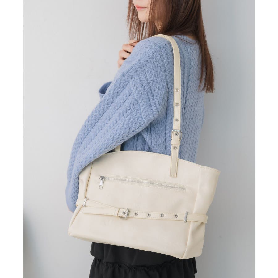 〈ベルトデザインがアクセントになるカジュアルトート〉▼デザインレザー素材を使用した、カジュアルな印象のトートバッグ。ベルトデザインがアクセントになり、シンプルなコーデに取り入れるだけでこなれた雰囲気に仕上がります♪外側1つ・内側2つのポケット付きで、実用性の高さも魅力◎持ち手はサイズ調節が可能で、スタイルに合わせて持ち方を変えられるのも嬉しいポイント!▼コーディネートA4サイズが入るので、通勤・通学コーデにぴったり。きれいめなスタイルに合わせるなら柔らかい印象のホワイトがおすすめ!▼ブランド紹介RETRO GIRL (レトロガール)自分らしい“ベーシックアイテム”と新しい自分の”トレンドアイテム”が見つかる場所今らしいファッションを楽しむ女性のためのブランド#バッグ #トートバッグ #レザーバッグ #カジュアルコーデ▼注意事項※撮影環境やモニター環境によって実際の商品とお色味が 多少異なってみえる場合がございます。品番:RP661243T002 / 品名:ベルトデザイントート