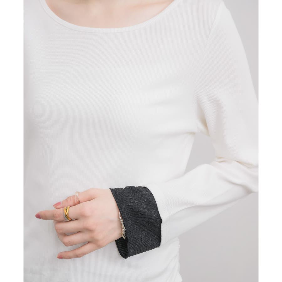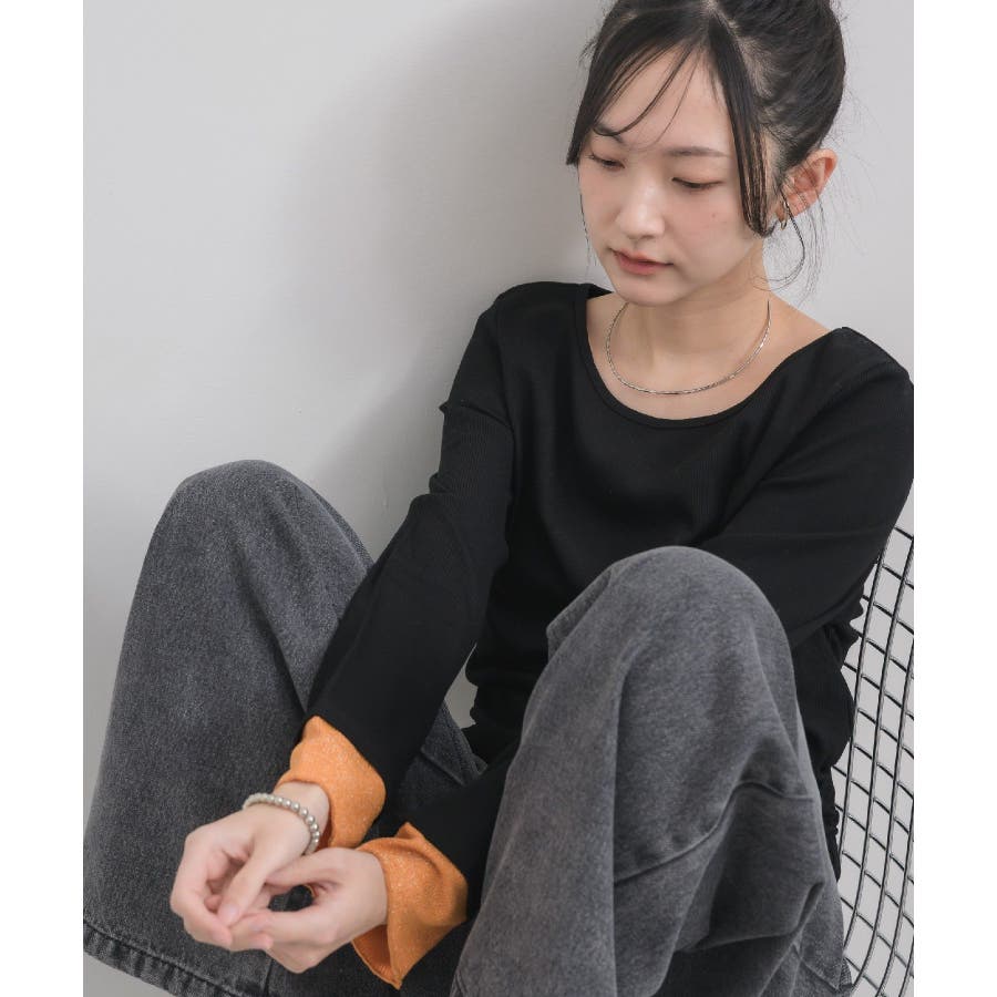 <インナー使いにピッタリなジャガードカットソー>▼デザイン袖口だけラメデザインに切り替えが入ったインナーアイテムラメを出すことで、レイヤードコーデが、もっと楽しくなること間違いなし!バイカラーにデザインなので、コーデのアクセントに取り入れるのもおすすめ!▼コーディネート上からトレーナーをレイヤードして、袖口のラメを出すことで、抜け感のあるコーデに!ビスチェやキャミワンピースのインナーにセレクトするのも◎-----------------------------生地感:薄手伸縮性:あり透け感:あり裏地:なし------------------------------▼ブランド紹介RETRO GIRL (レトロガール)自分らしい“ベーシックアイテム”と新しい自分の”トレンドアイテム”が見つかる場所今らしいファッションを楽しむ女性のためのブランド#インナーアイテム #ラメ #カットソー #レイヤード #レイヤードコーデ▼注意事項※撮影環境やモニター環境によって実際の商品とお色味が多少異なってみえる場合がございます。品番:RP680012N001 / 品名:ラメ袖ドッキングCT
