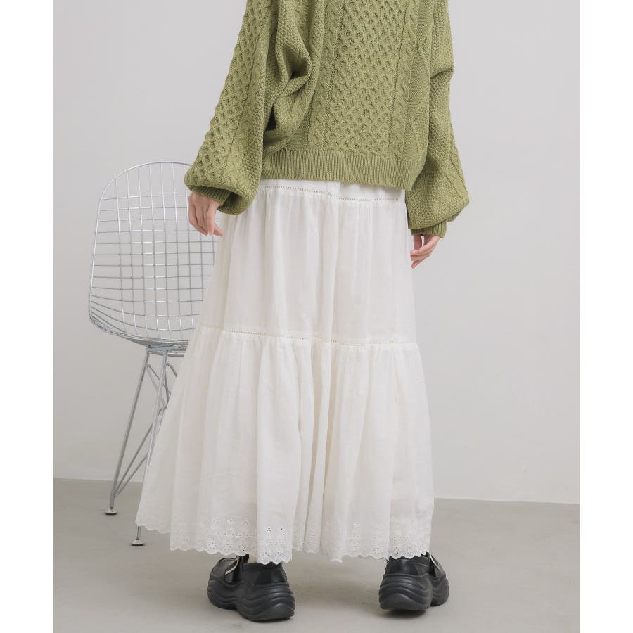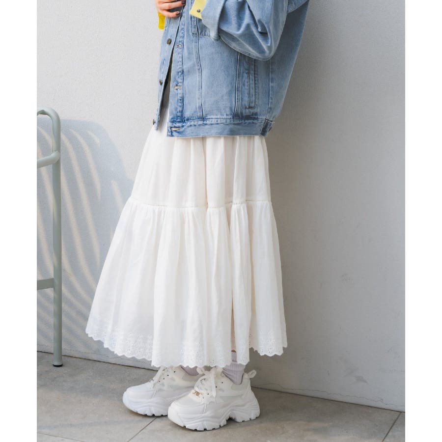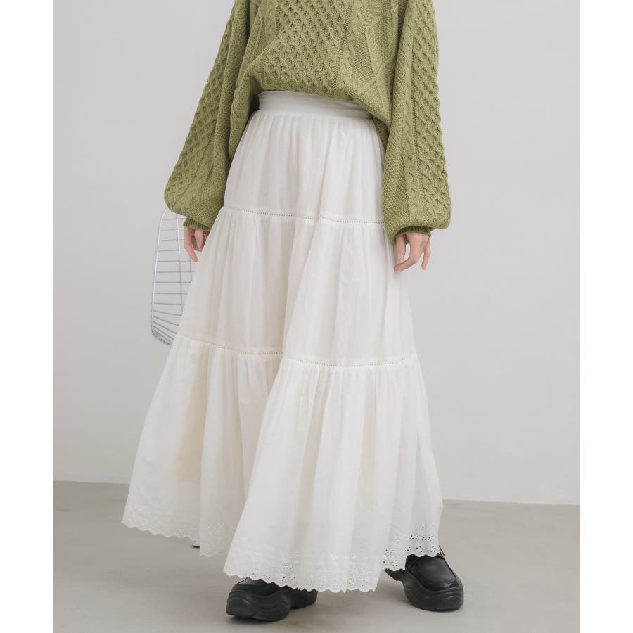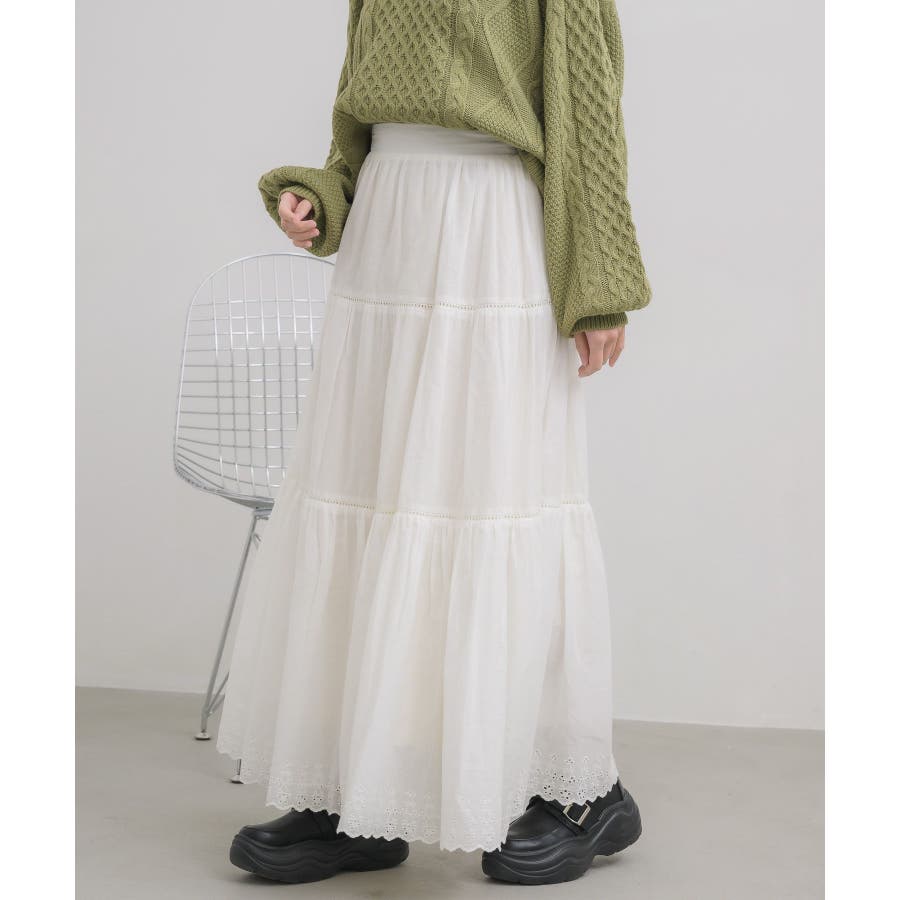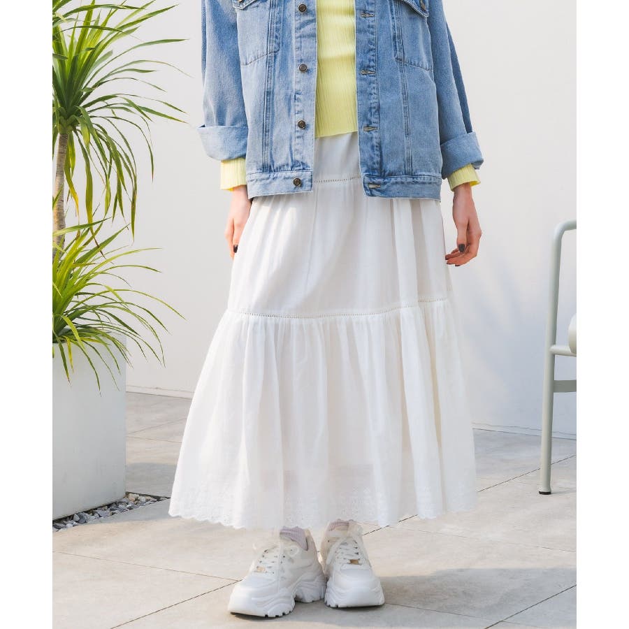 <柔らかいレース素材の夏らしいマキシ丈スカート>▼デザイン優しいコットン素材のフレアスカート。膝上部分で切替デザインが施されていて、そこからふわっと広がるAラインシルエット。裾部分はレース素材で、程よい透け感が可愛い♪夏のひまわり畑に着て行きたいような無垢でピュアな印象のアイテム。▼コーディネートガーリーなブラウスと合わせてとことんガーリーに◎ギンガムチェックのトップスと合わせれば夏のデートコーデが完成!------------------------------生地感:普通伸縮性:なし透け感:裾部分ややある裏地:ある------------------------------▼ブランド紹介RETRO GIRL (レトロガール)自分らしい“ベーシックアイテム”と新しい自分の”トレンドアイテム”が見つかる場所今らしいファッションを楽しむ女性のためのブランド#レース #夏スカート #切替 #マキシスカート #コットンスカート #デートコーデ▼注意事項※撮影環境やモニター環境によって実際の商品とお色味が 多少異なってみえる場合がございます。品番:RP680031T001 / 品名:コットンレースフレアSK