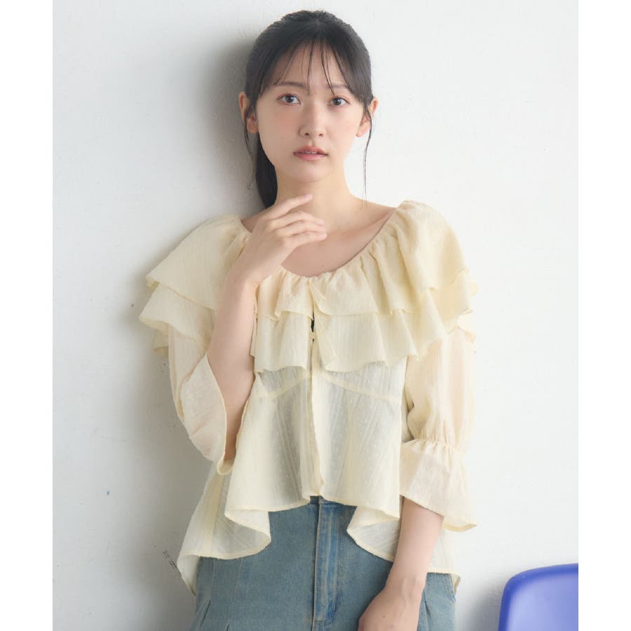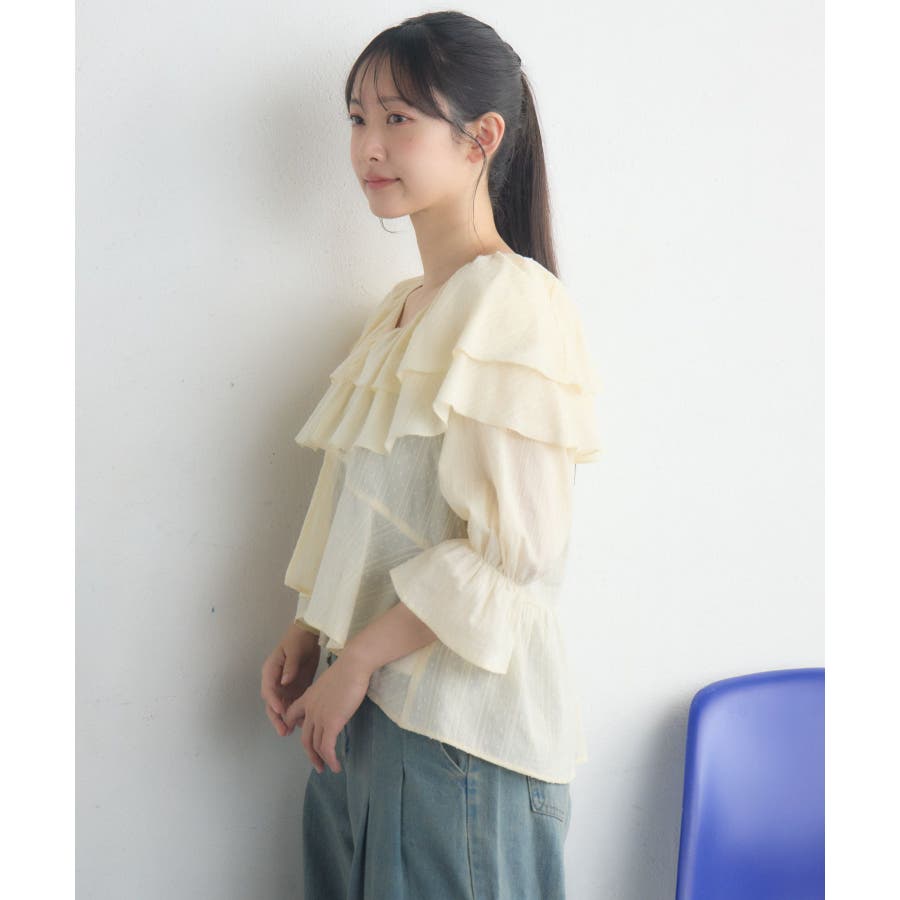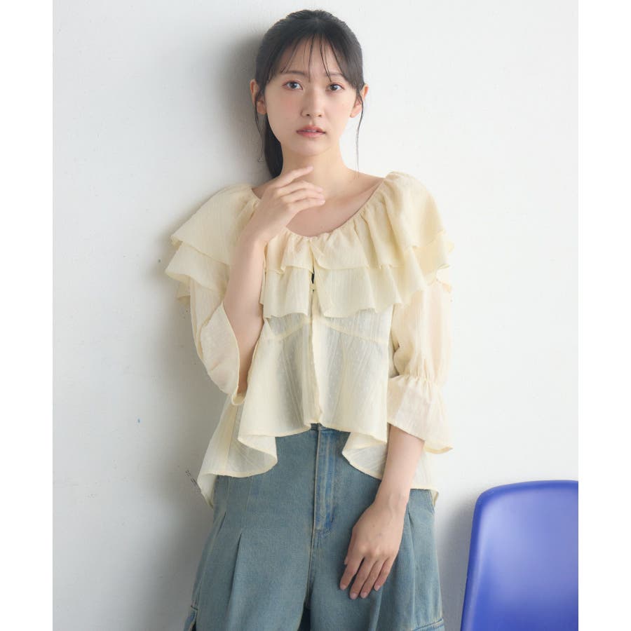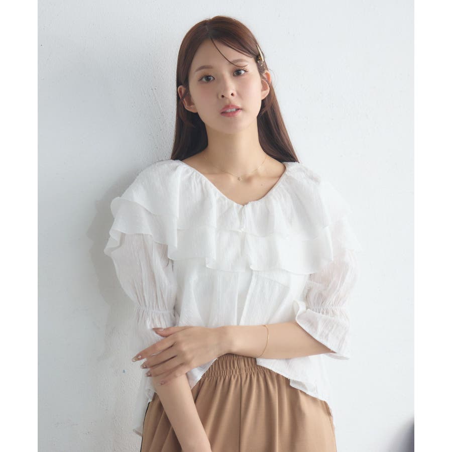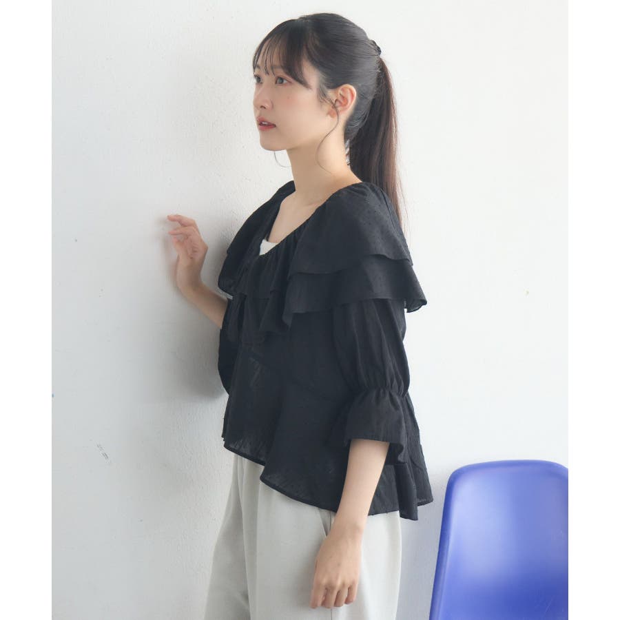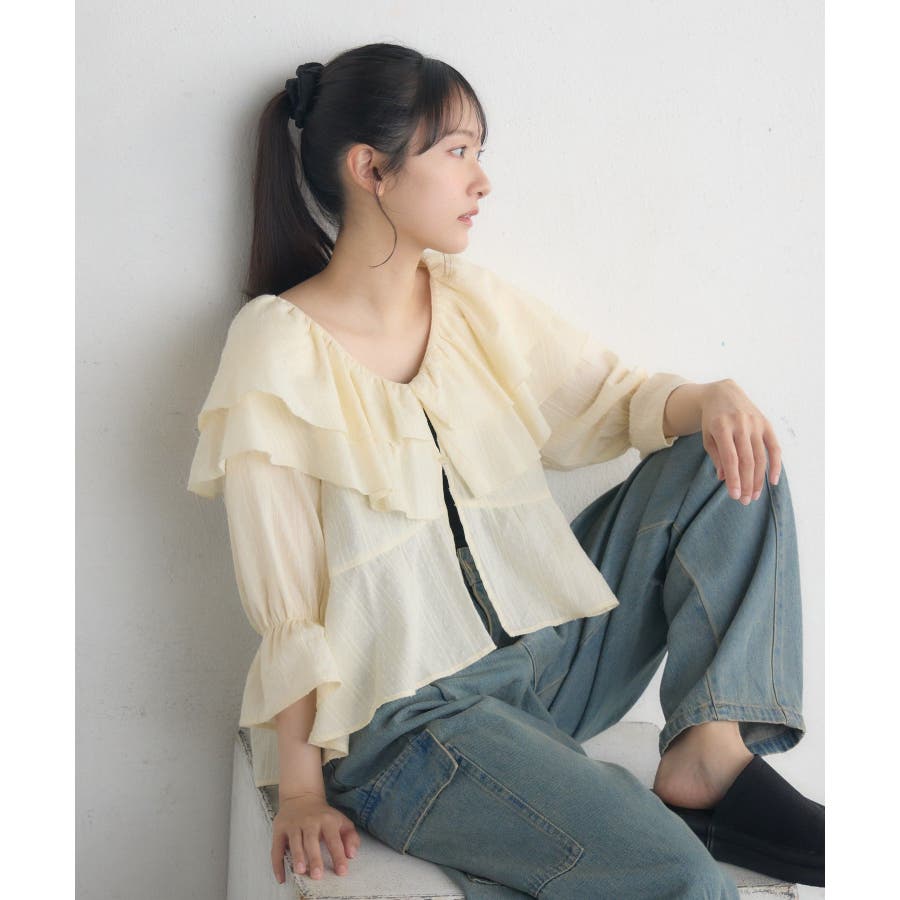 <豊富なカラーから選べる甘めなガーリーブラウス>▼デザインフリルたっぷりの甘めなブラウス。フロント部分はボタンで開け閉めできるので、羽織りスタイルで着るのも可愛い!今年トレンドのフリルブラウスは1枚は持っておきたいアイテム。袖口もキャンディスリーブでクシュっと絞られているので、袖口は広がって可愛い印象に♪▼コーディネートトップス使いをしたり、キャミの上に羽織ったり、いろんな着回しができます◎ボトムをカジュアルなパンツやデニムにしても、ブラウスが可愛らしさをプラスしてくれます。-----------------------------生地感:薄手伸縮性:なし透け感:あり裏地:なし------------------------------▼ブランド紹介RETRO GIRL (レトロガール)自分らしい“ベーシックアイテム”と新しい自分の”トレンドアイテム”が見つかる場所今らしいファッションを楽しむ女性のためのブランド#ブラウス #ブラウスコーデ#ブラウスアイテム #フリル #コットン素材 #フロントボタン▼注意事項※撮影環境やモニター環境によって実際の商品とお色味が 多少異なってみえる場合がございます。品番:RS537523B003 / 品名:コットンレース襟フリルBL