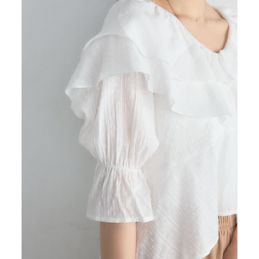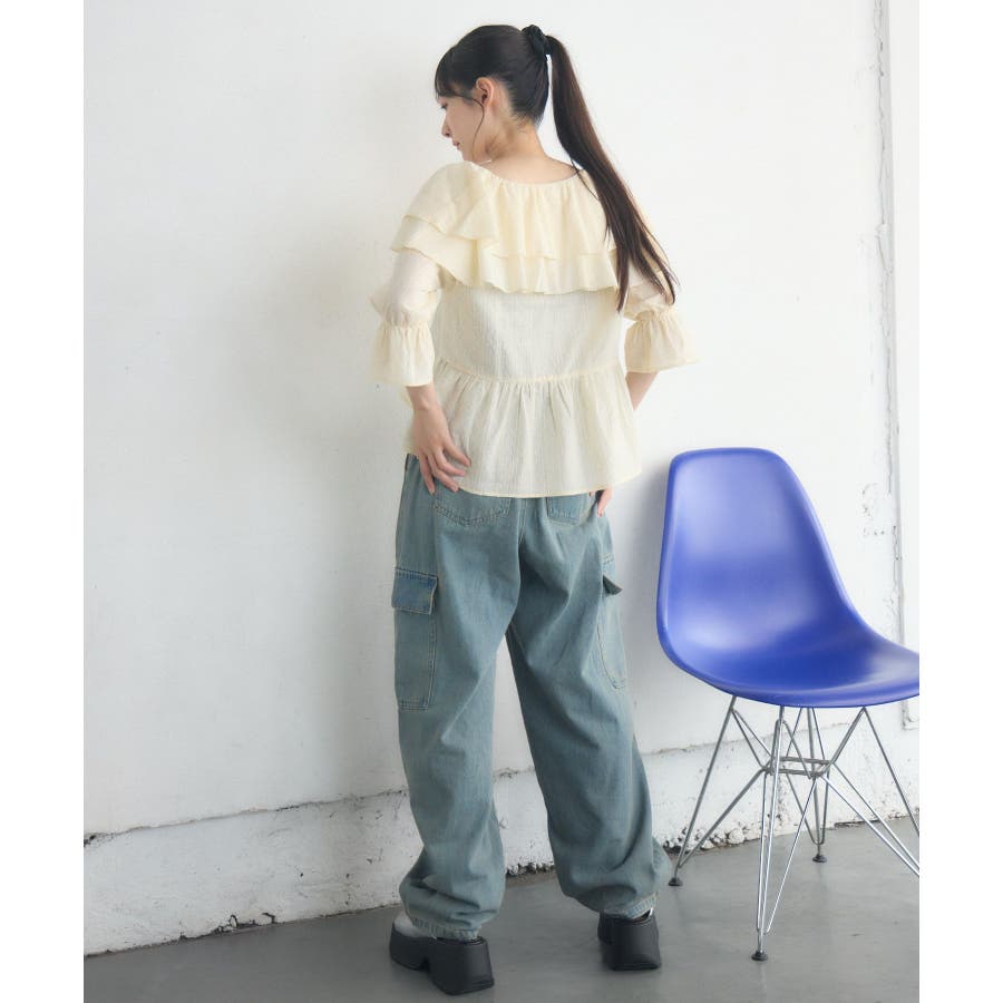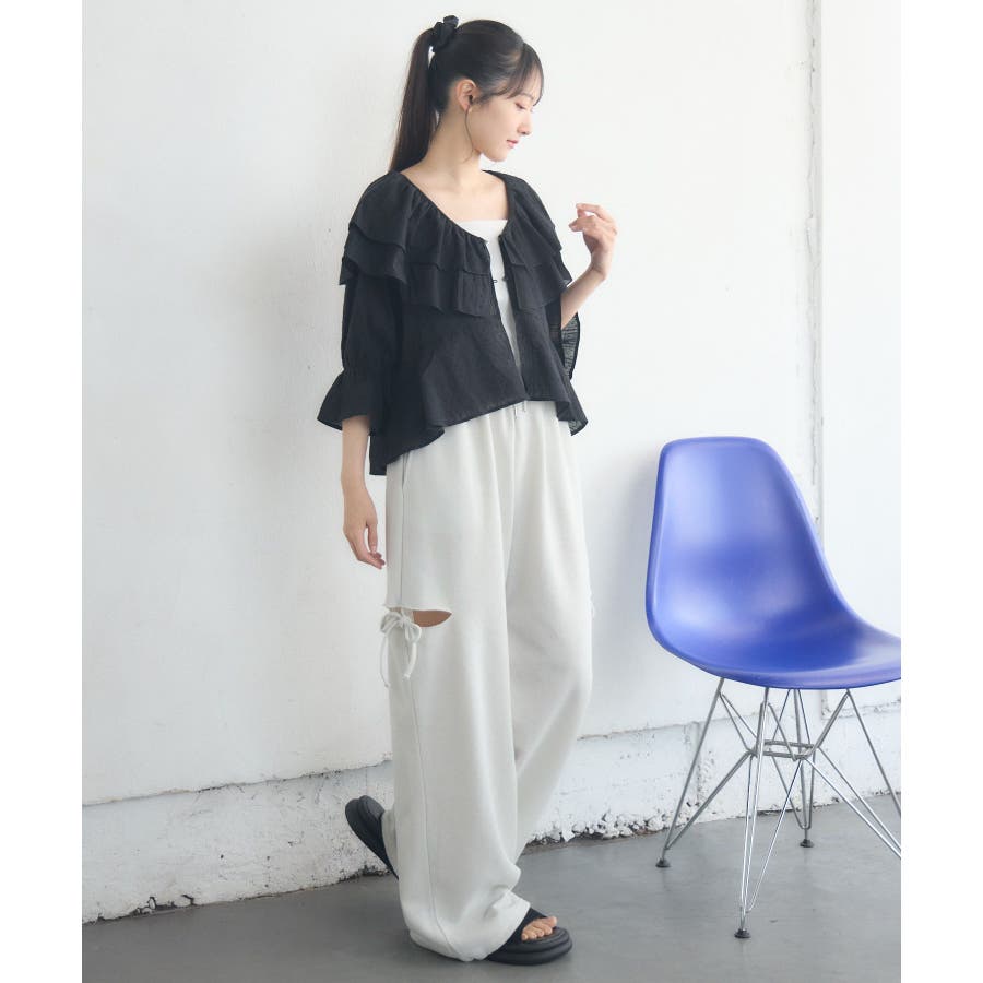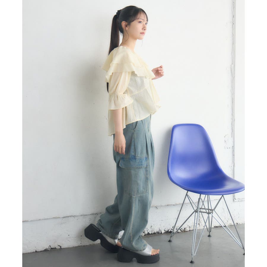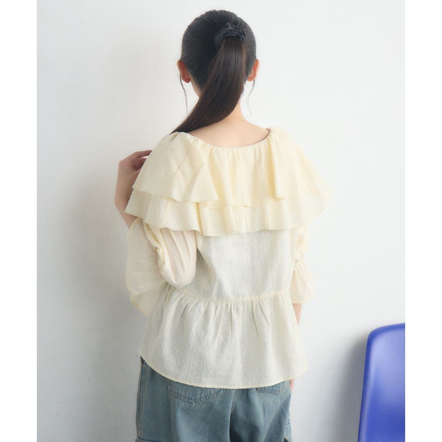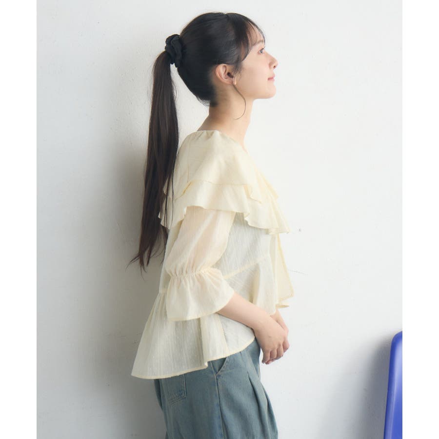 <豊富なカラーから選べる甘めなガーリーブラウス>▼デザインフリルたっぷりの甘めなブラウス。フロント部分はボタンで開け閉めできるので、羽織りスタイルで着るのも可愛い!今年トレンドのフリルブラウスは1枚は持っておきたいアイテム。袖口もキャンディスリーブでクシュっと絞られているので、袖口は広がって可愛い印象に♪▼コーディネートトップス使いをしたり、キャミの上に羽織ったり、いろんな着回しができます◎ボトムをカジュアルなパンツやデニムにしても、ブラウスが可愛らしさをプラスしてくれます。-----------------------------生地感:薄手伸縮性:なし透け感:あり裏地:なし------------------------------▼ブランド紹介RETRO GIRL (レトロガール)自分らしい“ベーシックアイテム”と新しい自分の”トレンドアイテム”が見つかる場所今らしいファッションを楽しむ女性のためのブランド#ブラウス #ブラウスコーデ#ブラウスアイテム #フリル #コットン素材 #フロントボタン▼注意事項※撮影環境やモニター環境によって実際の商品とお色味が 多少異なってみえる場合がございます。品番:RS537523B003 / 品名:コットンレース襟フリルBL
