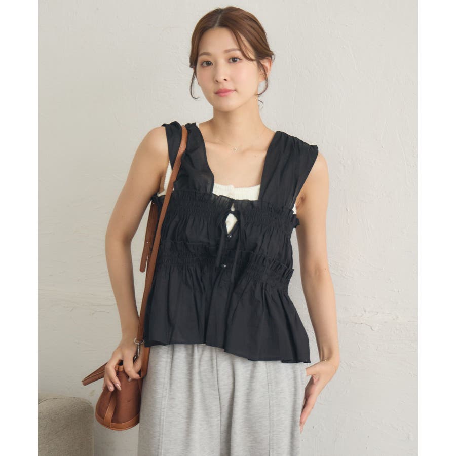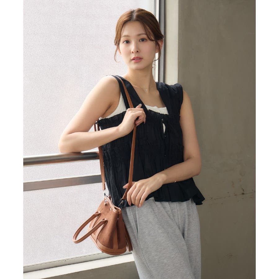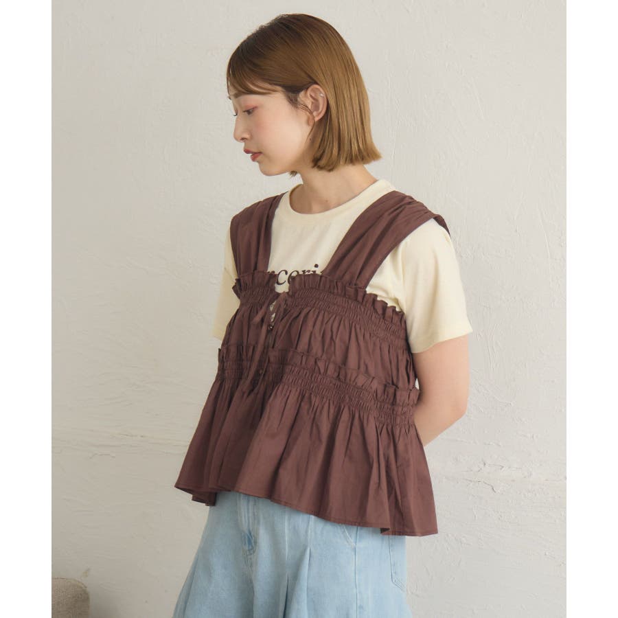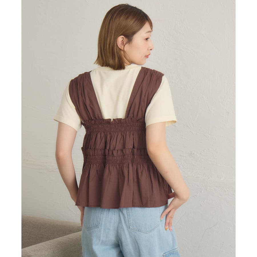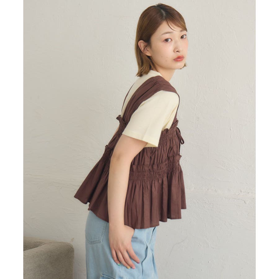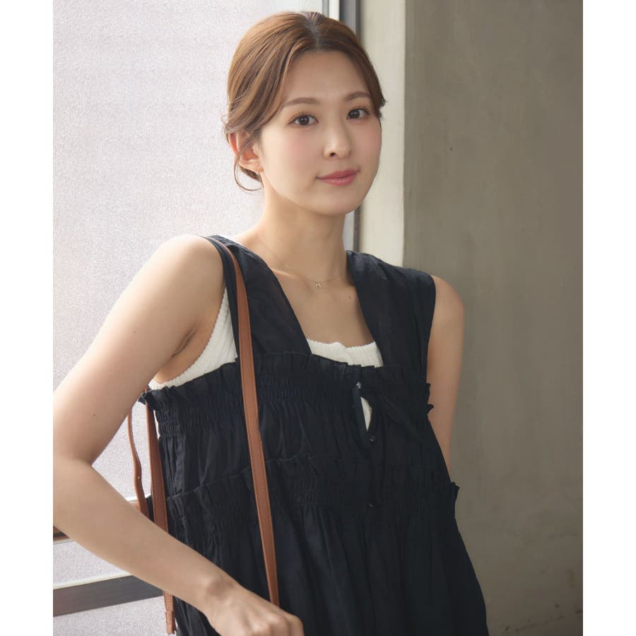 〈すっきりしたデザインのきれいめビスチェ〉▼デザイン太めのショルダーで華奢見え間違いなしのビスチェアイテム。胸元は2か所シャーリングが施されていて、メリハリあるシルエット♪フロントリボンも女性らしさを演出するワンポイント!▼コーディネートTシャツの上にレイヤードすることで、気になる二の腕もカバー!真夏はノースリーブで着用も涼し気コーデでおすすめです♪------------------------------生地感:普通伸縮性:ある透け感:ある裏地:なし------------------------------▼ブランド紹介RETRO GIRL (レトロガール)自分らしい“ベーシックアイテム”と新しい自分の”トレンドアイテム”が見つかる場所今らしいファッションを楽しむ女性のためのブランド#ビスチェ #ビスチェ #レイヤードアイテム #大人可愛い #大人カジュアル #トレンドアイテム▼注意事項※撮影環境やモニター環境によって実際の商品とお色味が 多少異なってみえる場合がございます。品番:RS537523T005 / 品名:ノースリフリルビスチェ