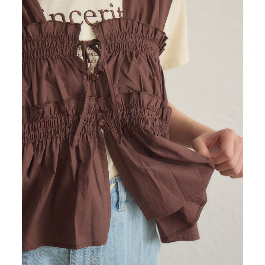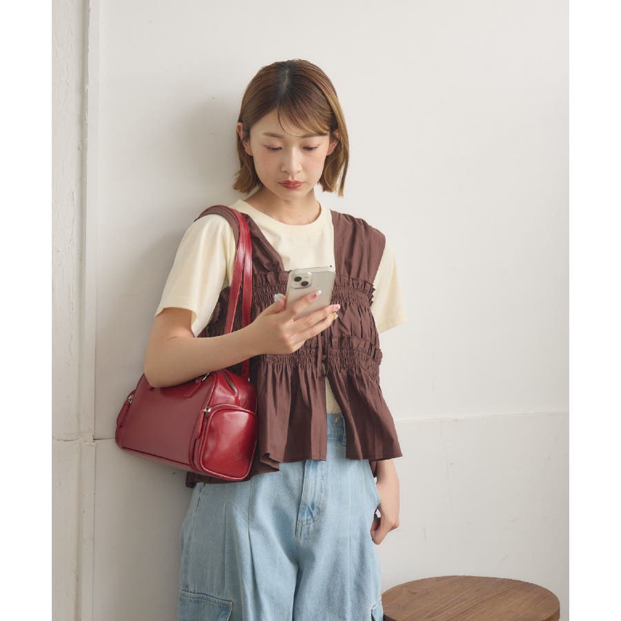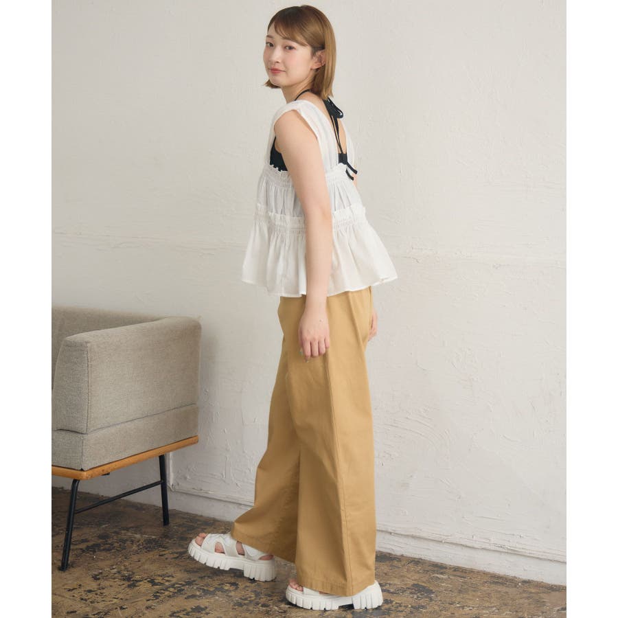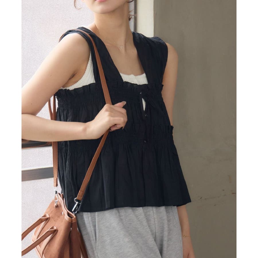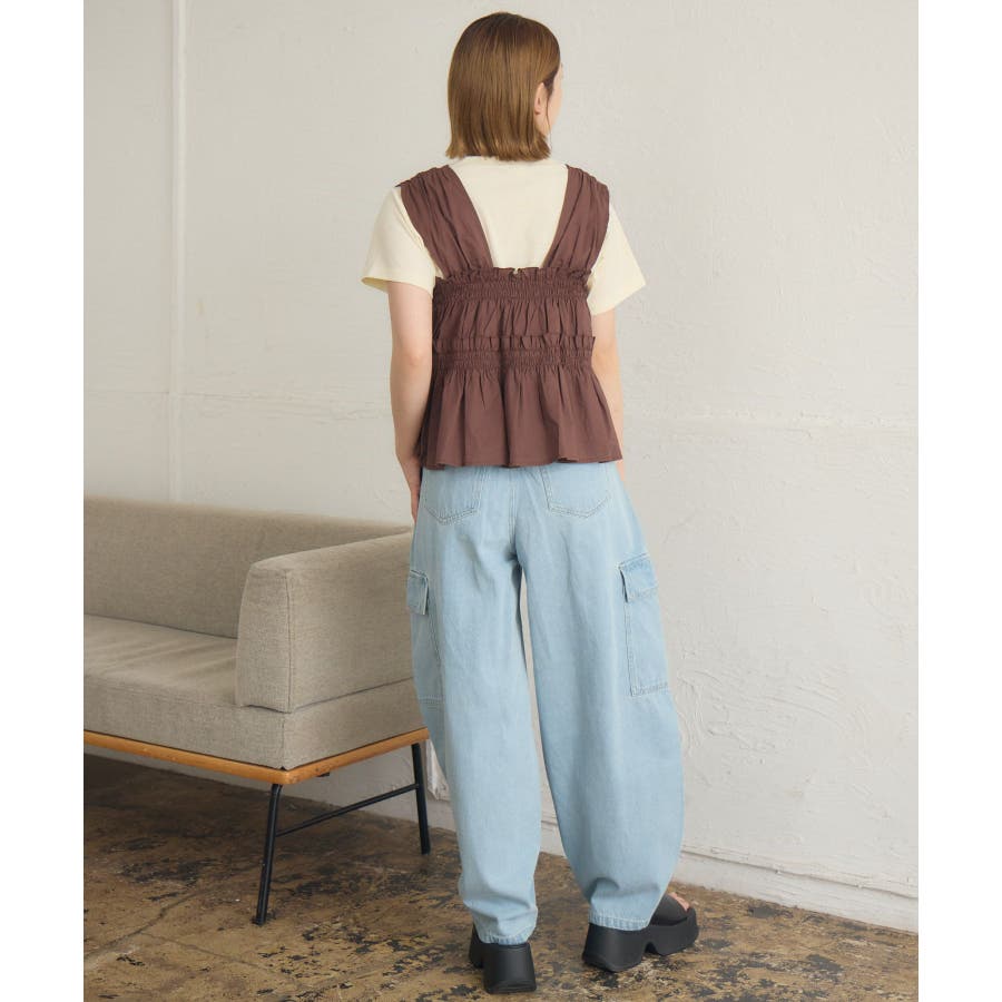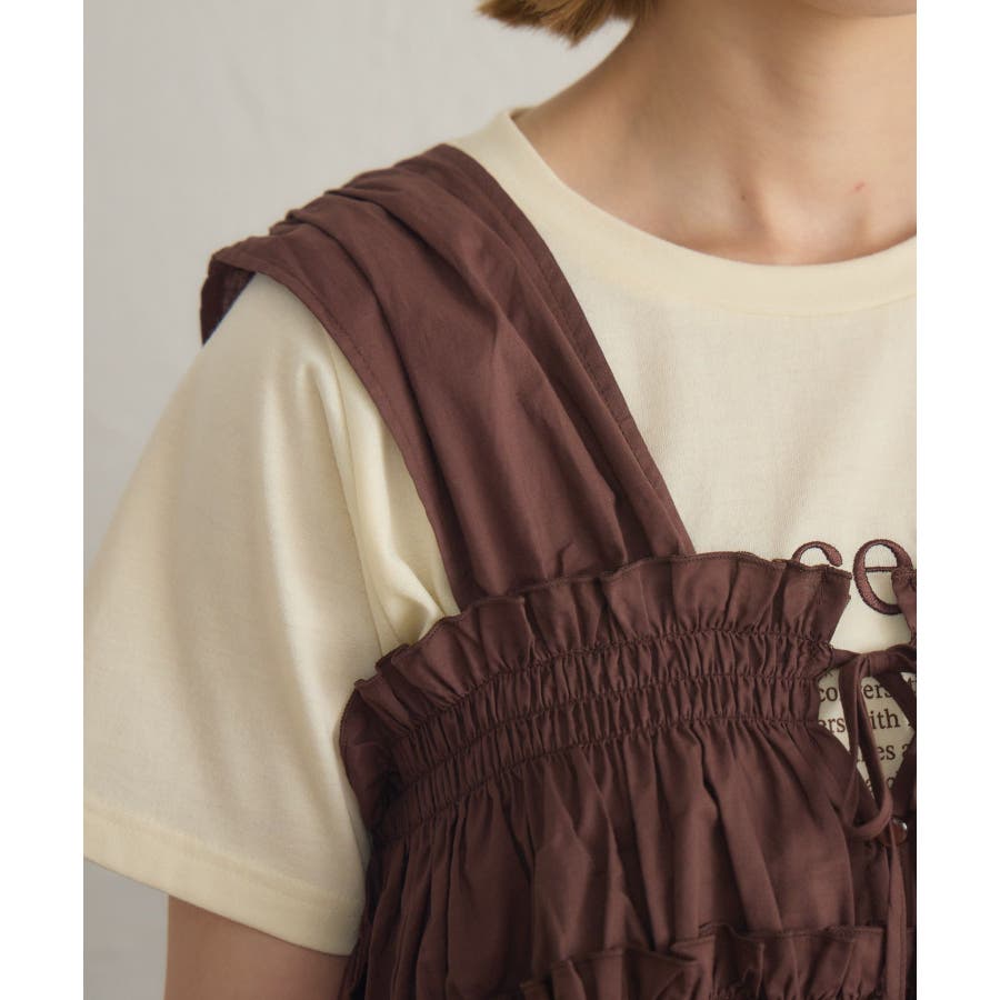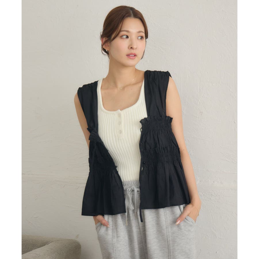 〈すっきりしたデザインのきれいめビスチェ〉▼デザイン太めのショルダーで華奢見え間違いなしのビスチェアイテム。胸元は2か所シャーリングが施されていて、メリハリあるシルエット♪フロントリボンも女性らしさを演出するワンポイント!▼コーディネートTシャツの上にレイヤードすることで、気になる二の腕もカバー!真夏はノースリーブで着用も涼し気コーデでおすすめです♪------------------------------生地感:普通伸縮性:ある透け感:ある裏地:なし------------------------------▼ブランド紹介RETRO GIRL (レトロガール)自分らしい“ベーシックアイテム”と新しい自分の”トレンドアイテム”が見つかる場所今らしいファッションを楽しむ女性のためのブランド#ビスチェ #ビスチェ #レイヤードアイテム #大人可愛い #大人カジュアル #トレンドアイテム▼注意事項※撮影環境やモニター環境によって実際の商品とお色味が 多少異なってみえる場合がございます。品番:RS537523T005 / 品名:ノースリフリルビスチェ