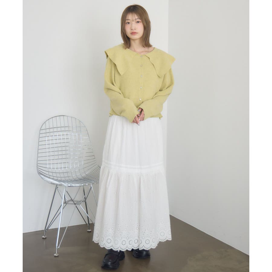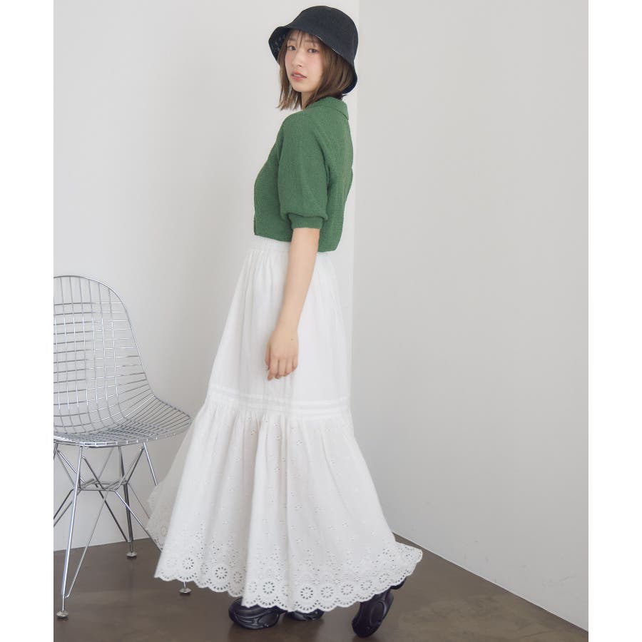 <柔らかいレース素材の夏らしいマキシ丈スカート>▼デザイン優しいレースとガーゼの素材感のフレアスカート。膝上部分で切替デザインが施されていて、そこからふわっと広がるAラインシルエット。裾部分はレース素材で、程よい透け感が可愛い♪夏のひまわり畑に着て行きたいような無垢でピュアな印象のアイテム。▼コーディネートガーリーなブラウスと合わせてとことんガーリーに◎ギンガムチェックのトップスとも相性良さそう!------------------------------生地感:普通伸縮性:なし透け感:裾部分ややある裏地:あり------------------------------▼ブランド紹介RETRO GIRL (レトロガール)自分らしい“ベーシックアイテム”と新しい自分の”トレンドアイテム”が見つかる場所今らしいファッションを楽しむ女性のためのブランド#レース #夏スカート #切替 #マキシスカート▼注意事項※撮影環境やモニター環境によって実際の商品とお色味が 多少異なってみえる場合がございます。品番:RS537531T001 / 品名:スカラップフレアSK