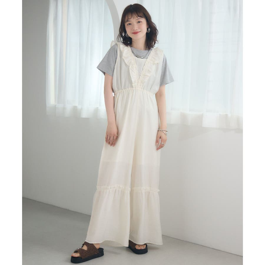 <女性らしいフリルが華やかな柔らかサロペット>▼デザイン女性らしいフリルでフェミニンな印象のサロペット!程よくゆるっと抜け感のあるシルエットに仕上げました♪ワンピースにも見えるフレアな裾のデザインで大人可愛いを実現。インナーをTシャツやキャミソールに変えることで気温調節も可能です◎▼コーディネート1枚でコーデが完成するのが嬉しいサロペットアイテム。インナーをアレンジしたり、上から羽織ることでコーデの印象もがらっと変えることができます◎------------------------------生地感:普通伸縮性:多少ある透け感:なし(ホワイトのみ多少ある)裏地:ある-----------------------------▼ブランド紹介RETRO GIRL (レトロガール)自分らしい“ベーシックアイテム”と新しい自分の”トレンドアイテム”が見つかる場所今らしいファッションを楽しむ女性のためのブランド#夏アイテム #夏コーデ #サロペット #フリルアイテム #フリルサロペット▼注意事項※撮影環境やモニター環境によって実際の商品とお色味が多少異なってみえる場合がございます。品番:RS537532T001 / 品名:ギャザーフリルサロペット