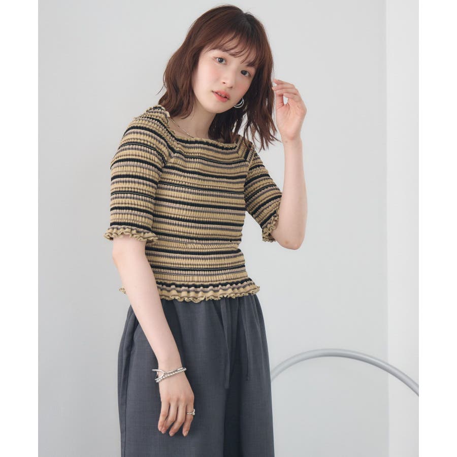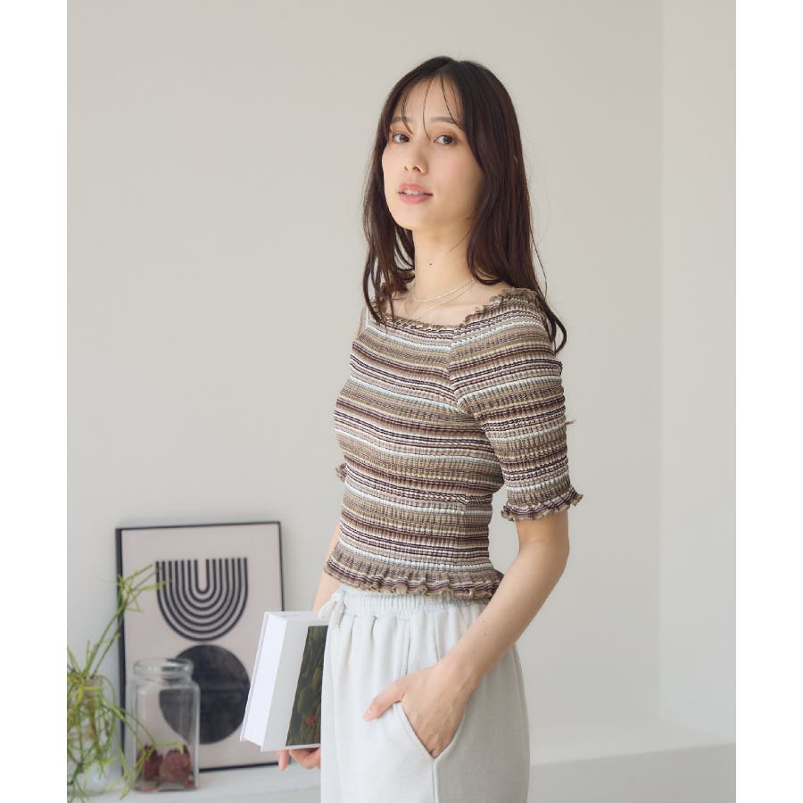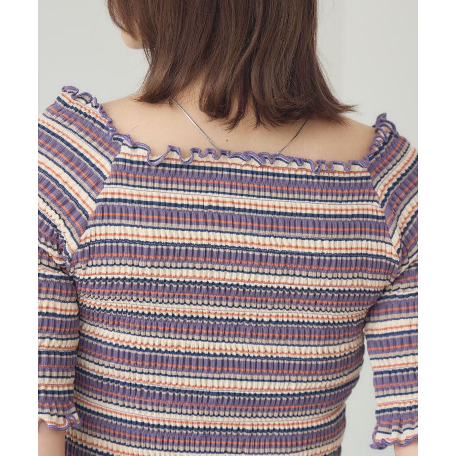 〈伸縮性たっぷりのボーダーカットソー〉▼デザイン全体がギャザーデザインになったトレンドのカットソー!伸縮性もあり、着心地抜群なのが嬉しいポイント。全てボーダーで存在感あるデザインに仕上げました。オフショルダーでも着ていただけで、夏にぴったりの涼し気なアイテム♪▼コーディネート今年らしいボーダーアイテム!ボトムはスカートかパンツスタイルかで印象が大きく変化します!------------------------------生地感:普通伸縮性:ある透け感:なし裏地:なし------------------------------▼ブランド紹介RETRO GIRL (レトロガール)自分らしい“ベーシックアイテム”と新しい自分の”トレンドアイテム”が見つかる場所今らしいファッションを楽しむ女性のためのブランド#カットソー #ボーダー #ギャザーアイテム #マルチボーダー #夏コーデ #トレンドアイテム▼注意事項※撮影環境やモニター環境によって実際の商品とお色味が 多少異なってみえる場合がございます。品番:RS556411T001 / 品名:アソートギャザーカットソー