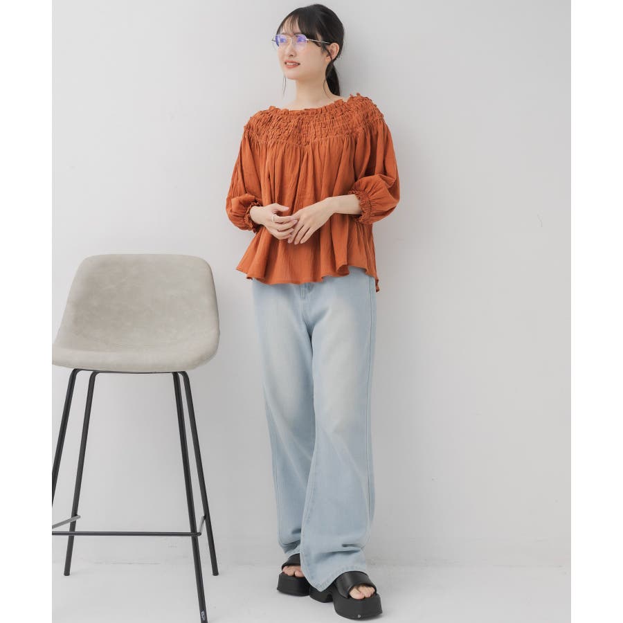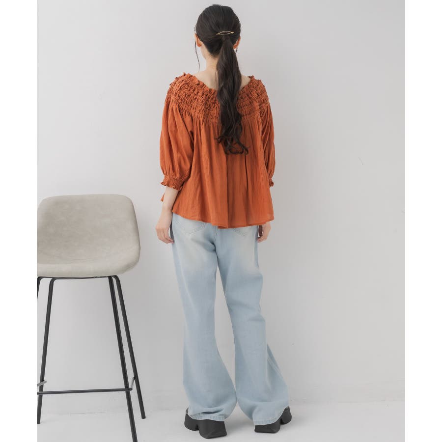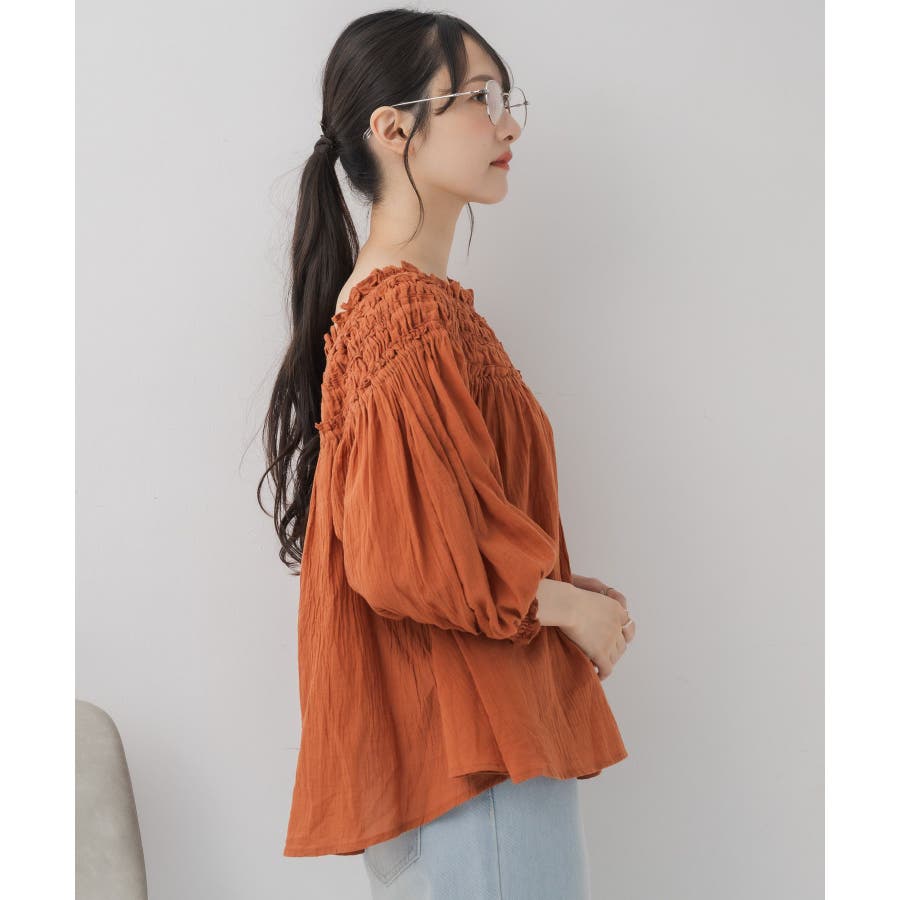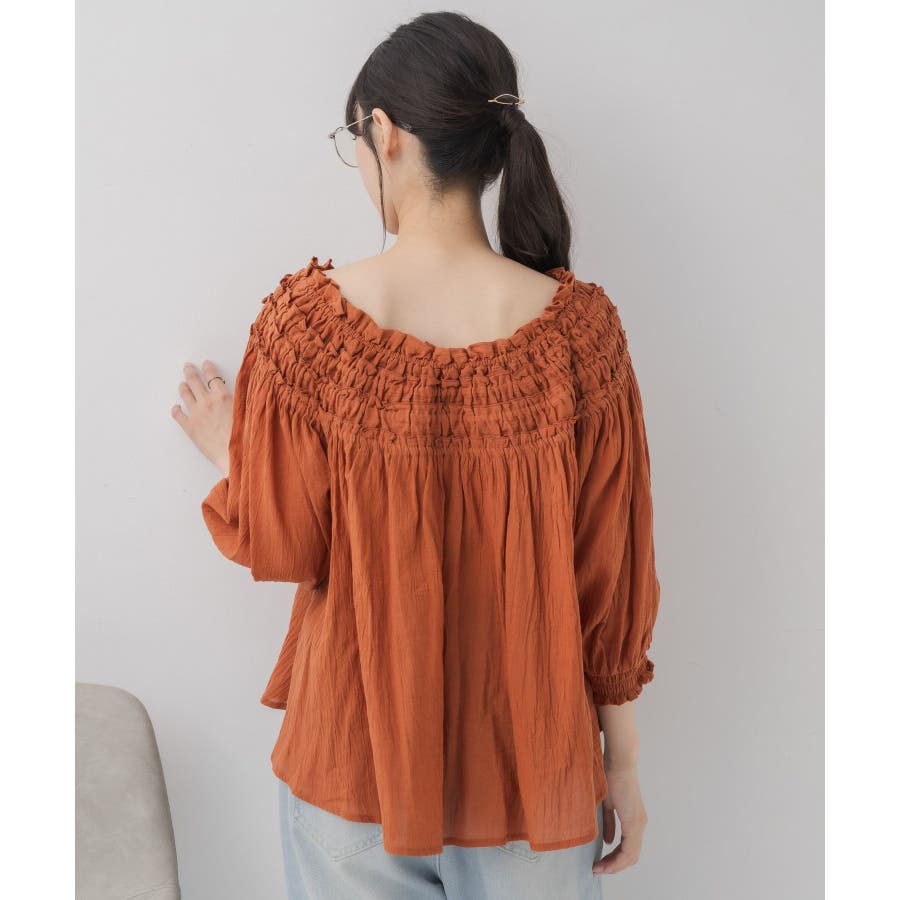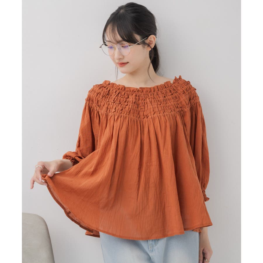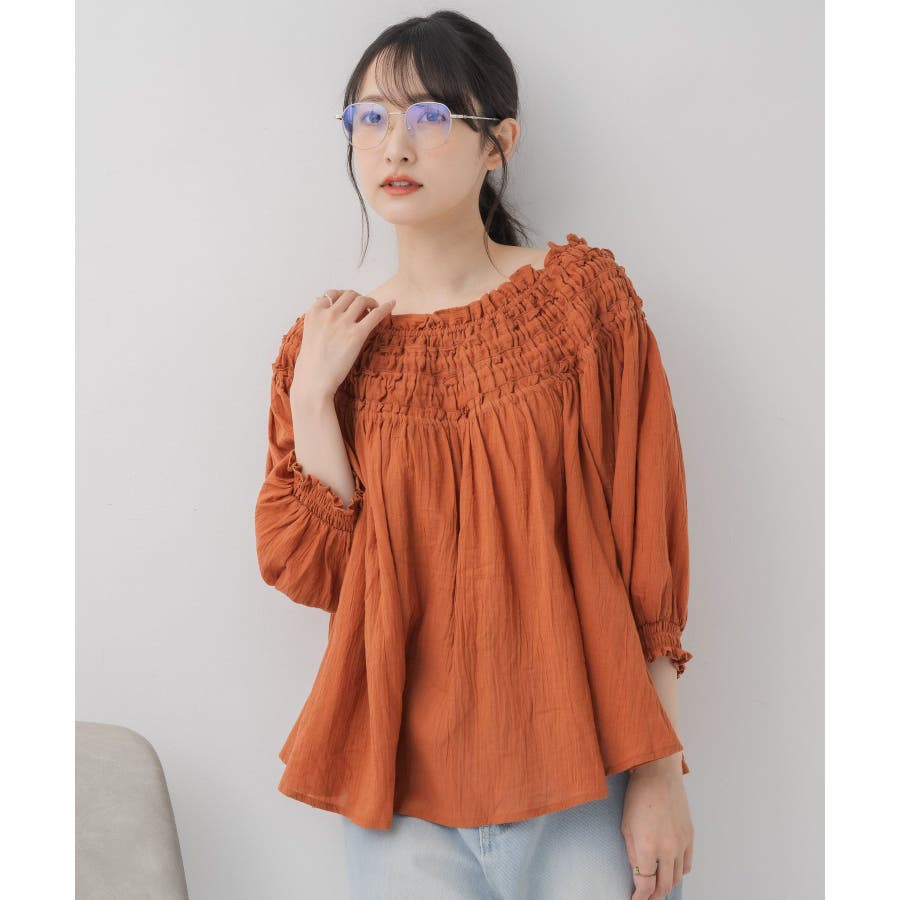 <オフショルダーと2wayで着用できるブラウスアイテム>▼デザイン胸元はギャザーが施された綺麗目ブラウス。伸縮性があり、オフショルダーとしても着用して頂けます。オレンジは明度の低い大人っぽいカラーで夏らしさもありつつ落ち着いた印象に。柔らかく風通しの良い素材で、夏にピッタリ!▼コーディネートオフショルダーで着用すると夏っぽいスタイリングに。ボトムはデニムもタイトスカートも合わせやすい♪-----------------------------生地感:薄手伸縮性:ある(胸元のみ)透け感:多少あり裏地:なし------------------------------▼ブランド紹介RETRO GIRL (レトロガール)自分らしい“ベーシックアイテム”と新しい自分の”トレンドアイテム”が見つかる場所今らしいファッションを楽しむ女性のためのブランド#ブラウス #ブラウスコーデ#ブラウスアイテム #フリル #コットン素材 #オフショルダー #2way▼注意事項※撮影環境やモニター環境によって実際の商品とお色味が 多少異なってみえる場合がございます。品番:RS556423T002 / 品名:ギャザー2wayオフショルBL