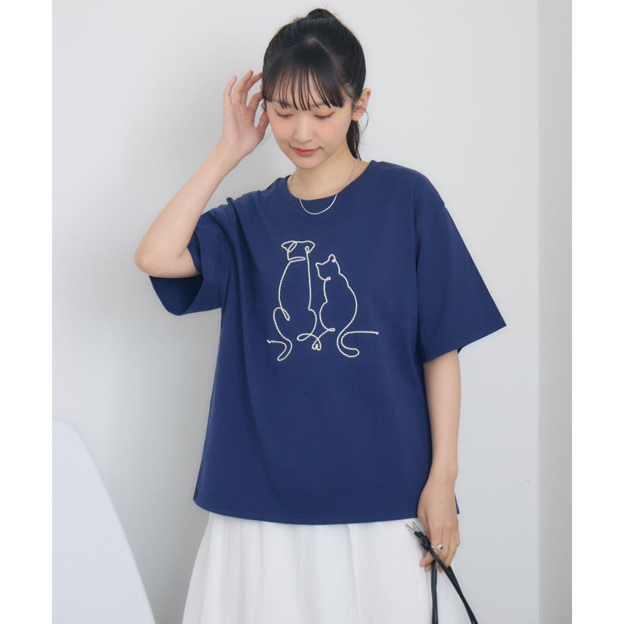 コード刺繍アニマルTEE