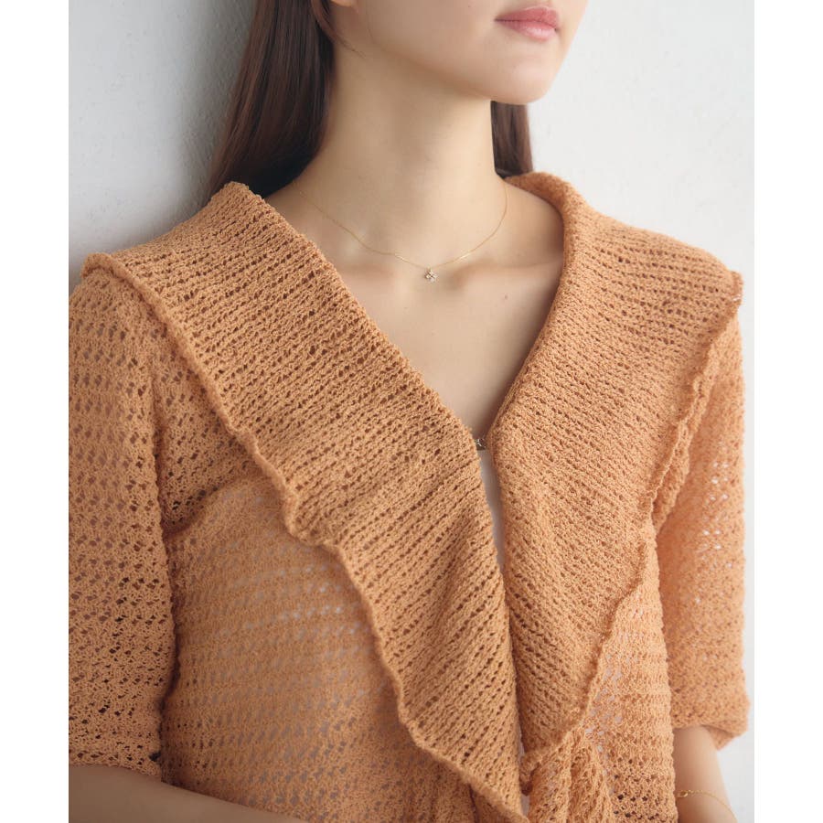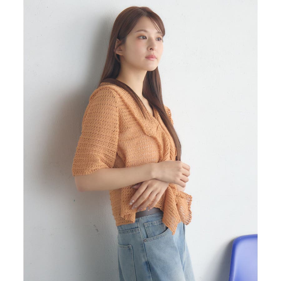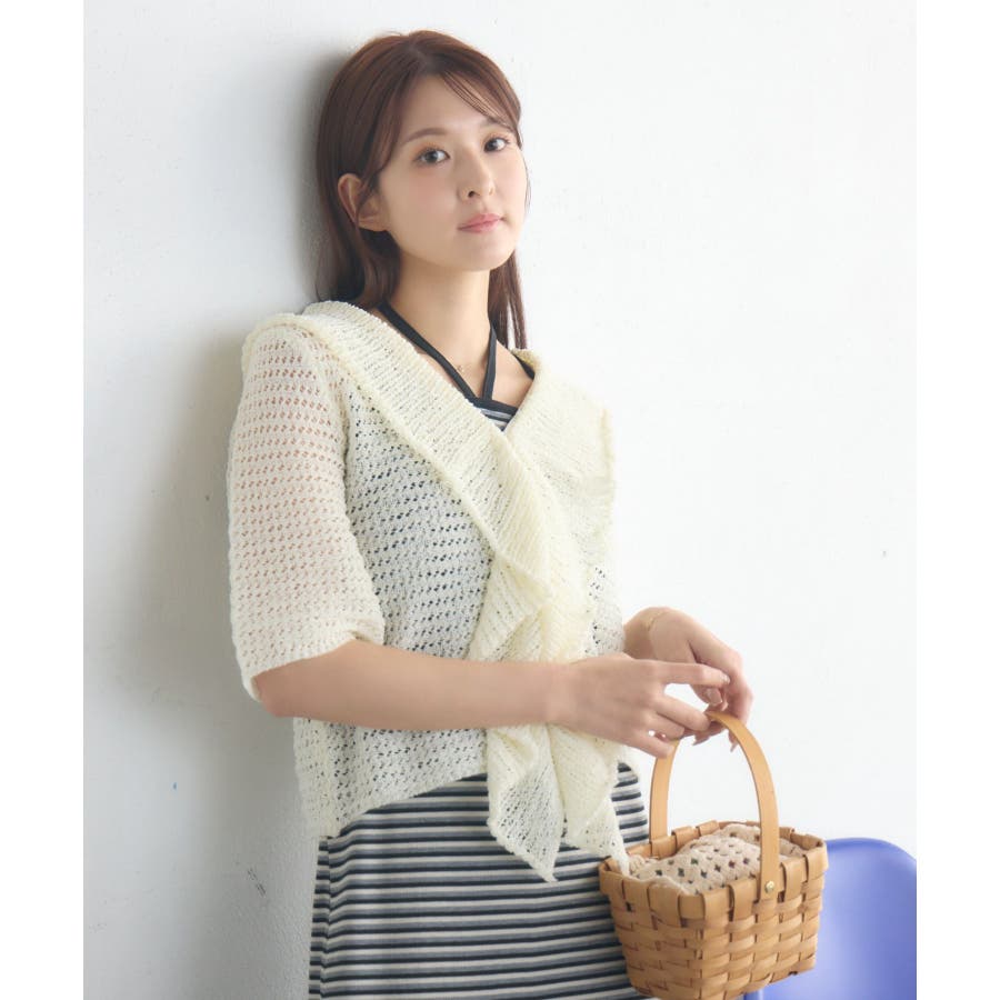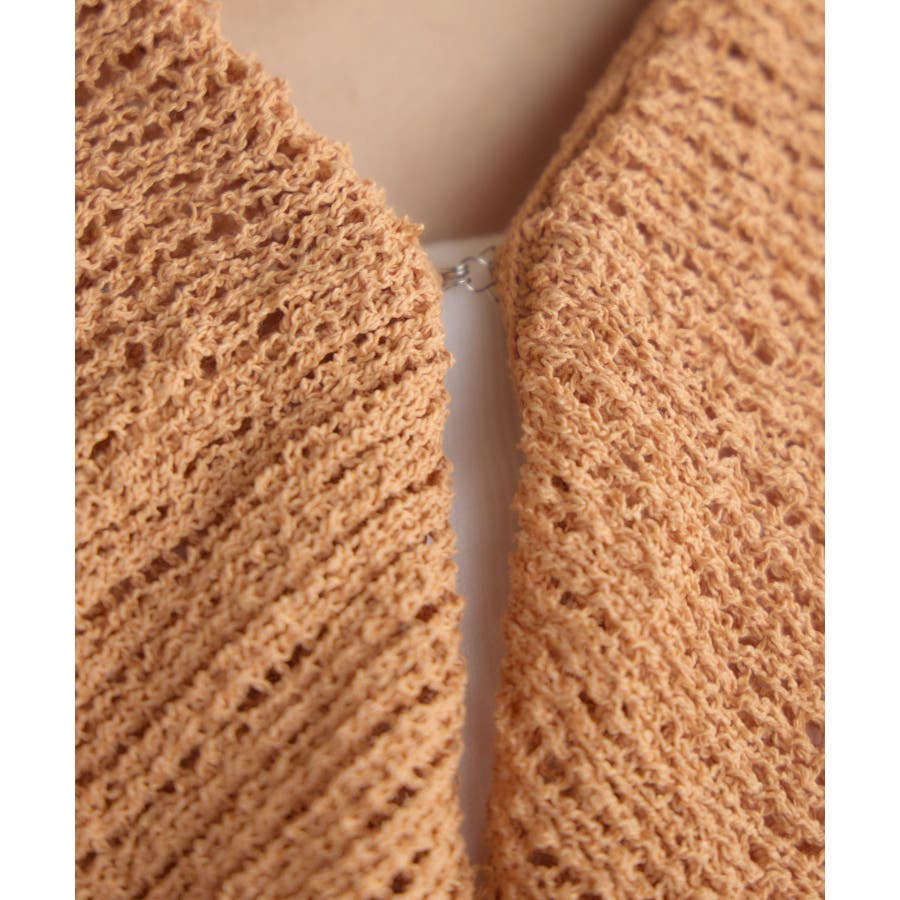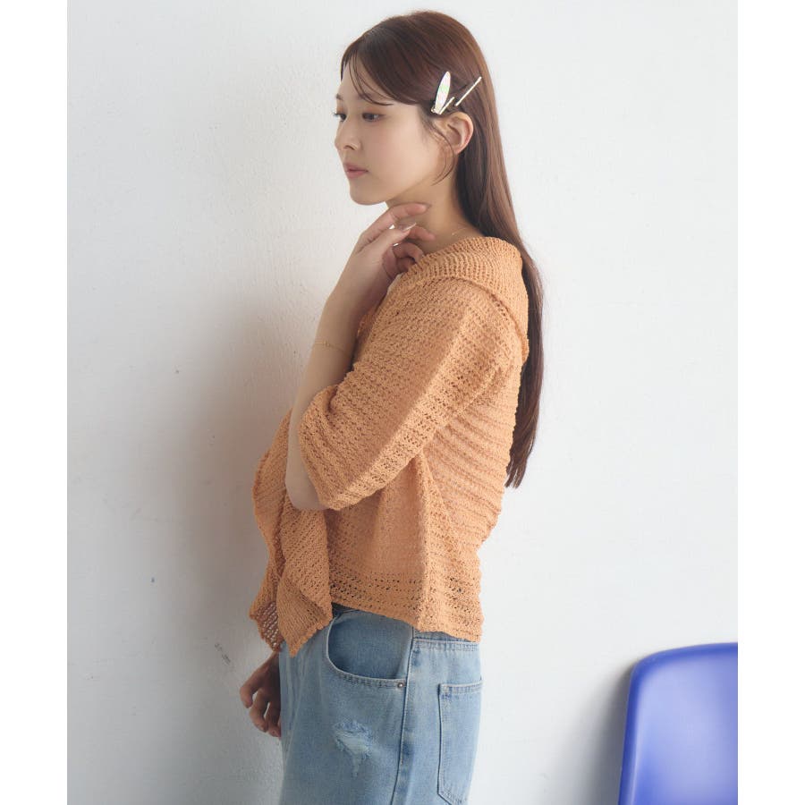 〈スカシ編みが涼し気なニットカーディガン〉▼デザイン透かし編みが可愛いニットカーディガン。首周りはフリルで華やかな印象に!フックで簡単に着脱できるので、夏のエアコン対策に持ち歩くのも◎▼コーディネートワンピースの上に羽織るとフェミニンなスタイリングに!キャミに羽織っても通気性がいいので夏にぴったりのスタイリングに◎------------------------------生地感:薄手伸縮性:多少ある透け感:ある裏地:なし------------------------------▼ブランド紹介RETRO GIRL (レトロガール)自分らしい“ベーシックアイテム”と新しい自分の”トレンドアイテム”が見つかる場所今らしいファッションを楽しむ女性のためのブランド#カーディガン #スカシ編み #羽織アイテム #オレンジ #夏コーデ #夏コーデ #フリルアイテム #羽織アイテム▼注意事項※撮影環境やモニター環境によって実際の商品とお色味が 多少異なってみえる場合がございます。品番:RS557112T005 / 品名:透かしフリル襟カーデ