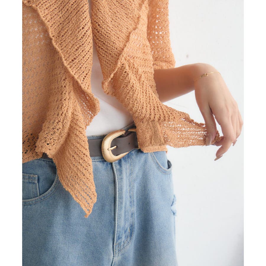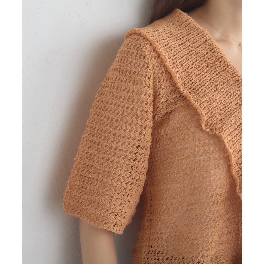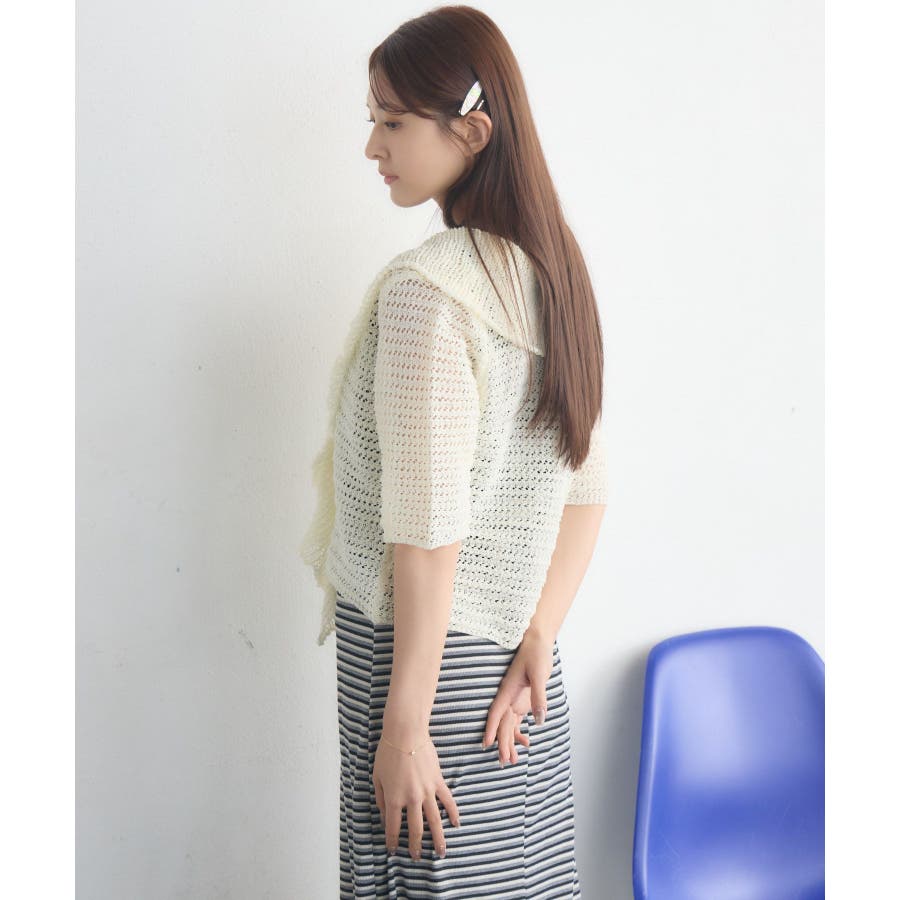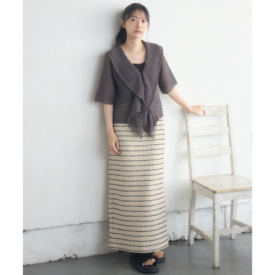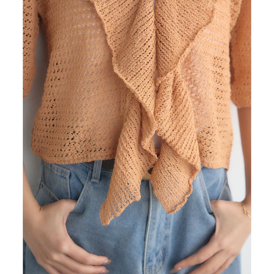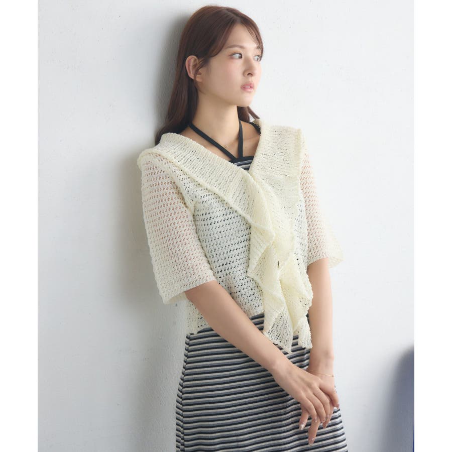 〈スカシ編みが涼し気なニットカーディガン〉▼デザイン透かし編みが可愛いニットカーディガン。首周りはフリルで華やかな印象に!フックで簡単に着脱できるので、夏のエアコン対策に持ち歩くのも◎▼コーディネートワンピースの上に羽織るとフェミニンなスタイリングに!キャミに羽織っても通気性がいいので夏にぴったりのスタイリングに◎------------------------------生地感:薄手伸縮性:多少ある透け感:ある裏地:なし------------------------------▼ブランド紹介RETRO GIRL (レトロガール)自分らしい“ベーシックアイテム”と新しい自分の”トレンドアイテム”が見つかる場所今らしいファッションを楽しむ女性のためのブランド#カーディガン #スカシ編み #羽織アイテム #オレンジ #夏コーデ #夏コーデ #フリルアイテム #羽織アイテム▼注意事項※撮影環境やモニター環境によって実際の商品とお色味が 多少異なってみえる場合がございます。品番:RS557112T005 / 品名:透かしフリル襟カーデ