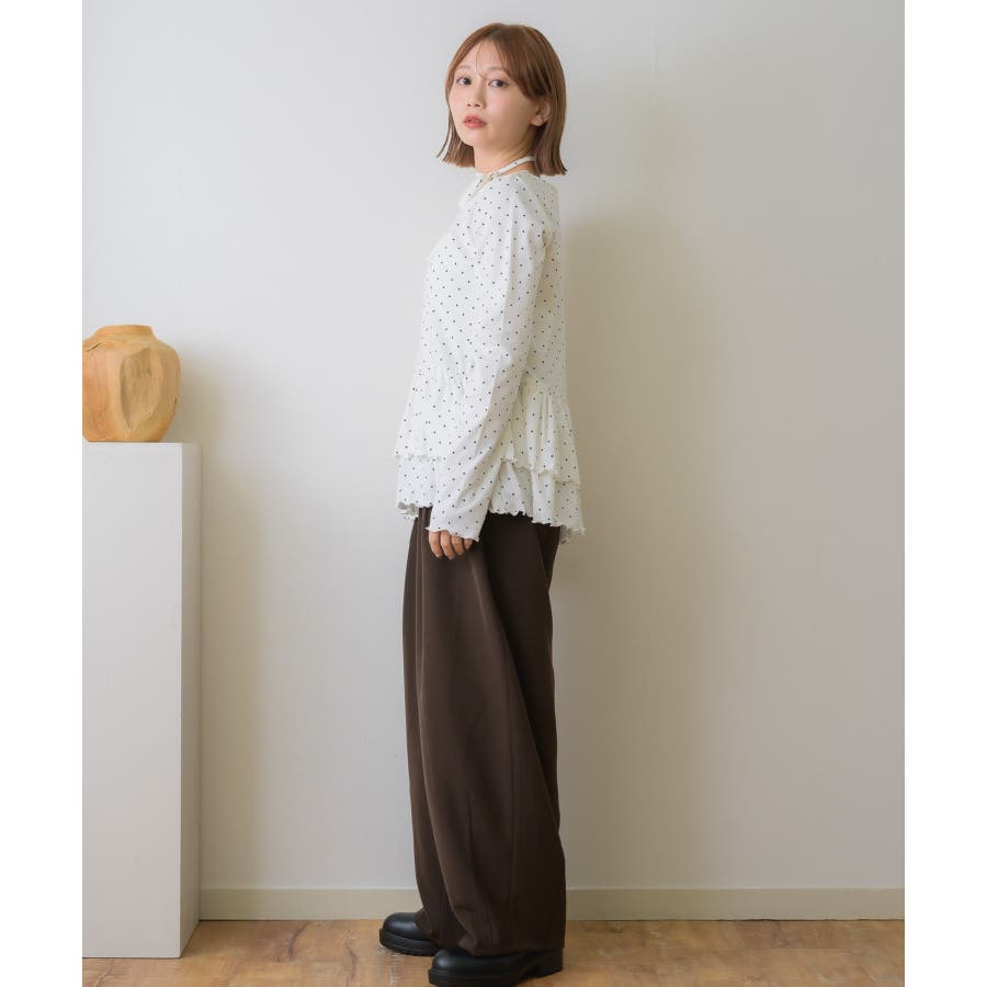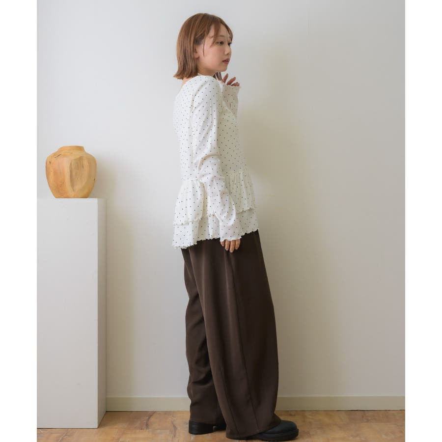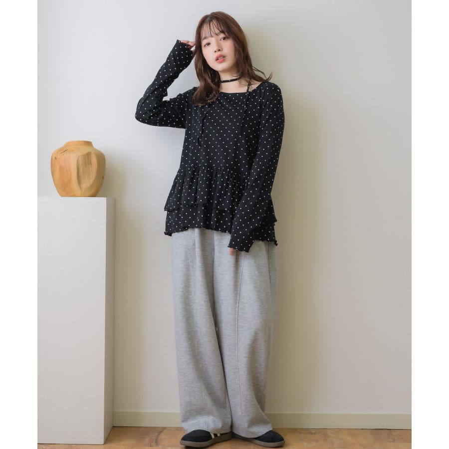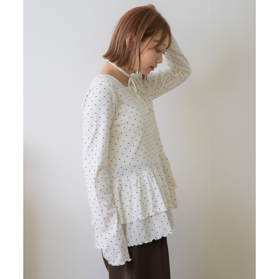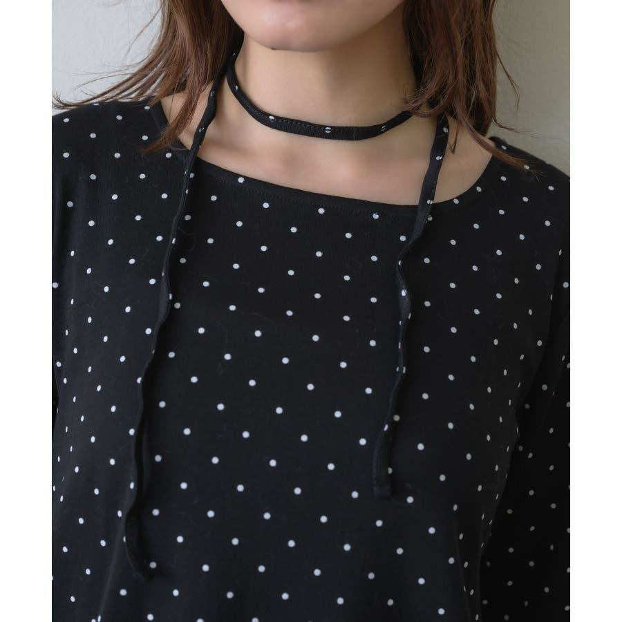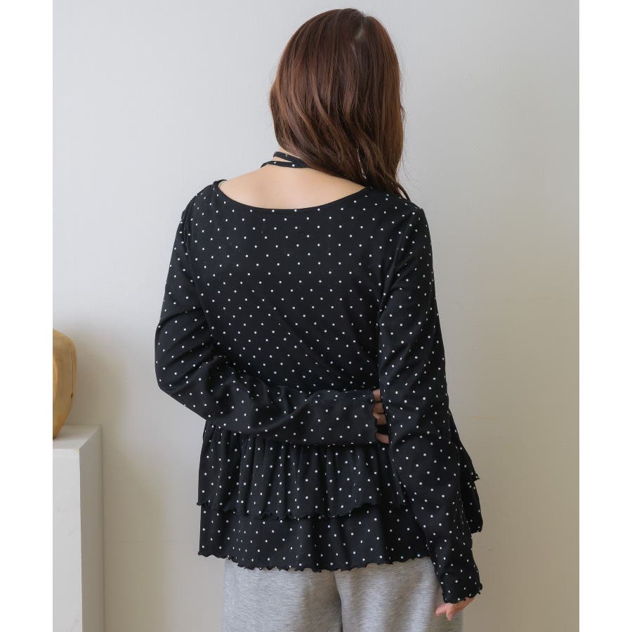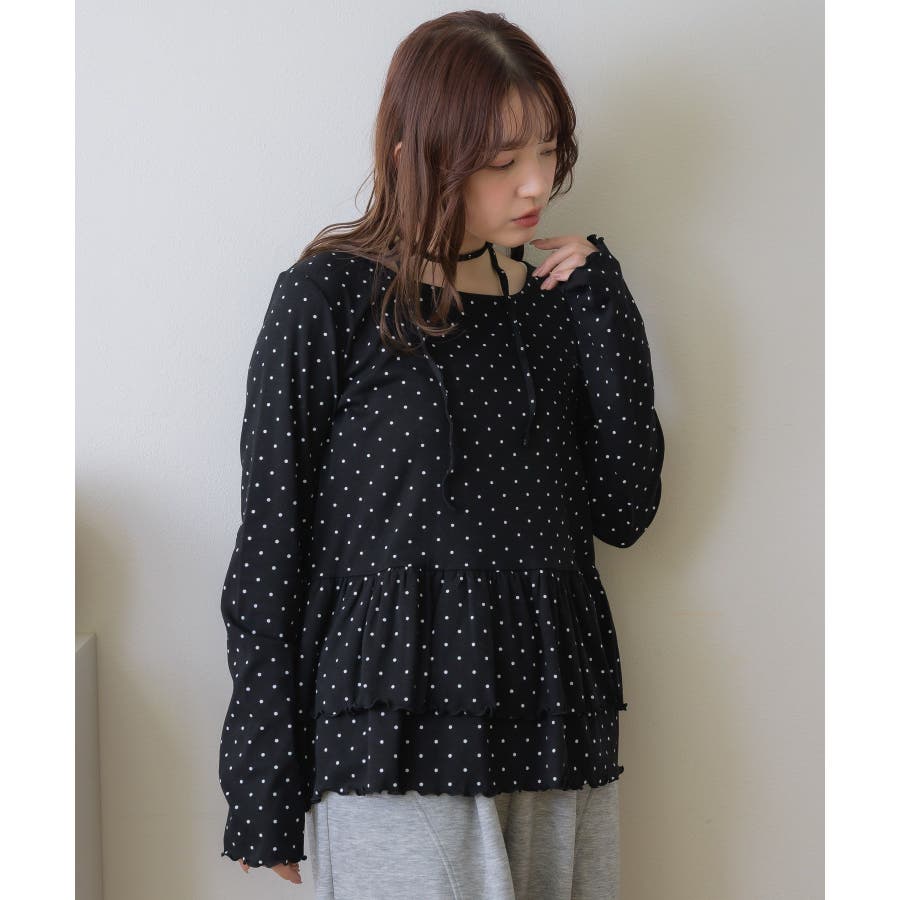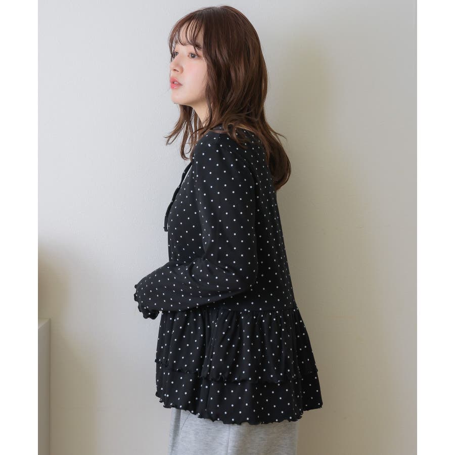 <インナー使いでコーデに甘さをプラスするドット柄カットソー>▼デザイン裾のデザインが可愛い甘めカットソー。全面ドット柄で女性らしい曲線がたっぷりなデザイン。インナー使いはもちろん、メイン使いもおすすめです。同柄のチョーカーもセットで首回りも華やかになります。▼コーディネートトップスとしてはもちろん、ニットやカーディガンの下に着てレイヤードスタイルも楽しんで頂けます。裾のティアード部分に切り替えが入っているので、ベルトマークしてもおしゃれになります。------------------------------生地感:普通伸縮性:あり透け感:なし裏地:なし------------------------------▼ブランド紹介RETRO GIRL (レトロガール)自分らしい“ベーシックアイテム”と新しい自分の”トレンドアイテム”が見つかる場所今らしいファッションを楽しむ女性のためのブランド#フリル #インナー #ドット柄インナー #レイヤードアイテム #ドット柄 #ティアード▼注意事項※撮影環境やモニター環境によって実際の商品とお色味が 多少異なってみえる場合がございます。品番:RU556411T001 / 品名:裾フリルカットソー