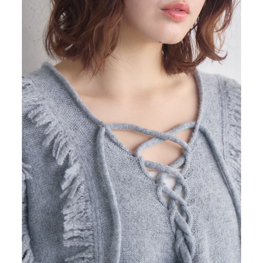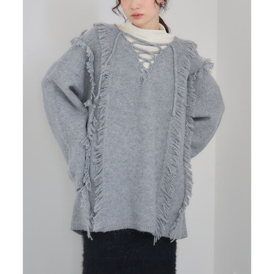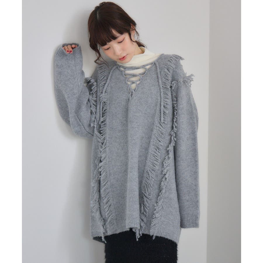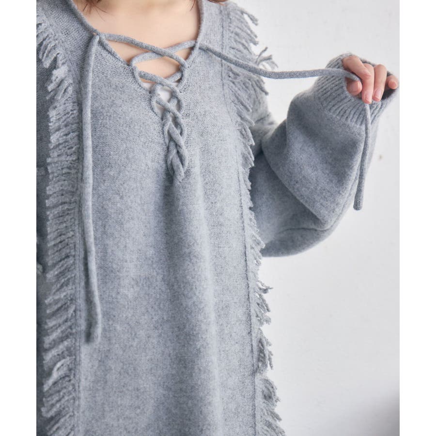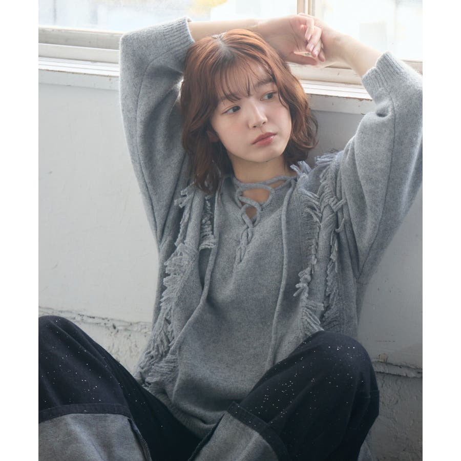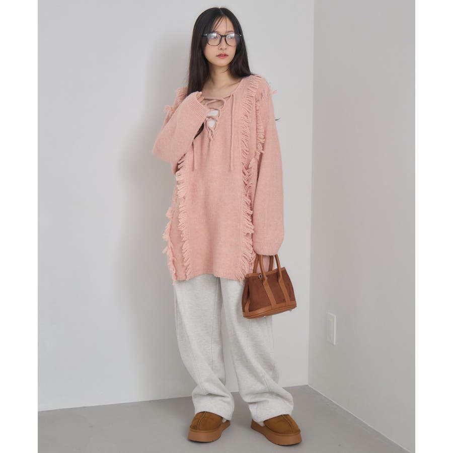 <胸元のデザインが可愛いチュニックニット>▼デザイン胸元が大きくVネックに空いたデザインのニット!レースアップが施されていて、カジュアルでオシャレなデザインに。フロント部分にはフリンジデザインが施されていて、暖かい印象です。チュニック丈で、お尻周りもカバーしてくれるのが嬉しいポイントです♪▼コーディネートVネックなので、鎖骨周りを綺麗に魅せてくれます、ネックレスを合わせると、映えるデザインです。チュニックで着丈が長いので、ショートパンツ合わせで、ニットワンピのように着ていただくのもおすすめ!------------------------------生地感:普通伸縮性:あり透け感:あり裏地:なし-----------------------------#ニット #ニットコーデ #レースアップデザイン #チュニック #チュニックニット▼注意事項※撮影環境やモニター環境によって実際の商品とお色味が 多少異なってみえる場合がございます。品番:RU557112T001 / 品名:レースアップチュニックNT