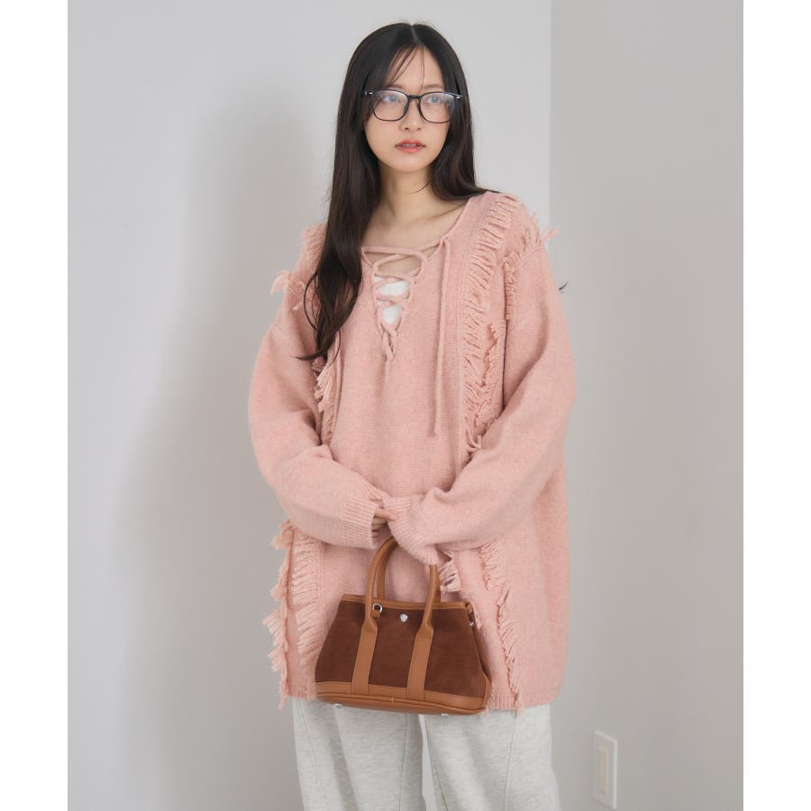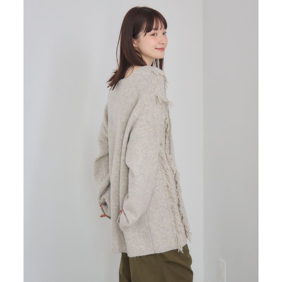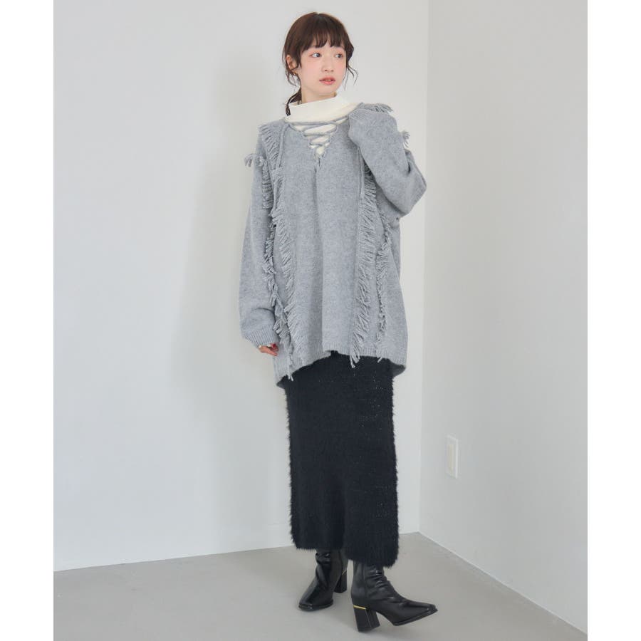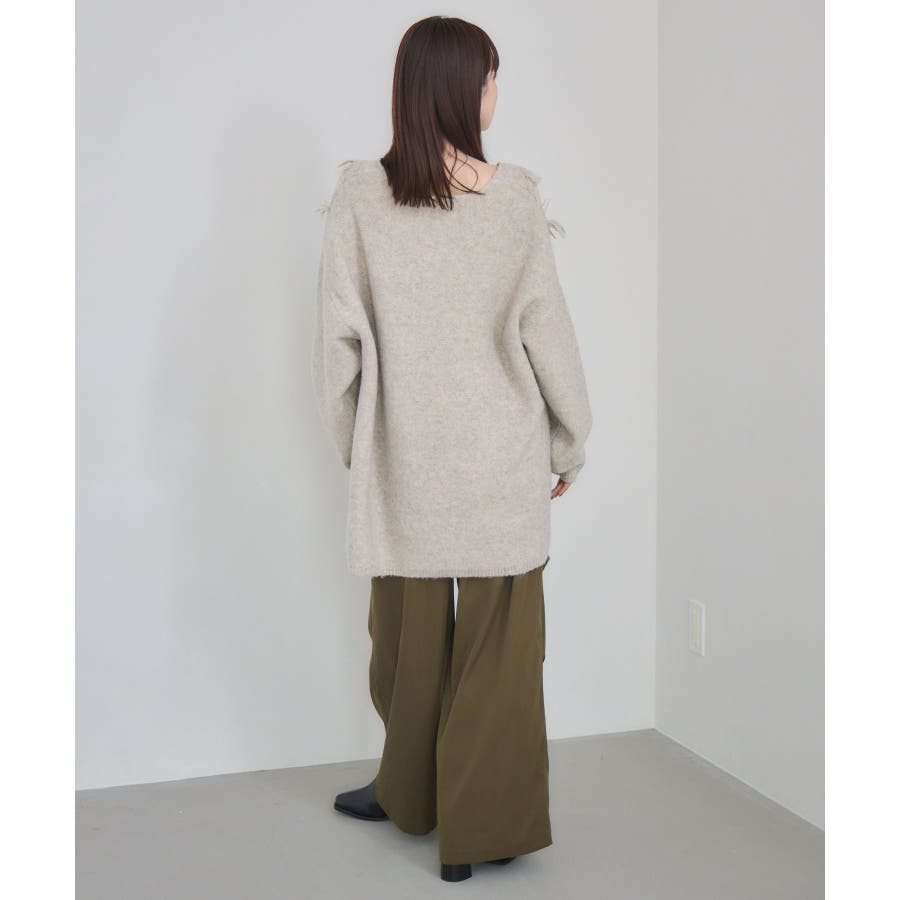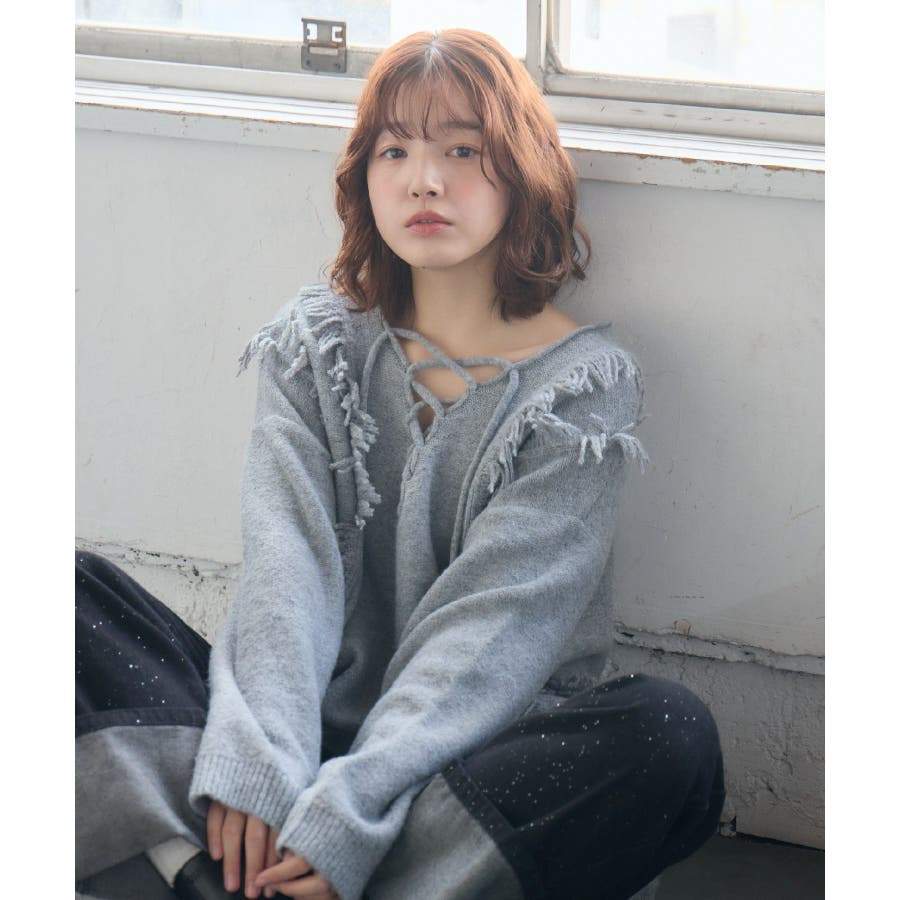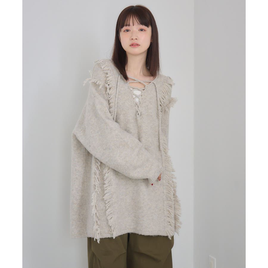 <胸元のデザインが可愛いチュニックニット>▼デザイン胸元が大きくVネックに空いたデザインのニット!レースアップが施されていて、カジュアルでオシャレなデザインに。フロント部分にはフリンジデザインが施されていて、暖かい印象です。チュニック丈で、お尻周りもカバーしてくれるのが嬉しいポイントです♪▼コーディネートVネックなので、鎖骨周りを綺麗に魅せてくれます、ネックレスを合わせると、映えるデザインです。チュニックで着丈が長いので、ショートパンツ合わせで、ニットワンピのように着ていただくのもおすすめ!------------------------------生地感:普通伸縮性:あり透け感:あり裏地:なし-----------------------------#ニット #ニットコーデ #レースアップデザイン #チュニック #チュニックニット▼注意事項※撮影環境やモニター環境によって実際の商品とお色味が 多少異なってみえる場合がございます。品番:RU557112T001 / 品名:レースアップチュニックNT
