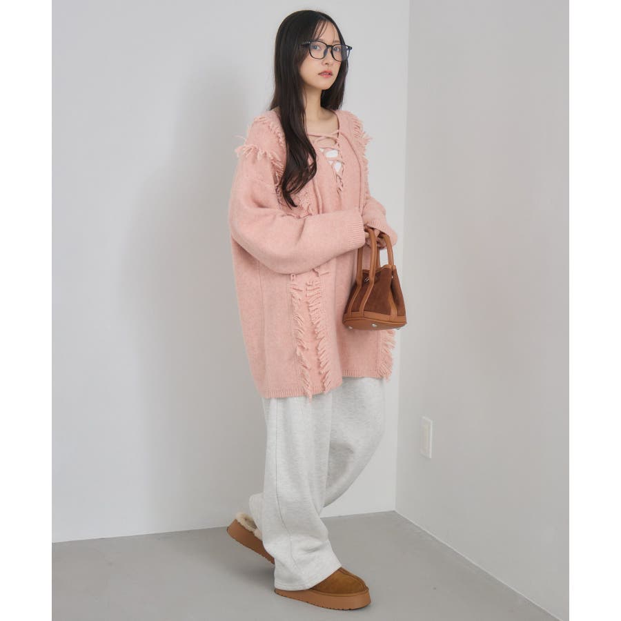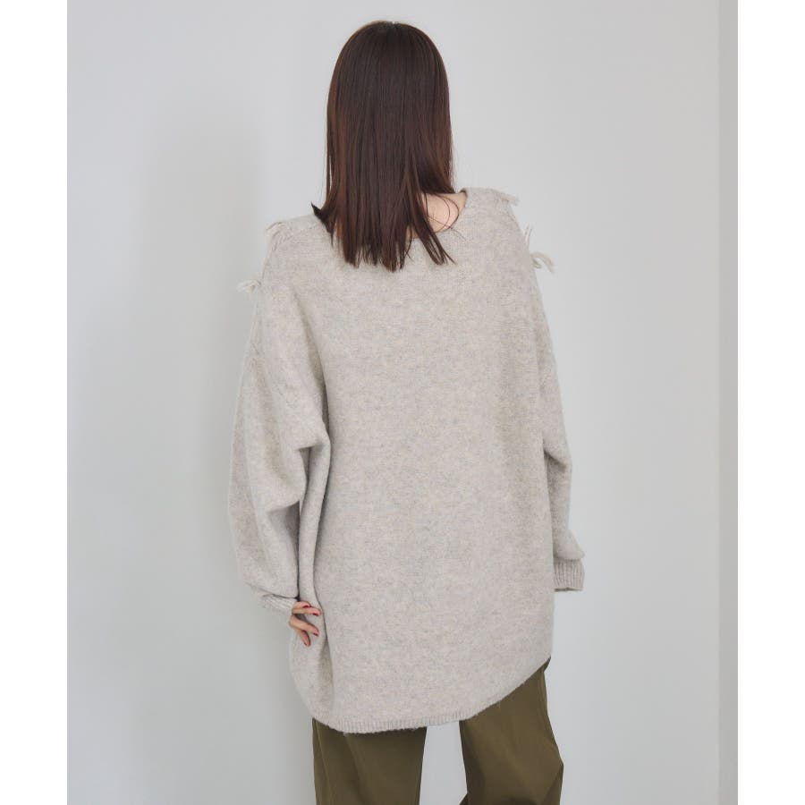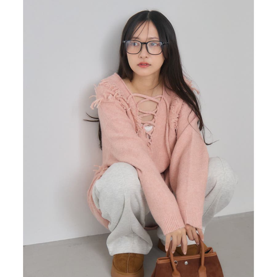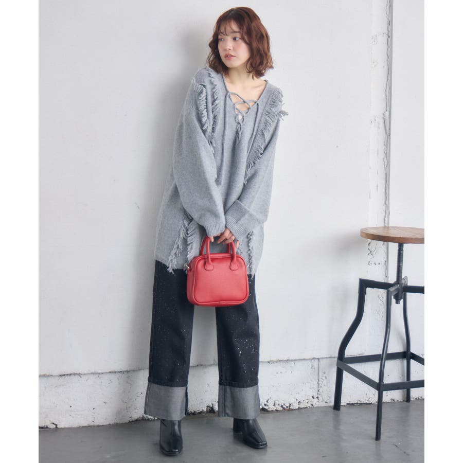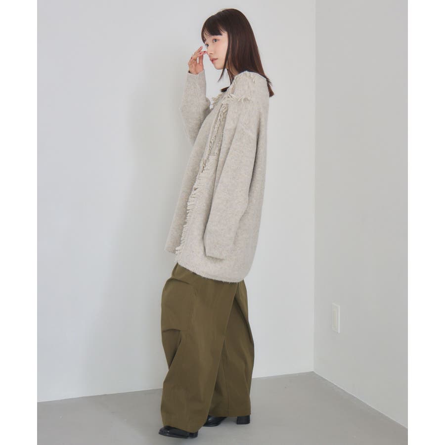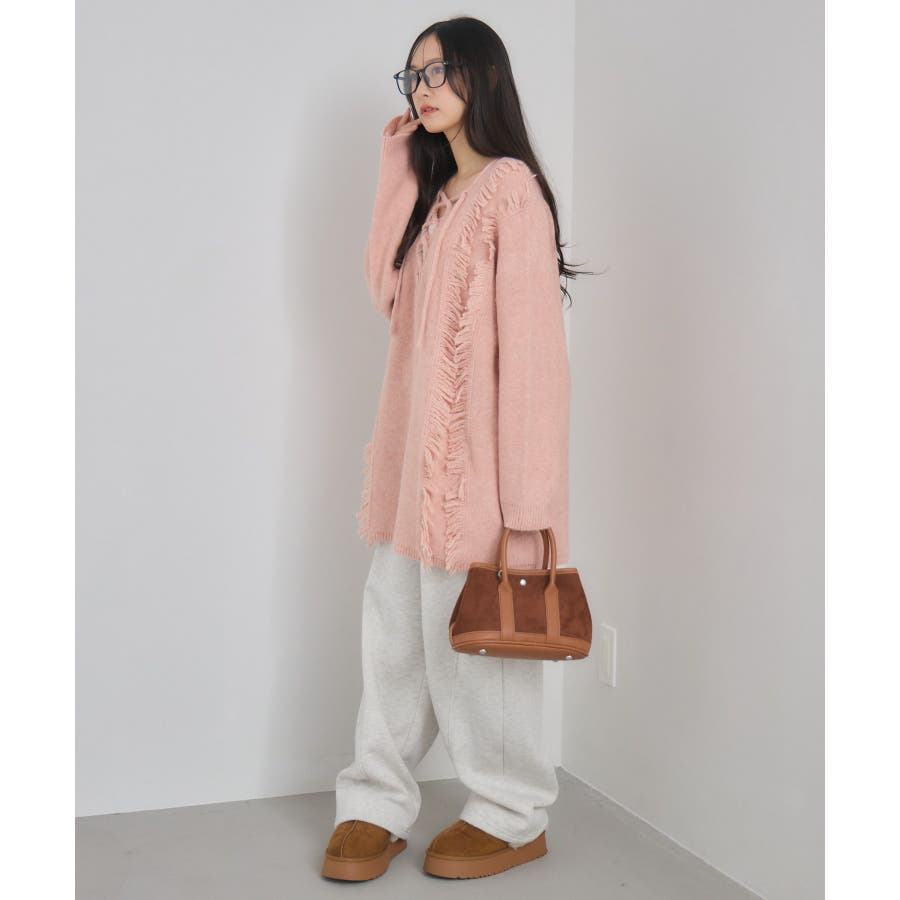 <胸元のデザインが可愛いチュニックニット>▼デザイン胸元が大きくVネックに空いたデザインのニット!レースアップが施されていて、カジュアルでオシャレなデザインに。フロント部分にはフリンジデザインが施されていて、暖かい印象です。チュニック丈で、お尻周りもカバーしてくれるのが嬉しいポイントです♪▼コーディネートVネックなので、鎖骨周りを綺麗に魅せてくれます、ネックレスを合わせると、映えるデザインです。チュニックで着丈が長いので、ショートパンツ合わせで、ニットワンピのように着ていただくのもおすすめ!------------------------------生地感:普通伸縮性:あり透け感:あり裏地:なし-----------------------------#ニット #ニットコーデ #レースアップデザイン #チュニック #チュニックニット▼注意事項※撮影環境やモニター環境によって実際の商品とお色味が 多少異なってみえる場合がございます。品番:RU557112T001 / 品名:レースアップチュニックNT