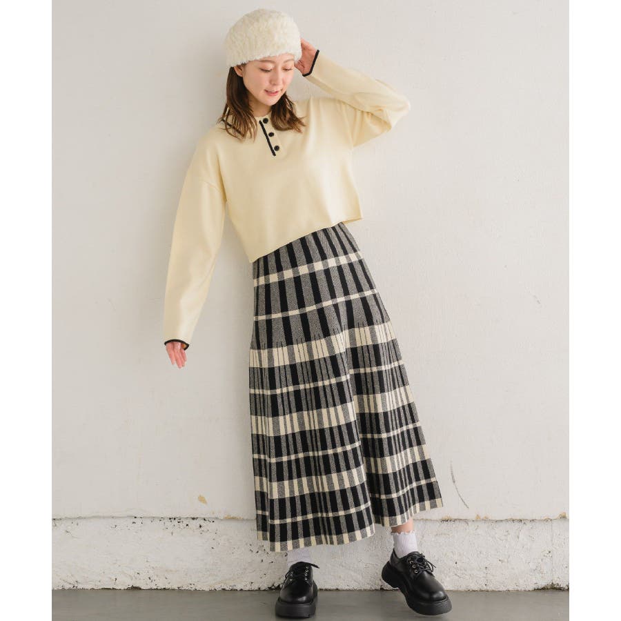 <ニット素材で可愛いチェックのフレアスカート>▼デザイン伸縮性のあるモチモチニット素材!ウエスト部分も360°ゴムで、楽な着心地です。AWビジュアルで着用したアイテムでもあるので、SNSでも注目度の高いアイテムです!カラーも明るく、秋冬の暗めのカラーになってしまう時期に差し色として取り入れてみて下さい♪▼コーディネート細かいプリーツで可愛らしさをプラスされているので、トップスには、シンプルなニットや、ジャケット合わせで少し大人目な演出するのもおすすめです!------------------------------生地感:普通伸縮性:ある透け感:なし裏地:なし------------------------------▼ブランド紹介RETRO GIRL (レトロガール)自分らしい“ベーシックアイテム”と新しい自分の”トレンドアイテム”が見つかる場所今らしいファッションを楽しむ女性のためのブランド#フレアスカート #ロングスカート #ハイウエスト #ニットスカート #チェック #チェックスカート▼注意事項※撮影環境やモニター環境によって実際の商品とお色味が 多少異なってみえる場合がございます。品番:RW380031G001 / 品名:チェックニットフレアSK