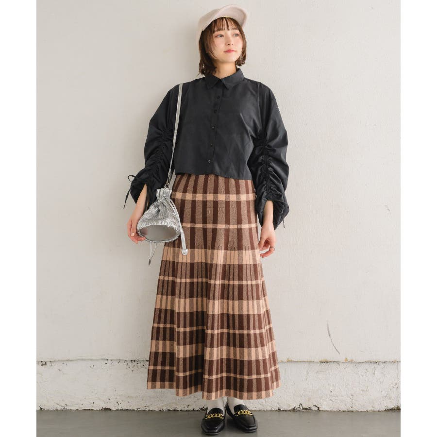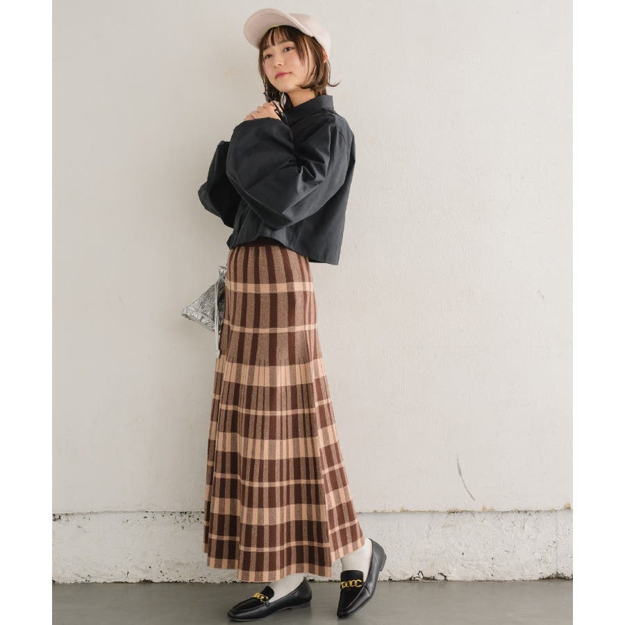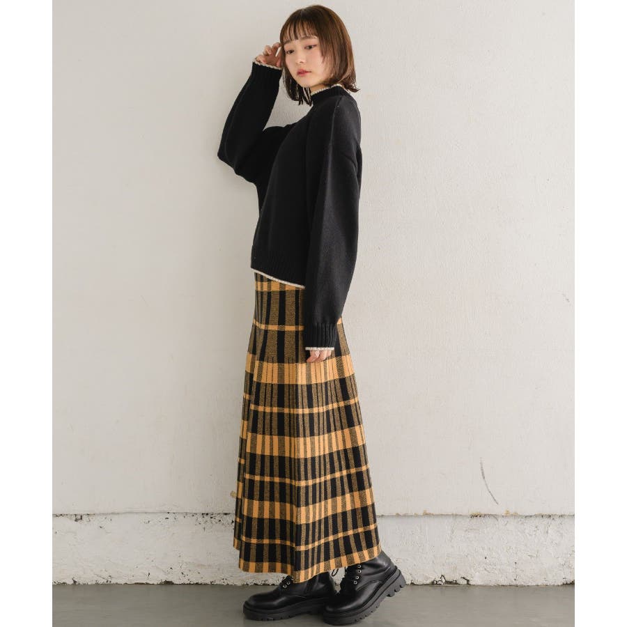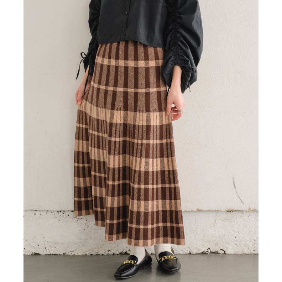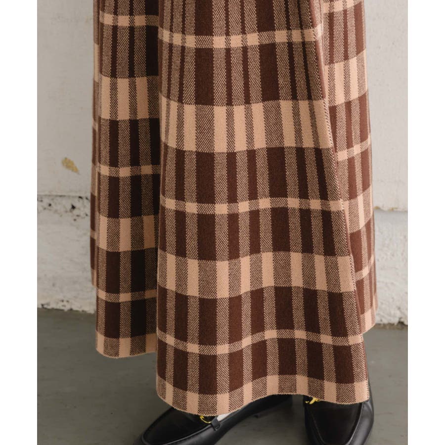 チェックニットフレアSK 【レトロガール】ニットプリーツスカート ロングスカート