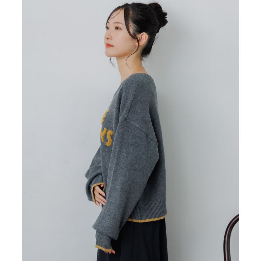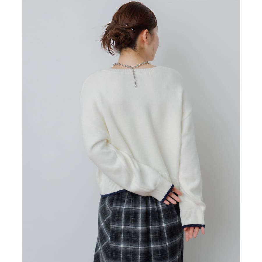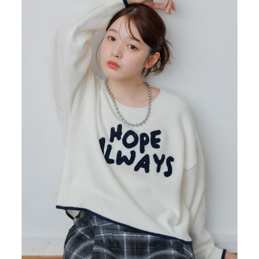 <立体的なサガラ刺繍が可愛いニットアイテム>▼デザイン立体的なサガラ刺繍が目を惹くニットアイテム。フロント部分に大きく刺繍されたサガラ刺繍は1枚で存在感たっぷりのコーデに。袖口や裾には刺繍と同じカラーのラインが入っているのもワンポイント!▼コーディネートコンパクトな着丈でボトムとの相性もばっちり◎チェックのスカートを合わせれば秋らしいコーデに♪-----------------------------生地感:普通伸縮性:ある透け感:なし裏地:なし------------------------------▼ブランド紹介RETRO GIRL (レトロガール)自分らしい“ベーシックアイテム”と新しい自分の”トレンドアイテム”が見つかる場所今らしいファッションを楽しむ女性のためのブランド#ニット #バイカラーニット #配色 #サガラ刺繍 #サガラニット▼注意事項※撮影環境やモニター環境によって実際の商品とお色味が多少異なってみえる場合がございます。品番:RW541512T001 / 品名:サガラ刺繍ロゴNT
